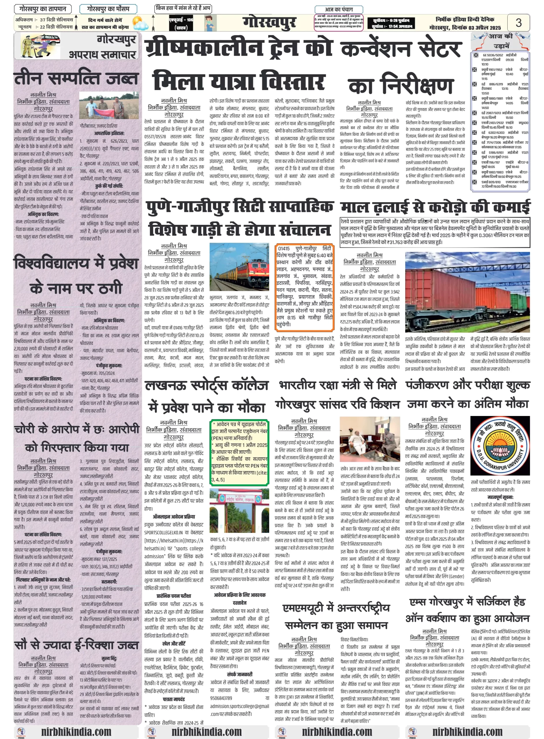03 April 2025 Nirbhik India Gorakhpur Newspaper