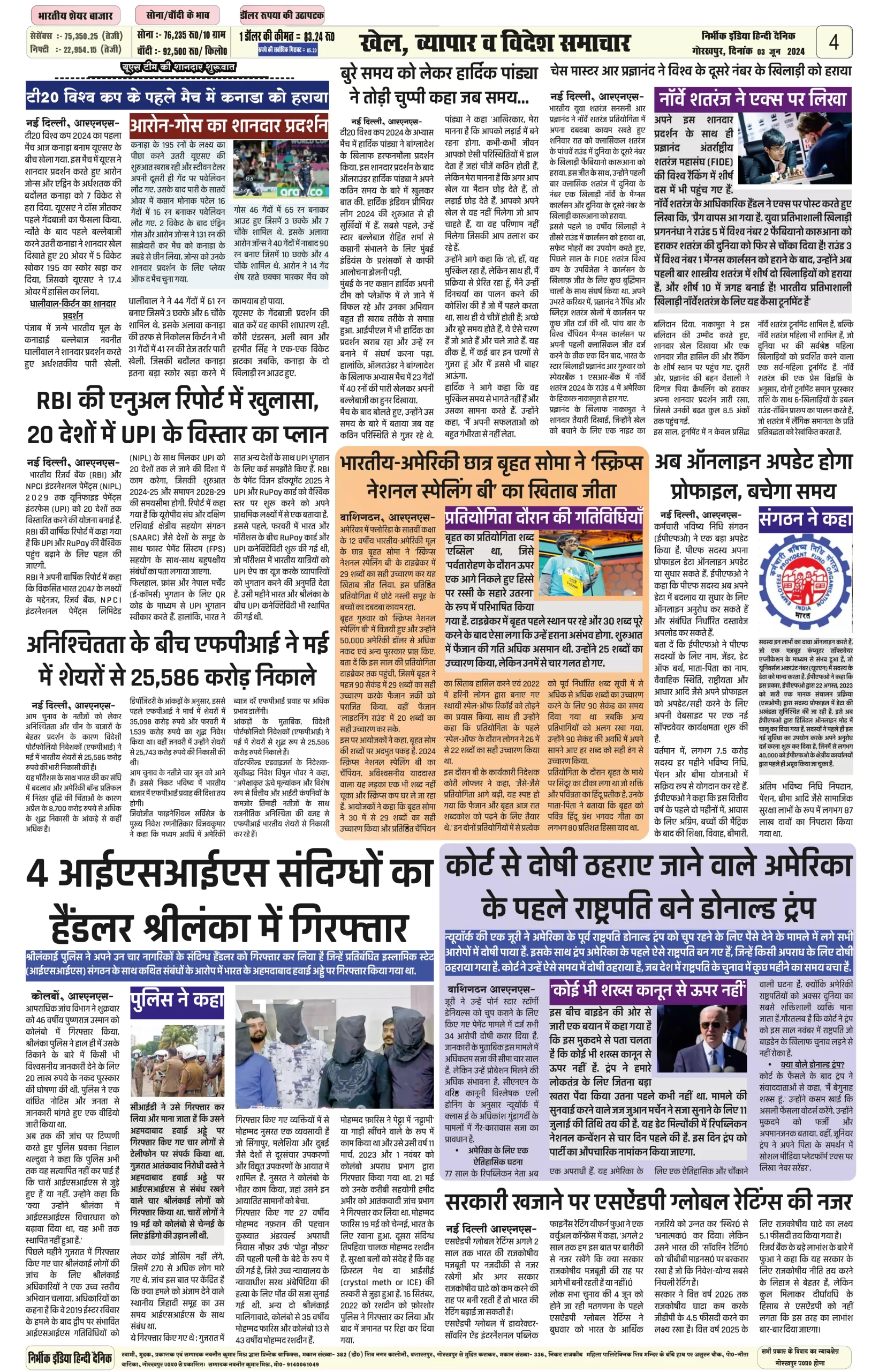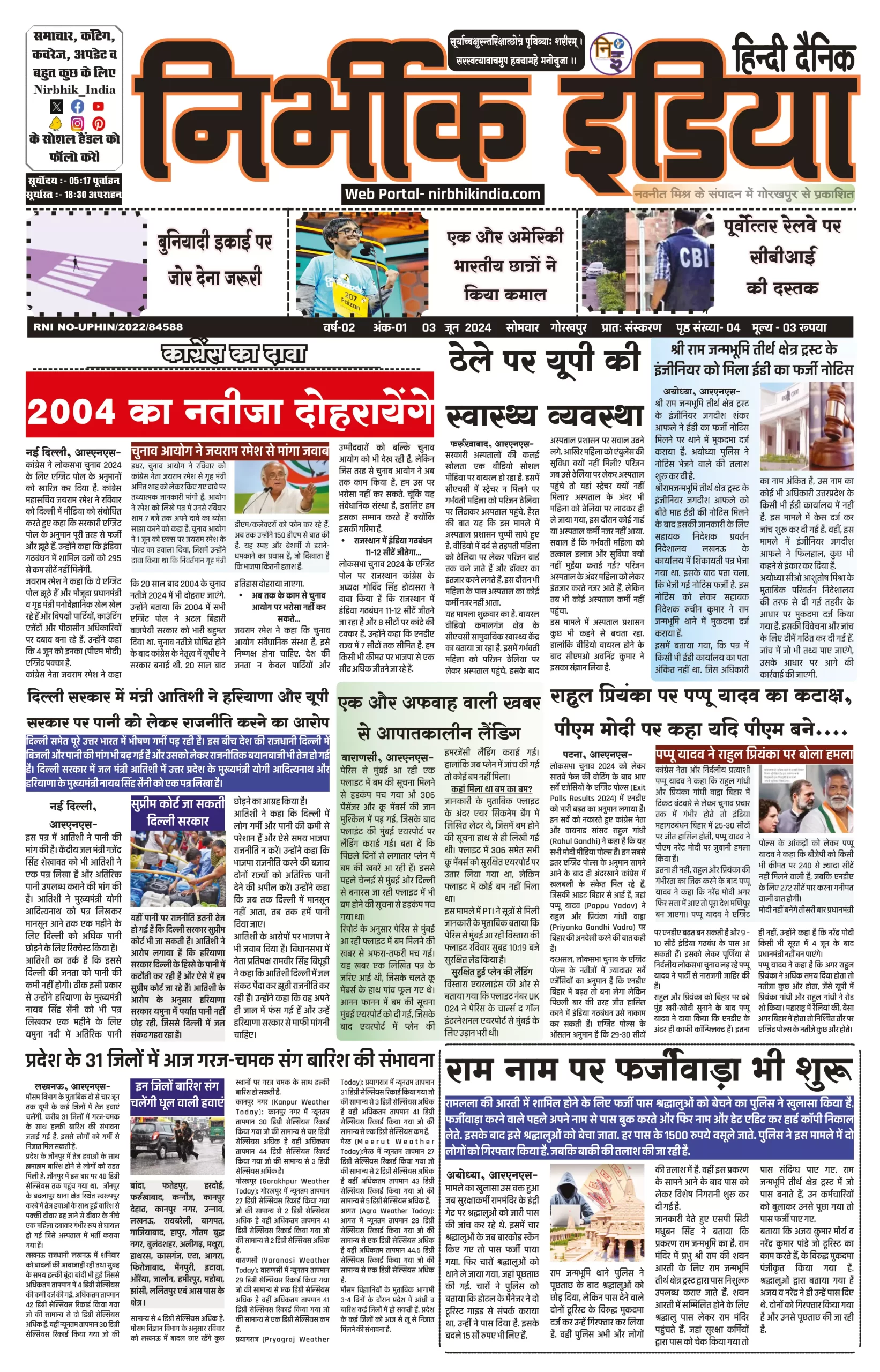 03 June 2024 Nirbhik india newspaper