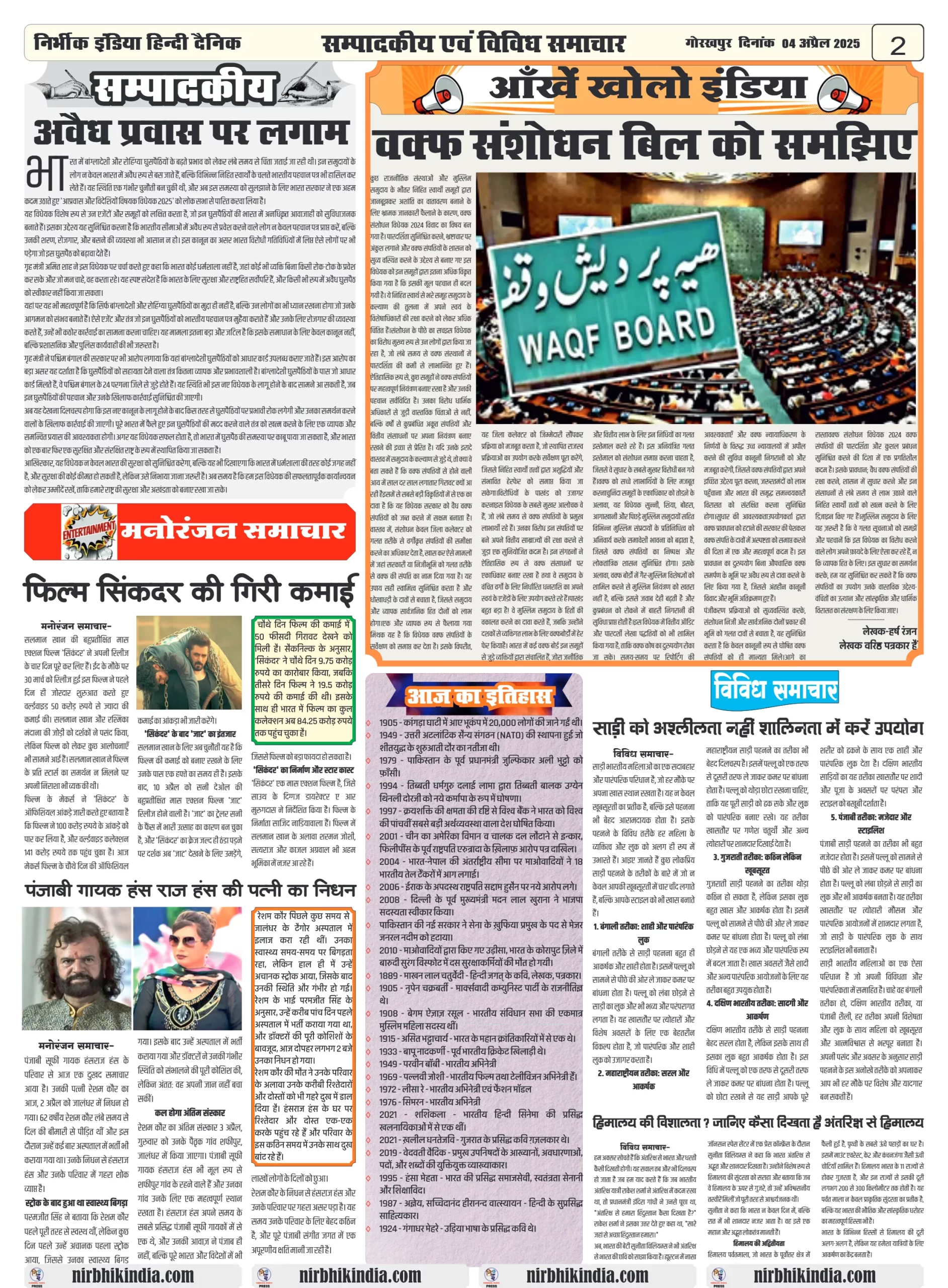 04 April 2025 Nirbhik India Gorakhpur Newspaper