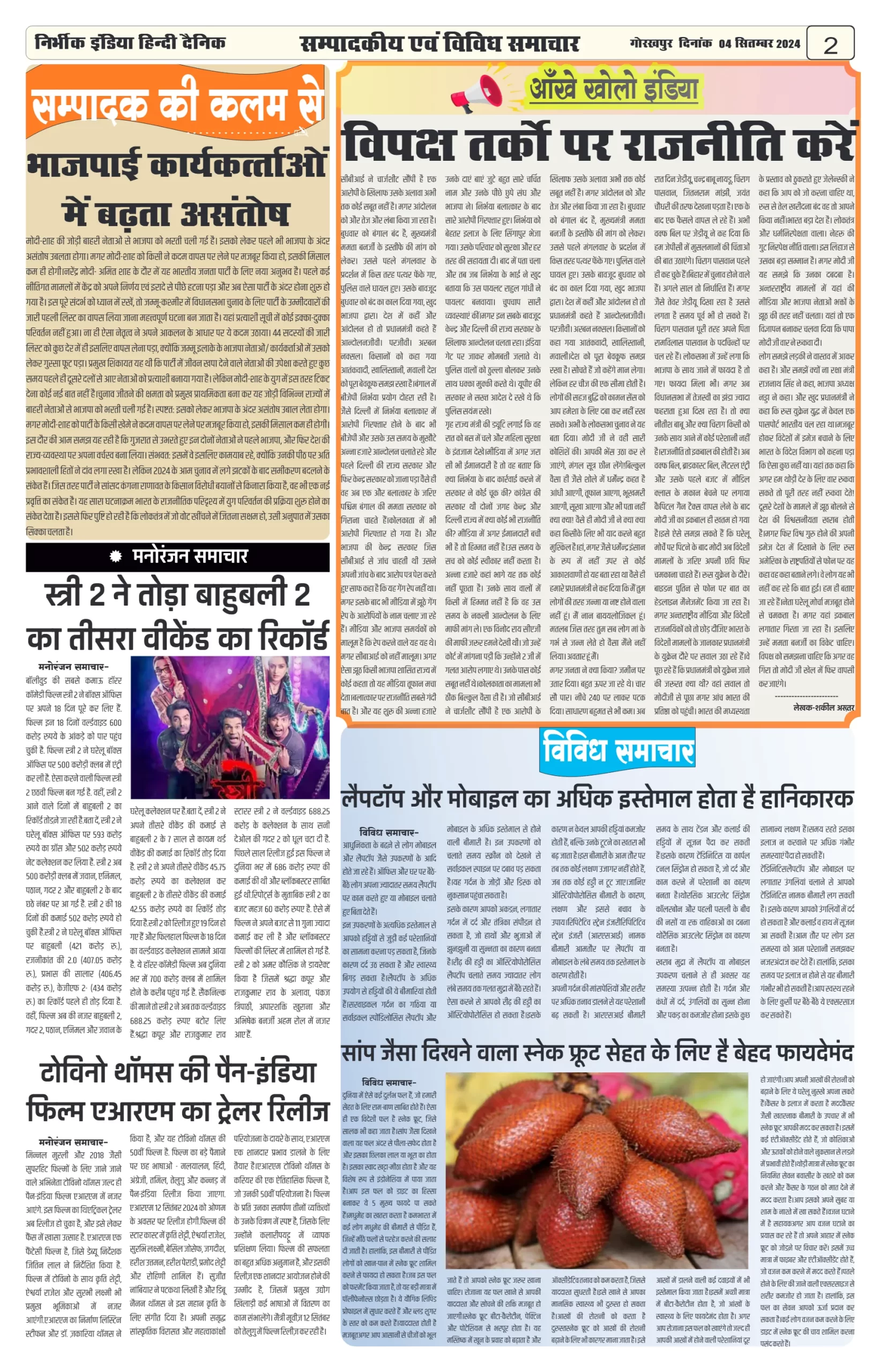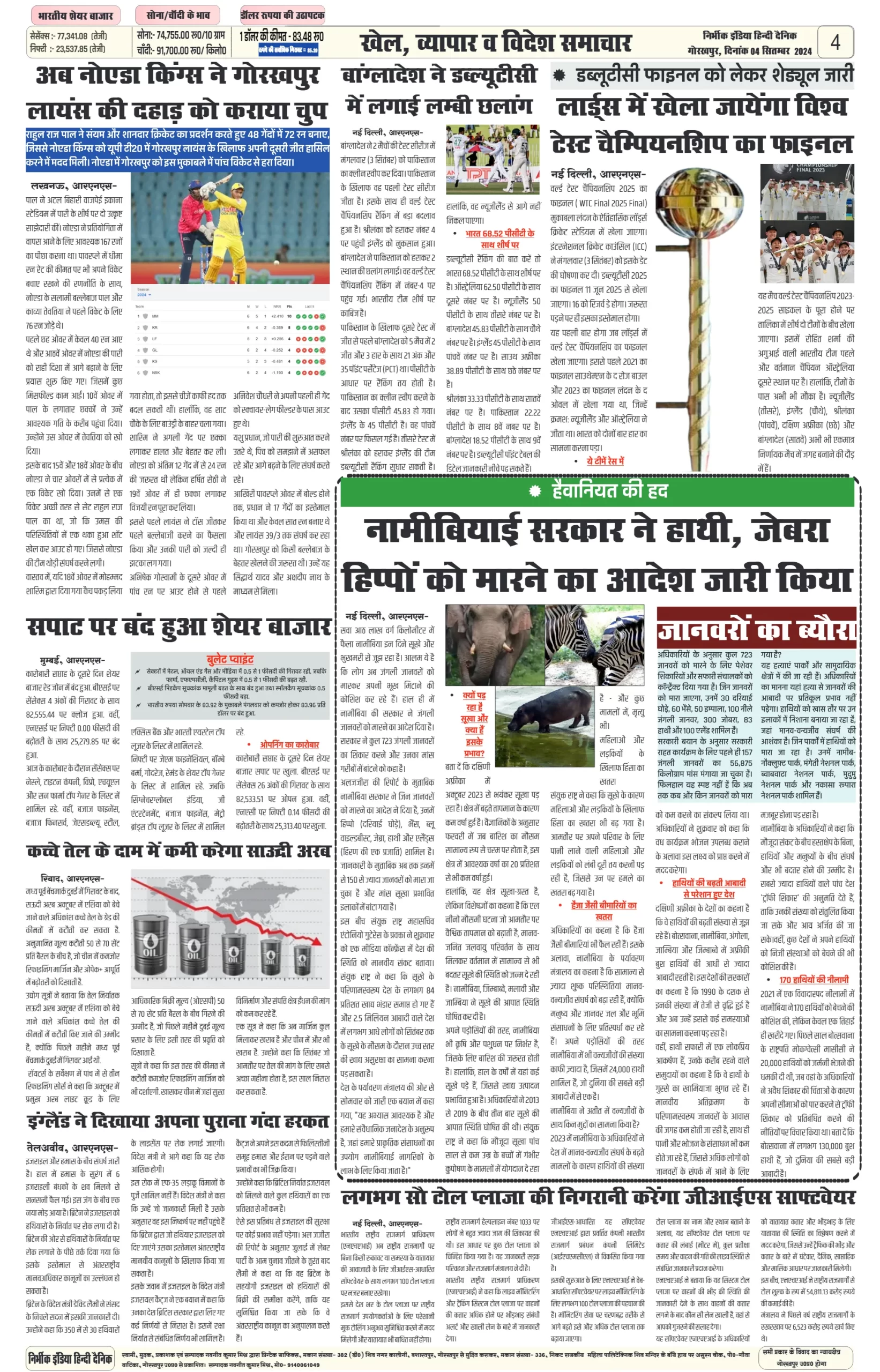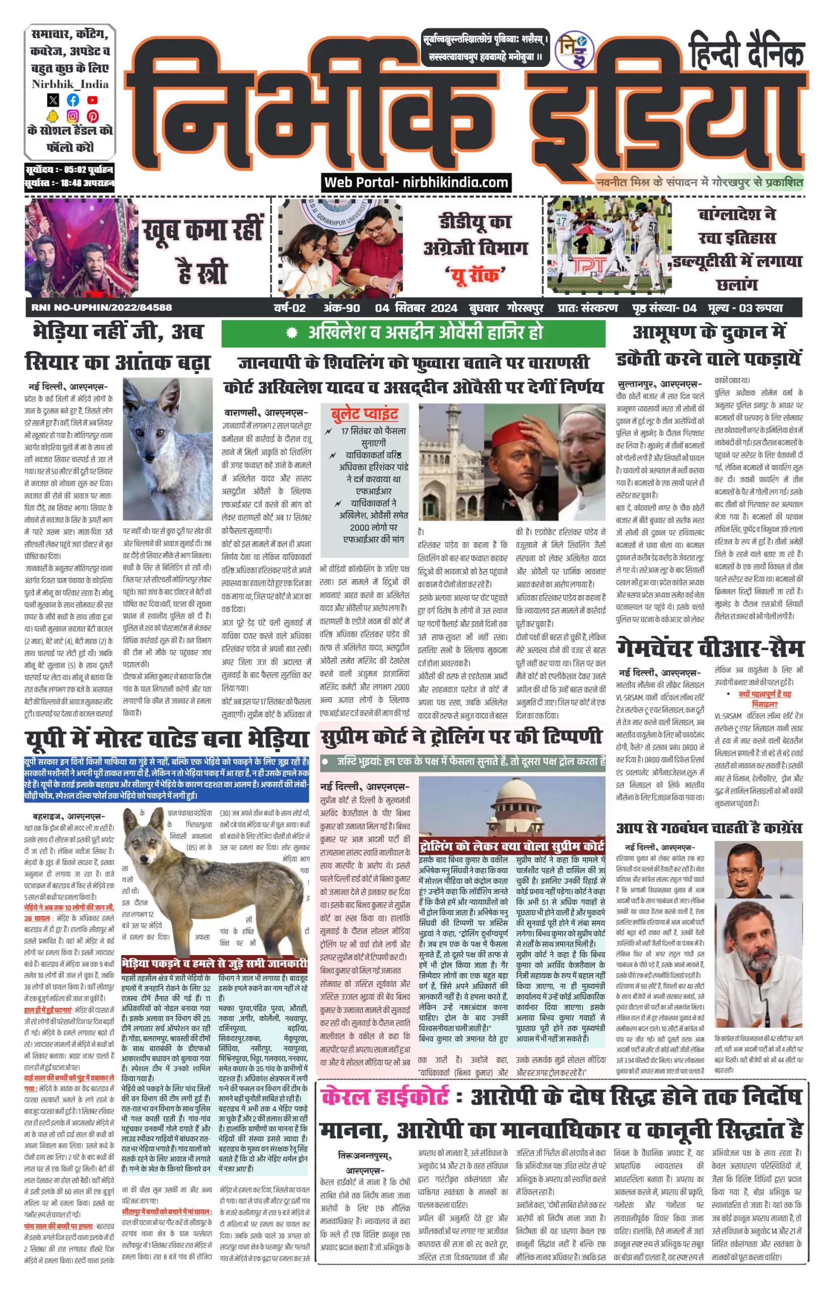 04 September 2024 Nirbhik india newspaper GKP