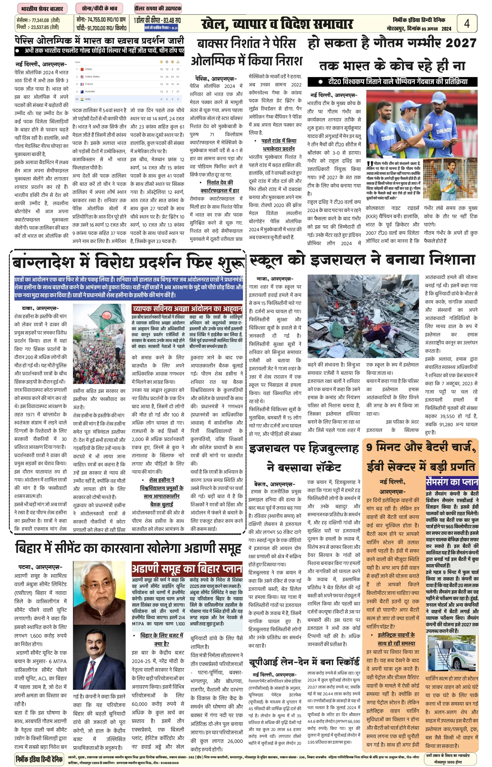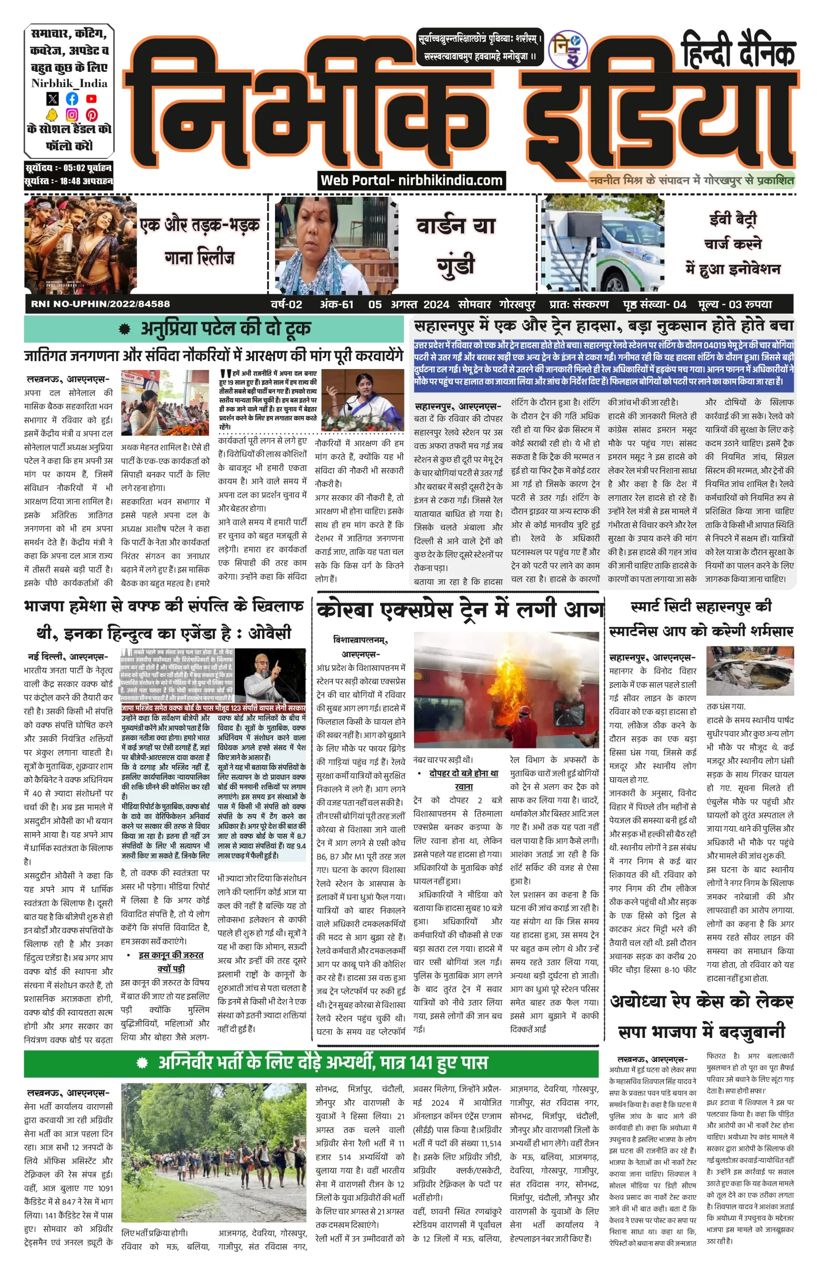 05 August 2024 Nirbhik india newspaper