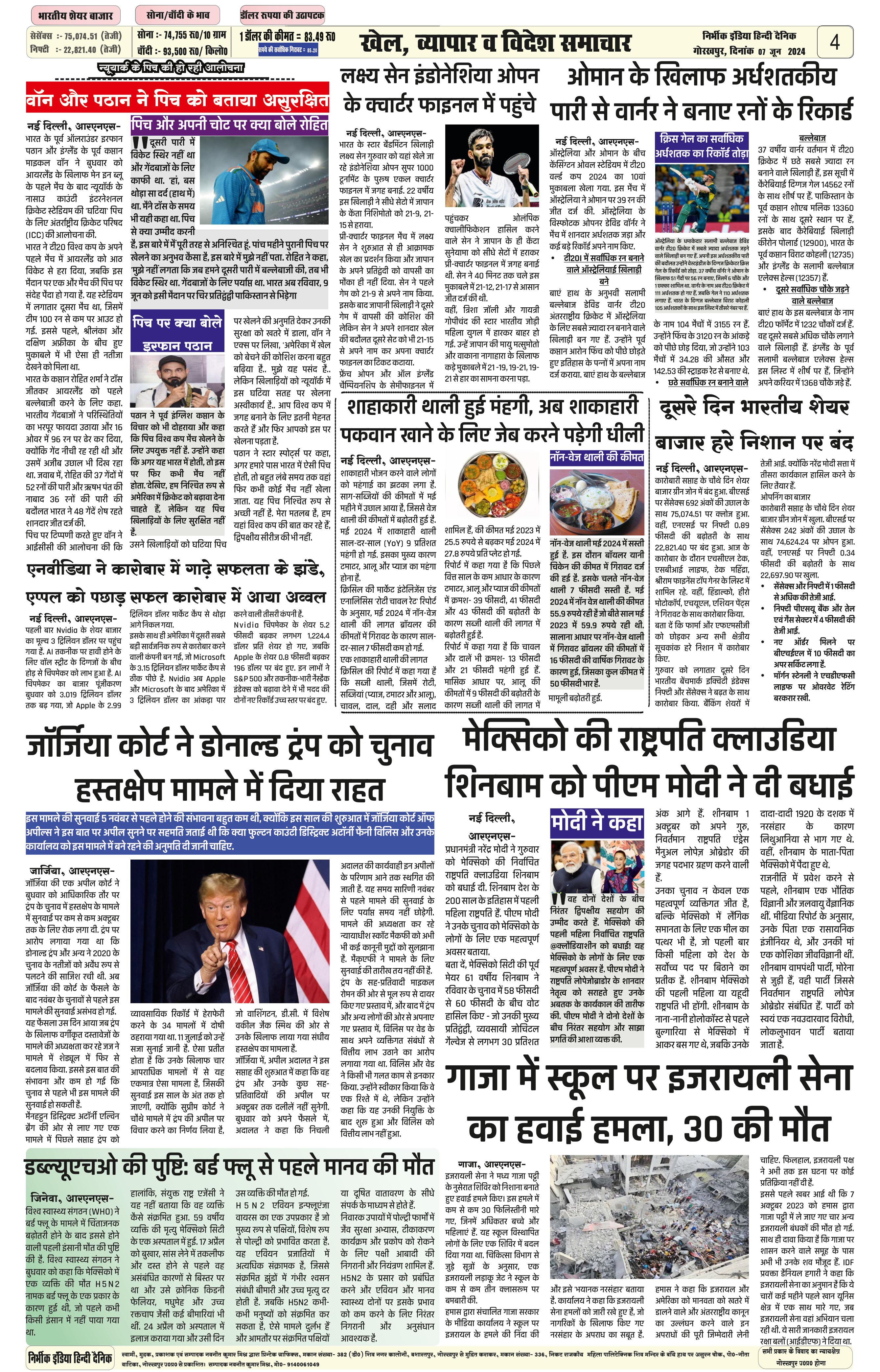 07 June 2024 Nirbhik india newspaper