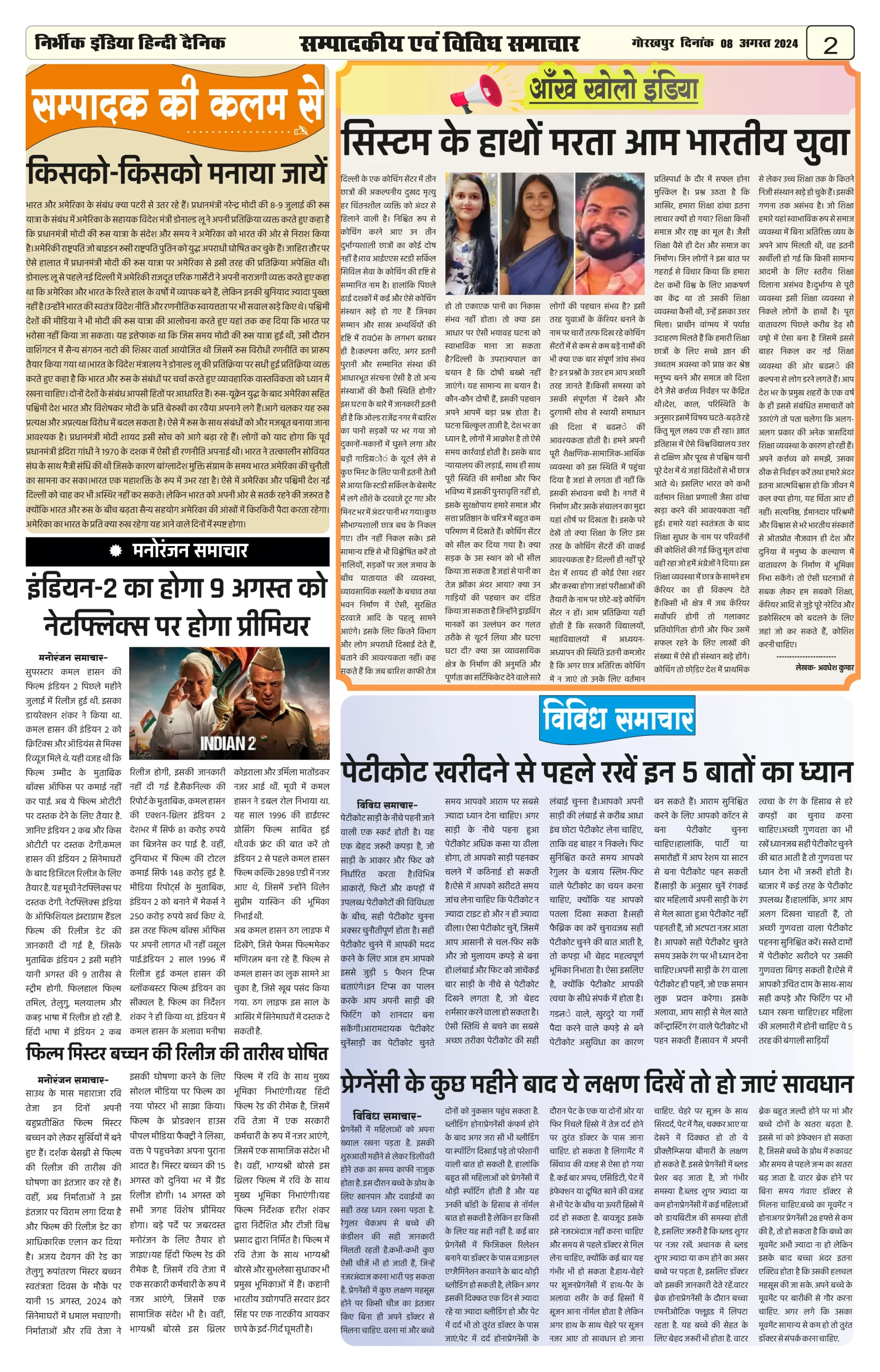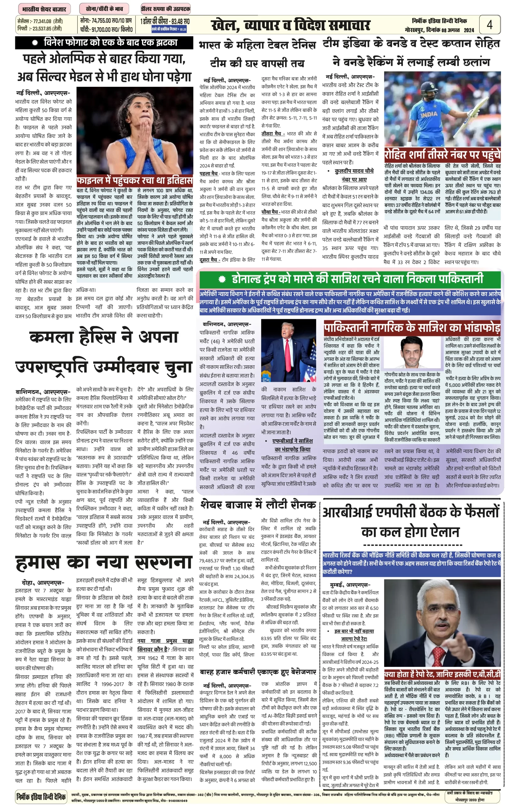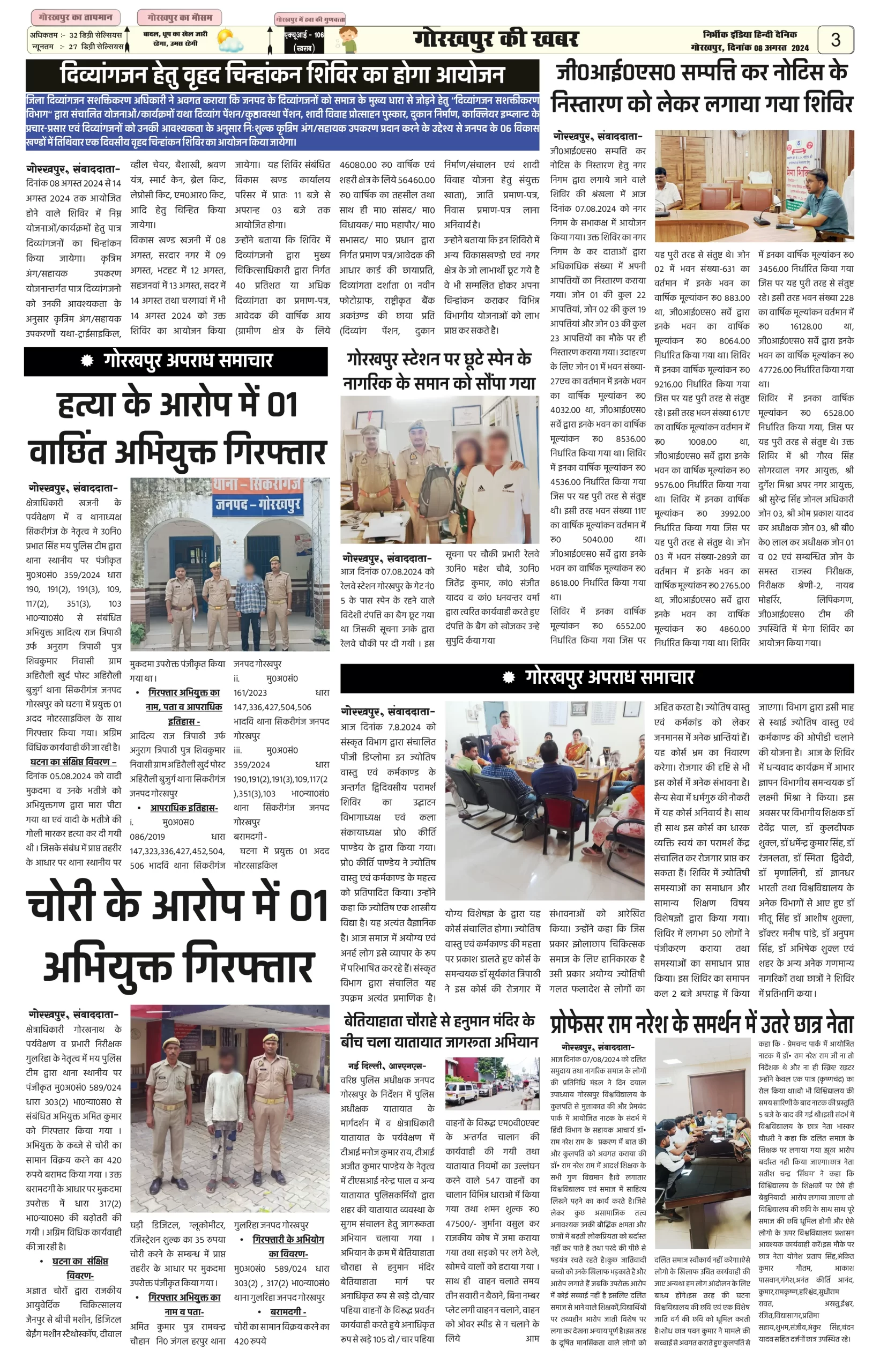 08 August 2024 Nirbhik india newspaper Gorakhpur