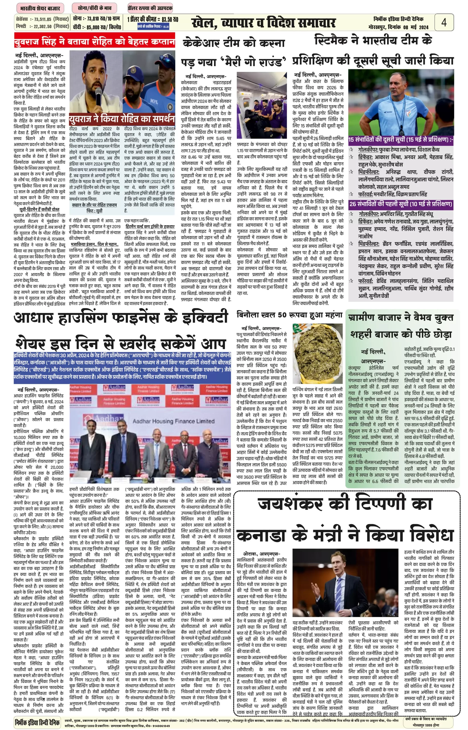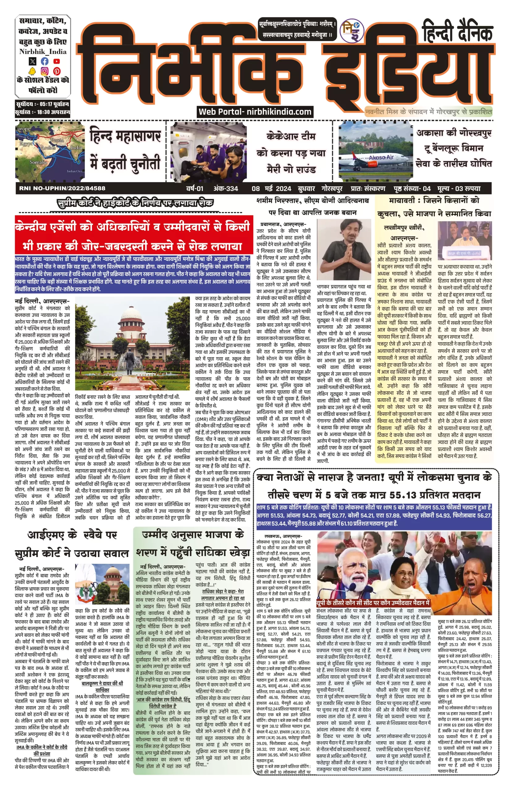 08 May 2024 Nirbhik india newspaper