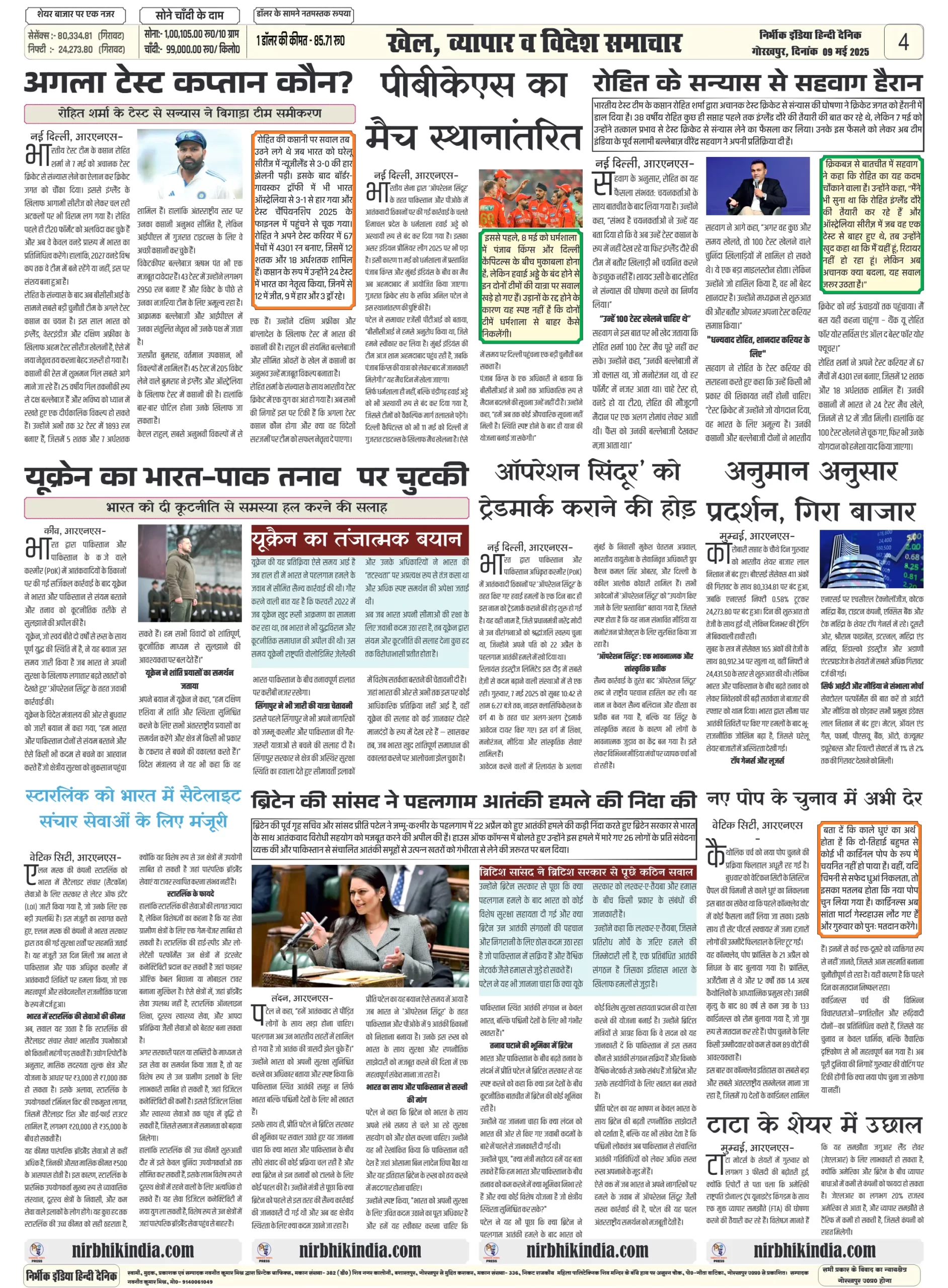 09 May 2025 Nirbhik India Gorakhpur Newspaper