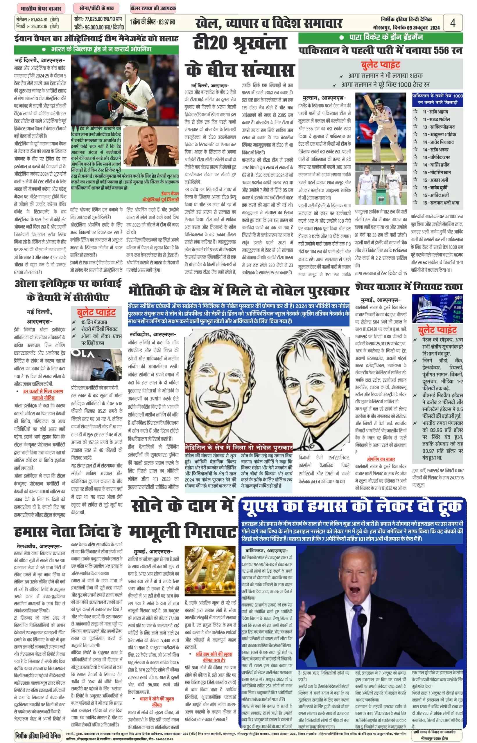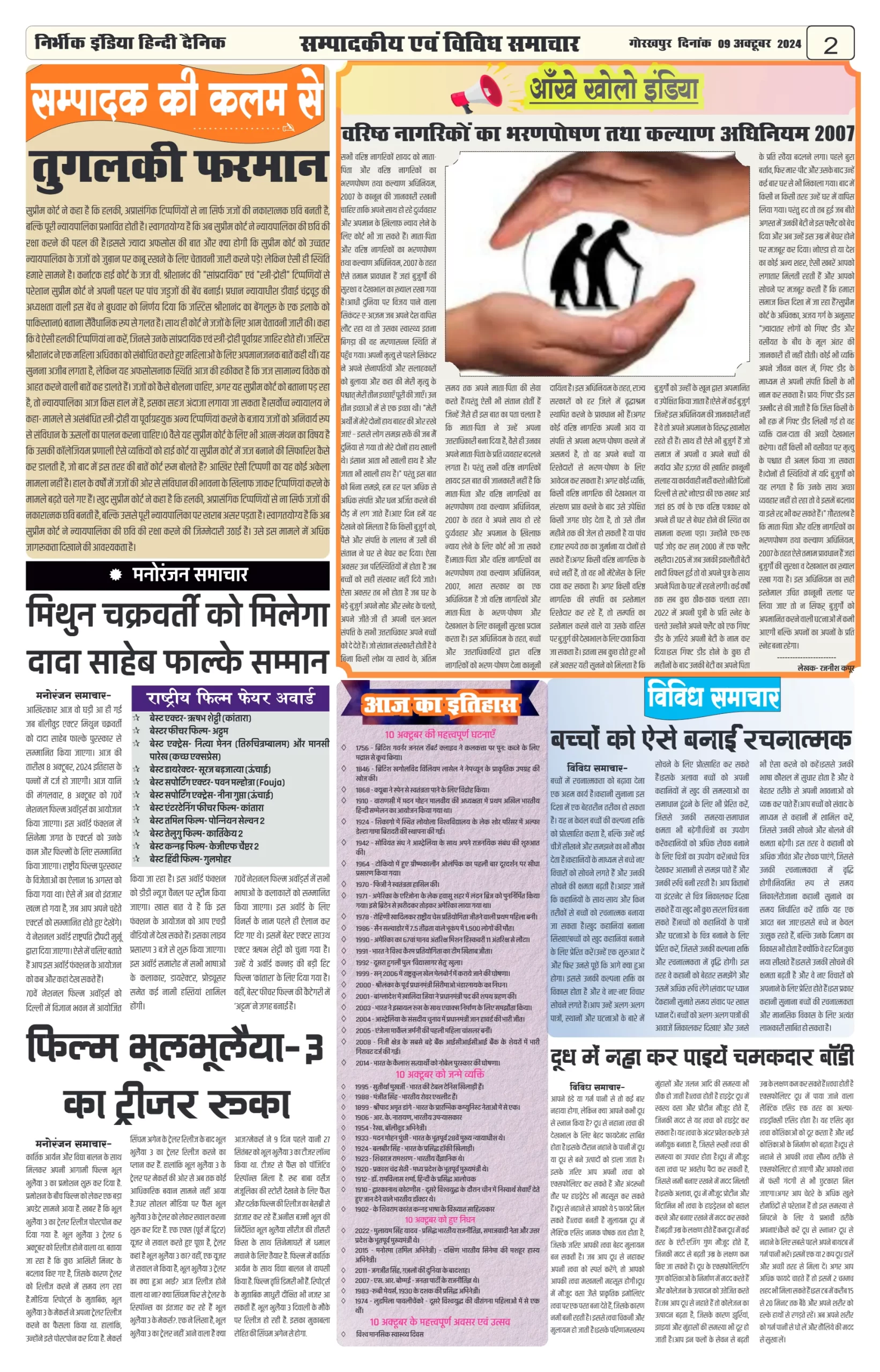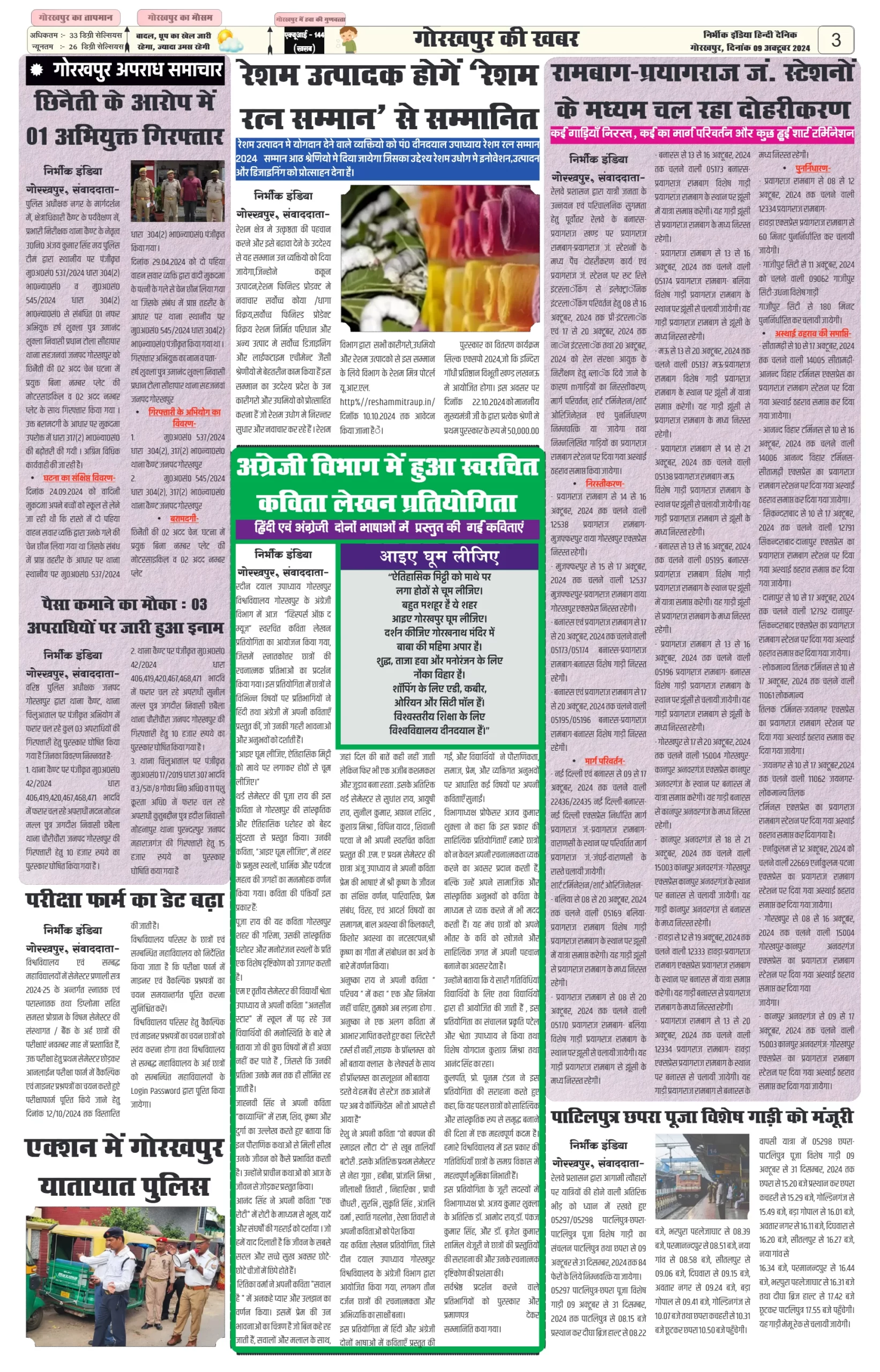 09 October 2024 Nirbhik india newspaper GKP