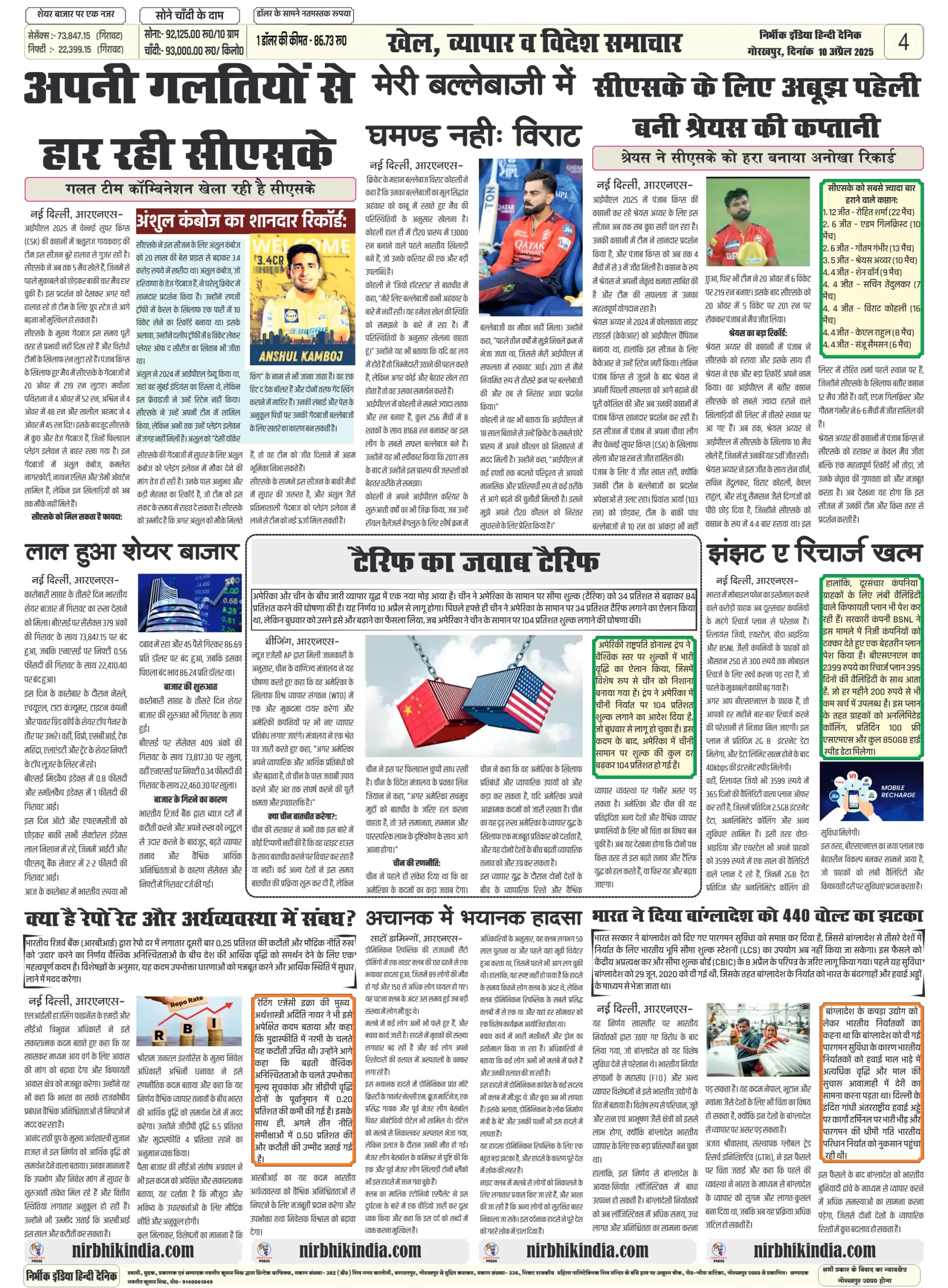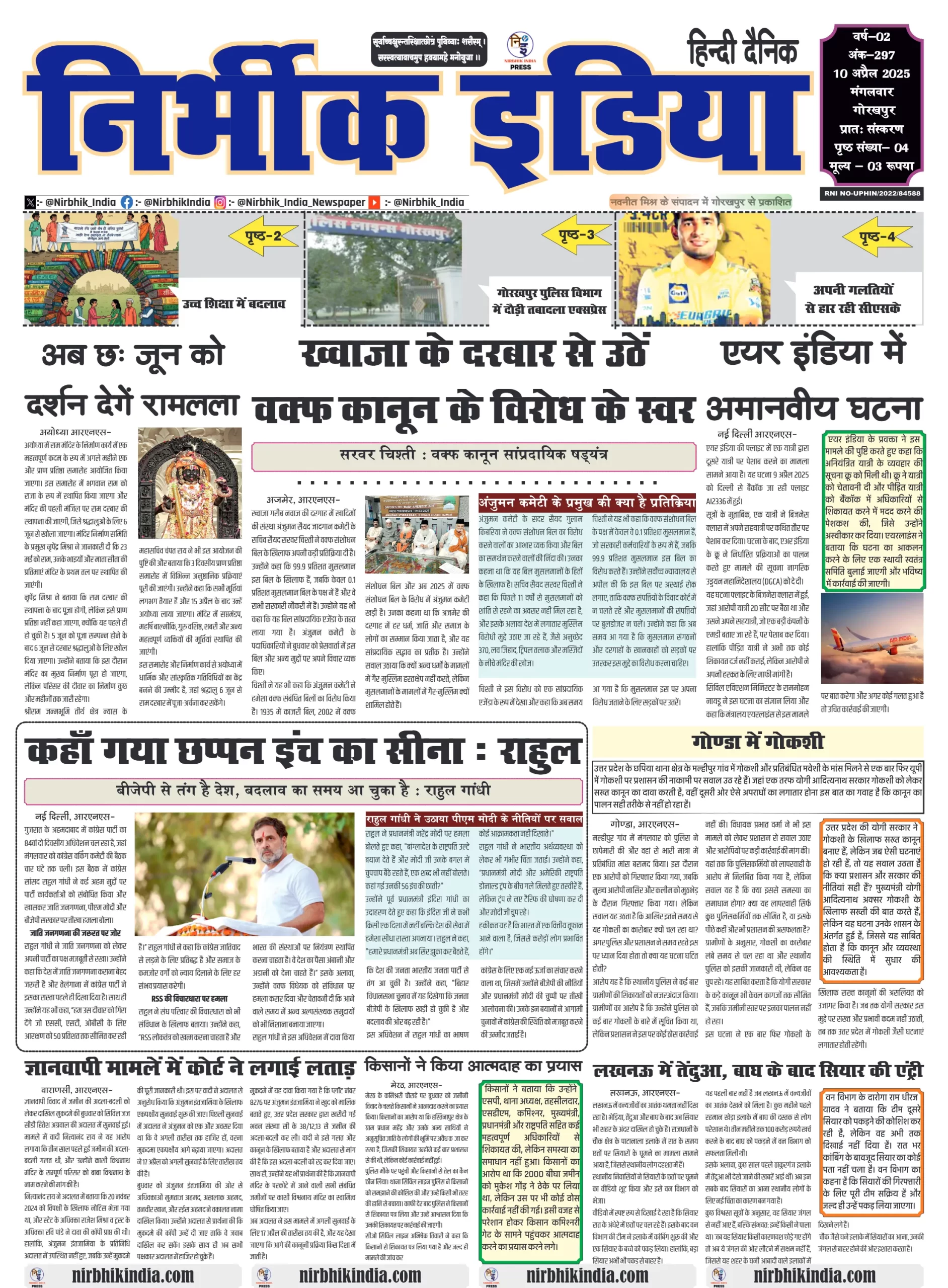 10 April 2025 Nirbhik India Gorakhpur Newspaper