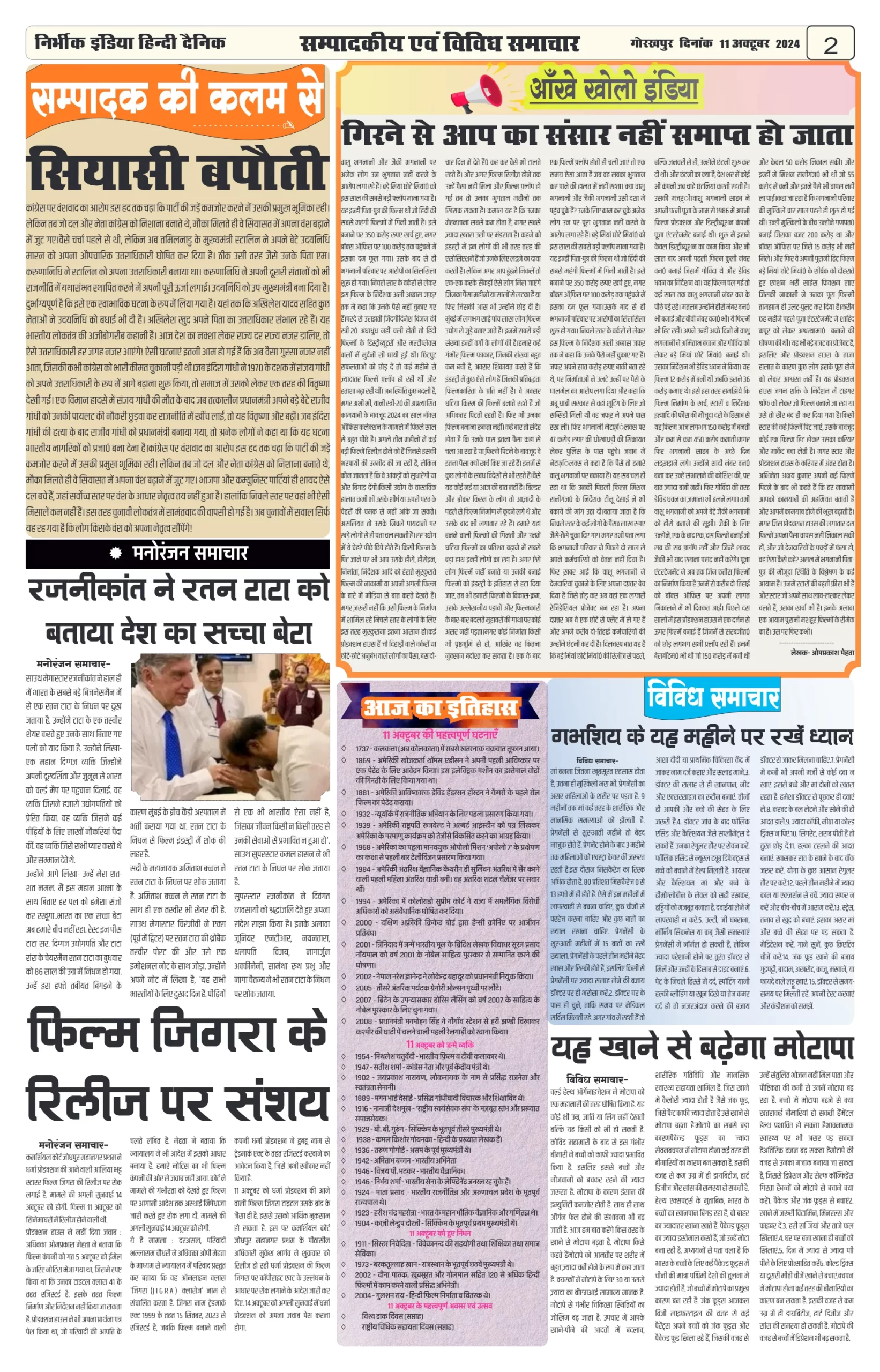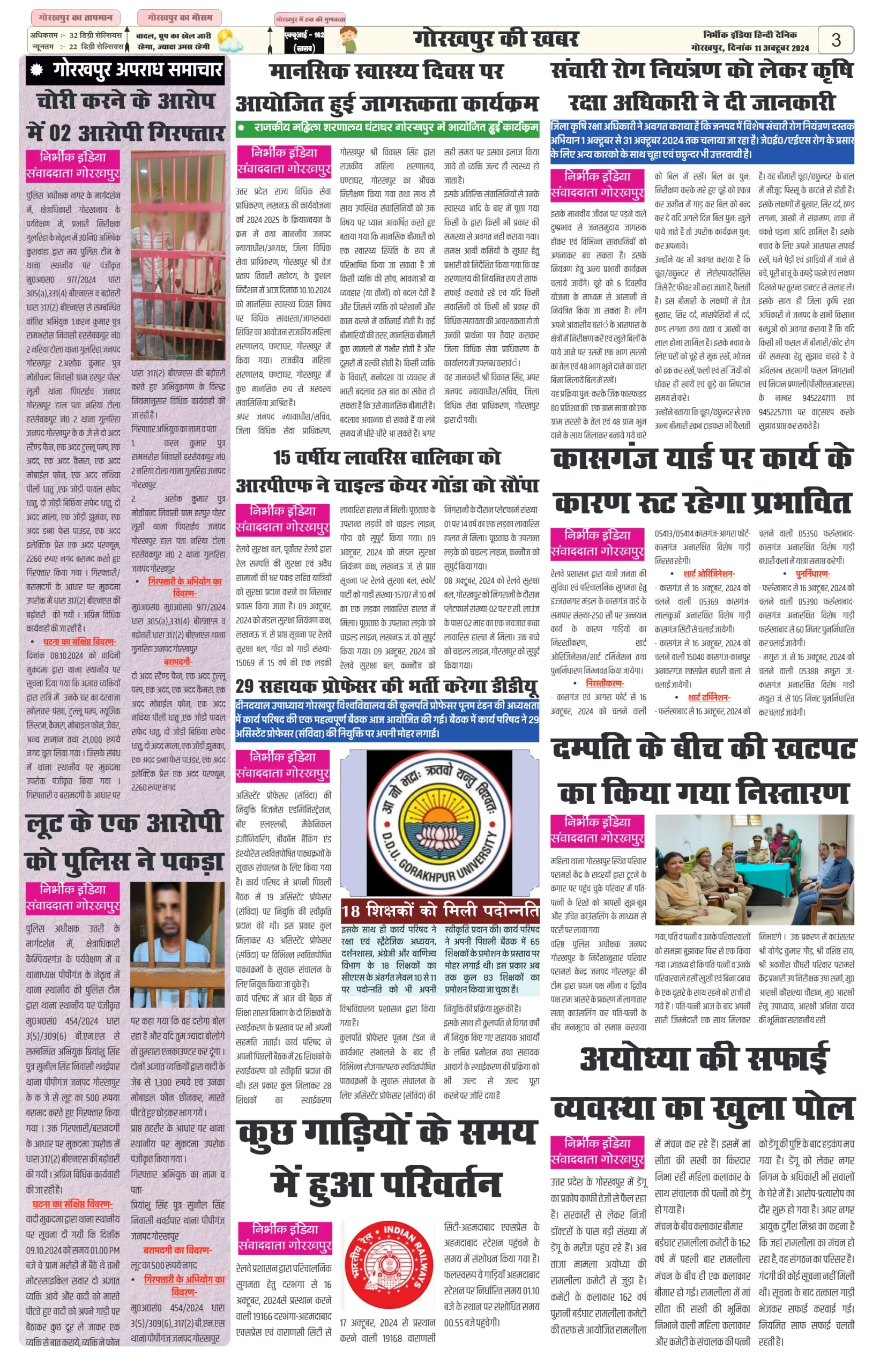 11 October 2024 Nirbhik india newspaper GKP