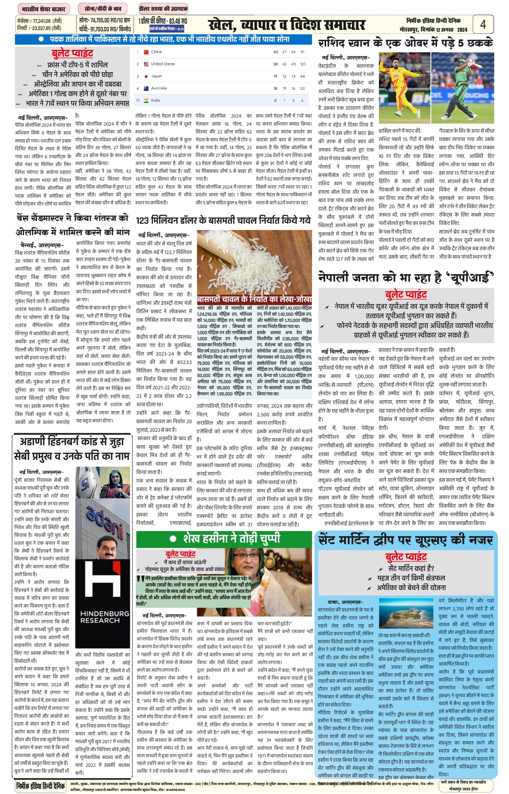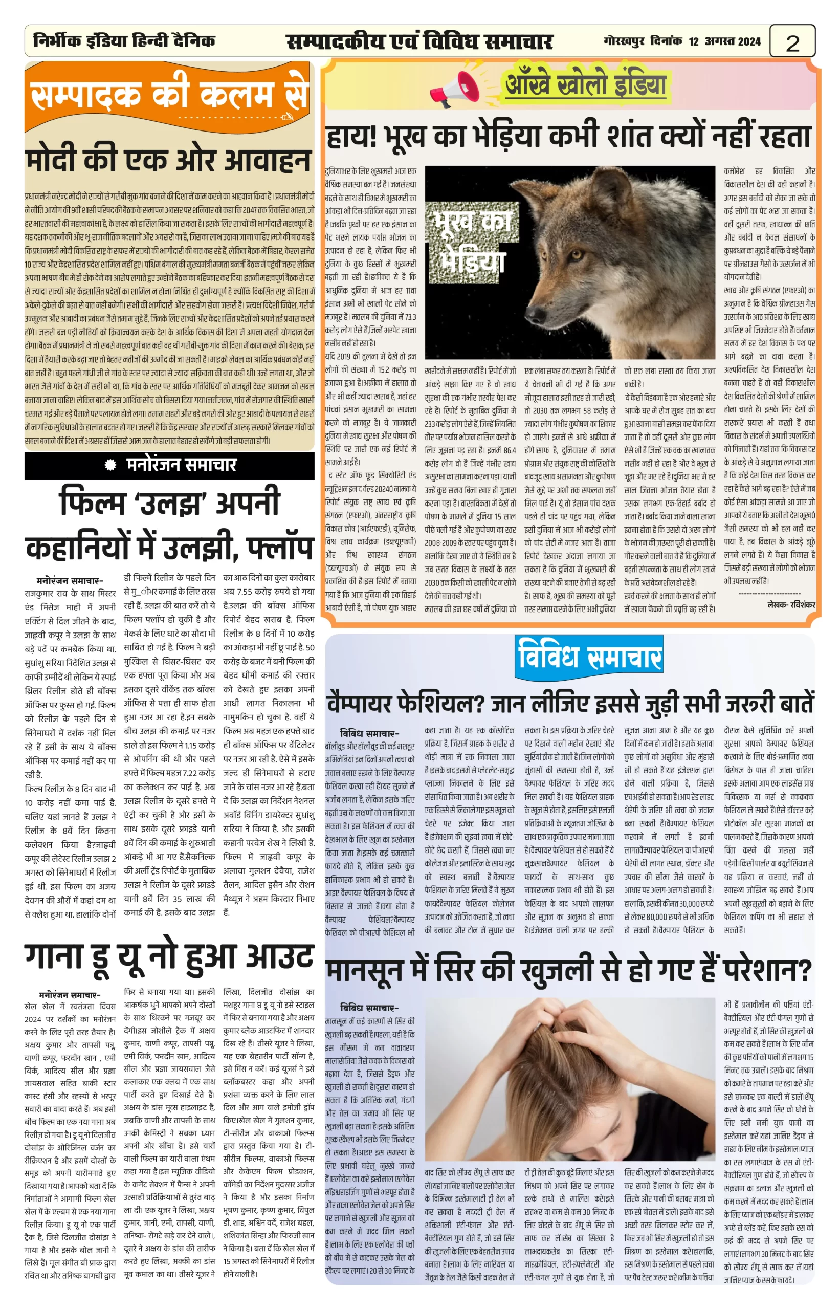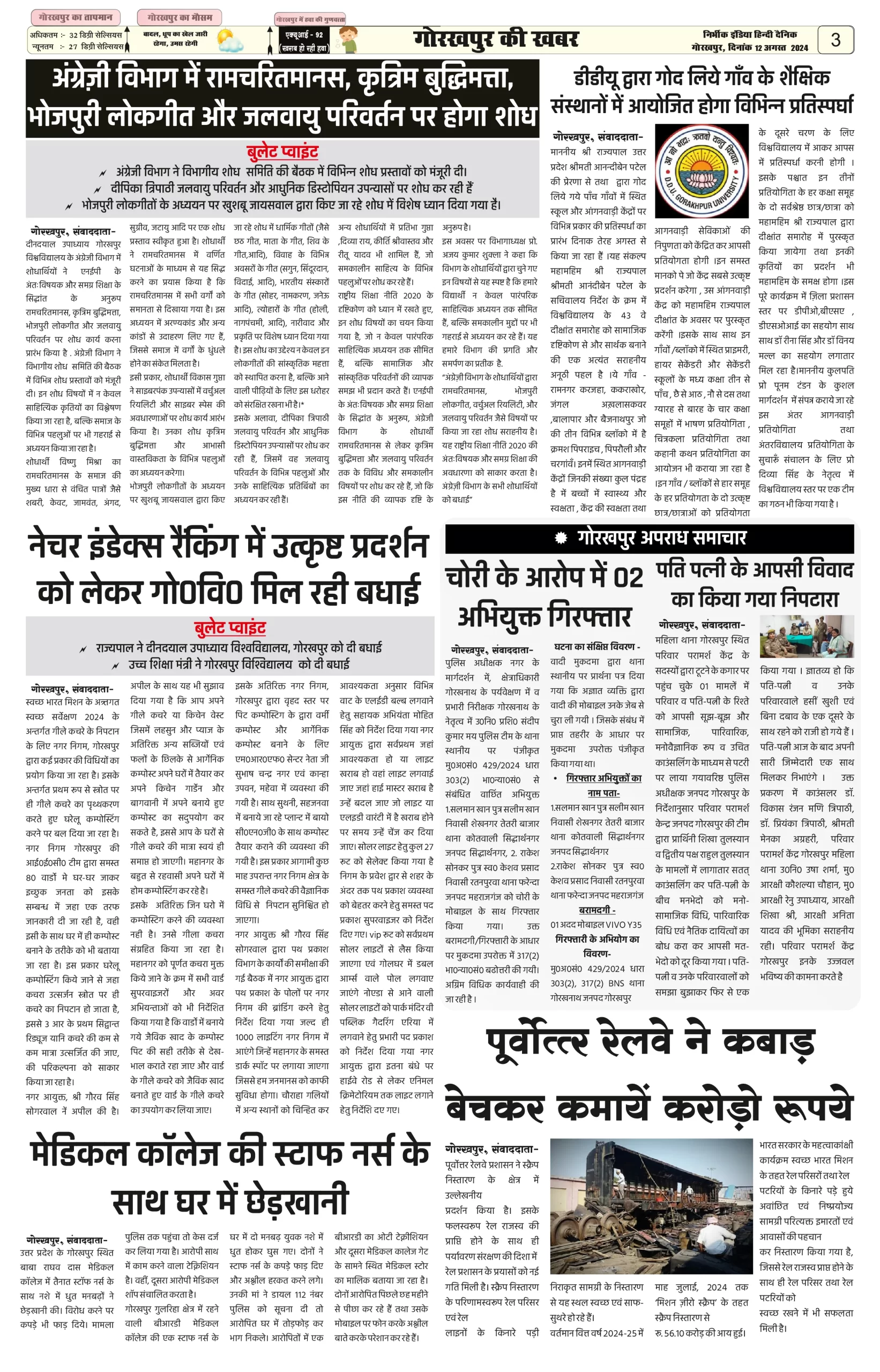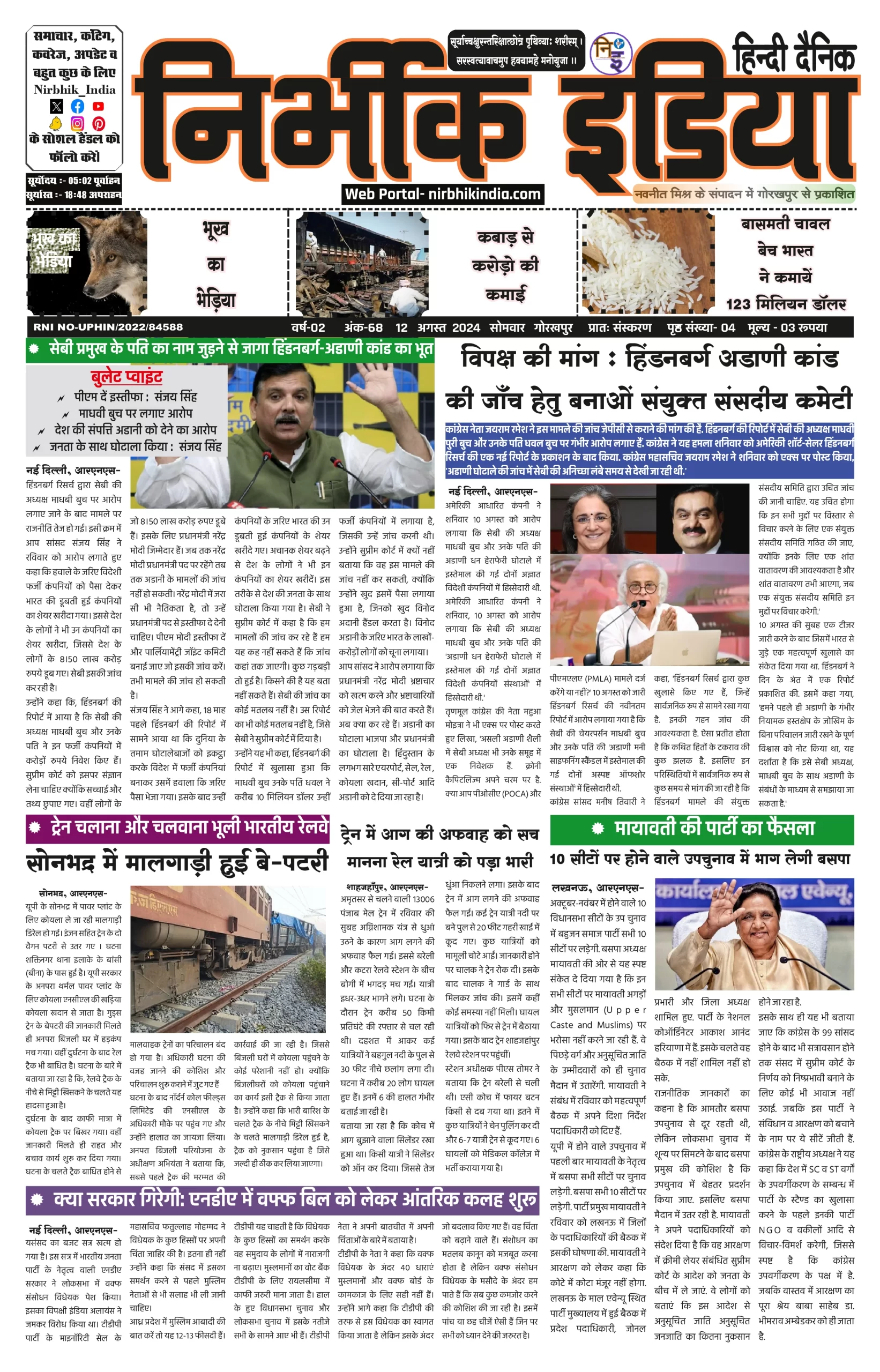 12 August 2024 Nirbhik india newspaper Gorakhpur