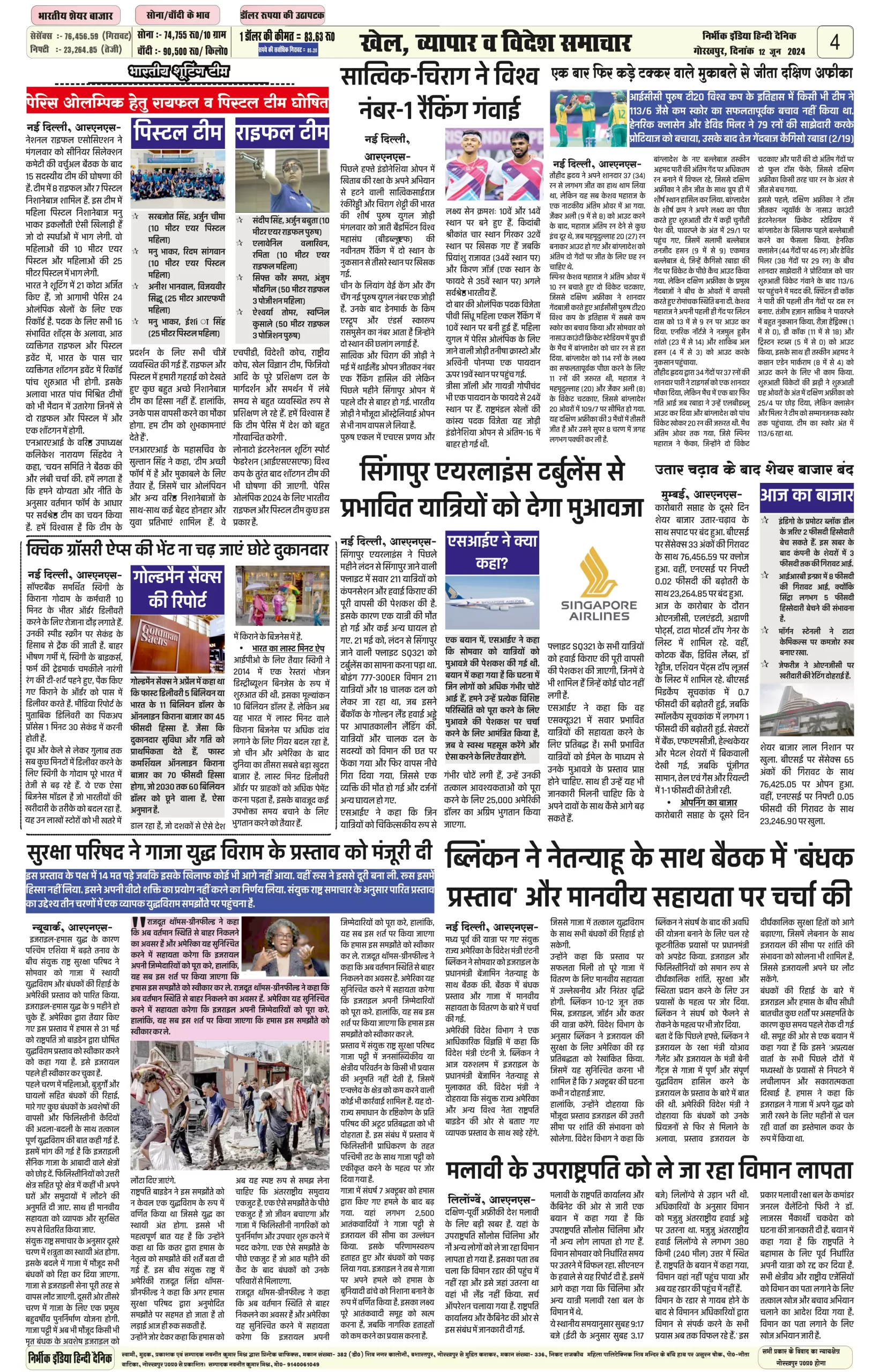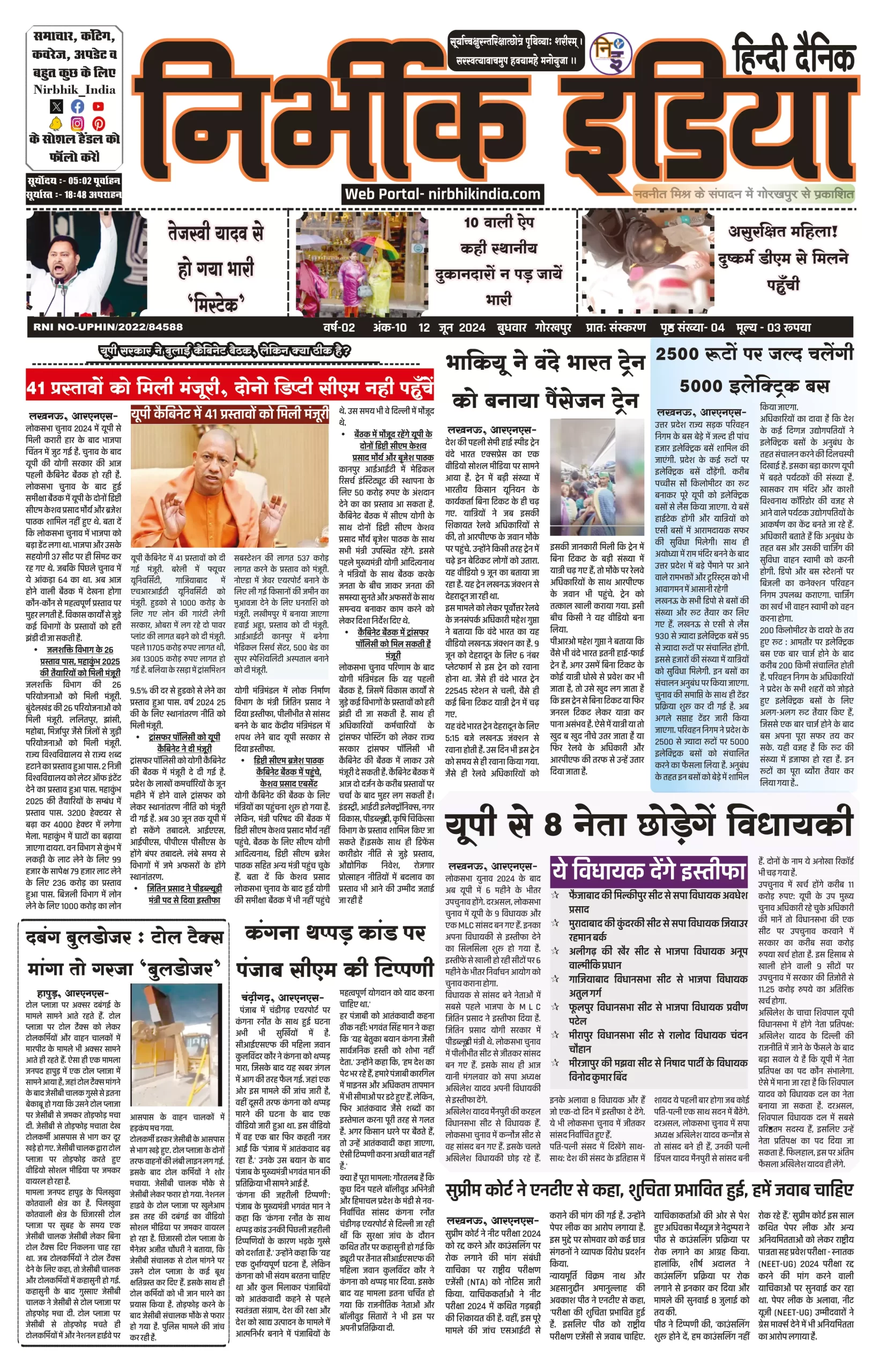 12 June 2024 Nirbhik india newspaper