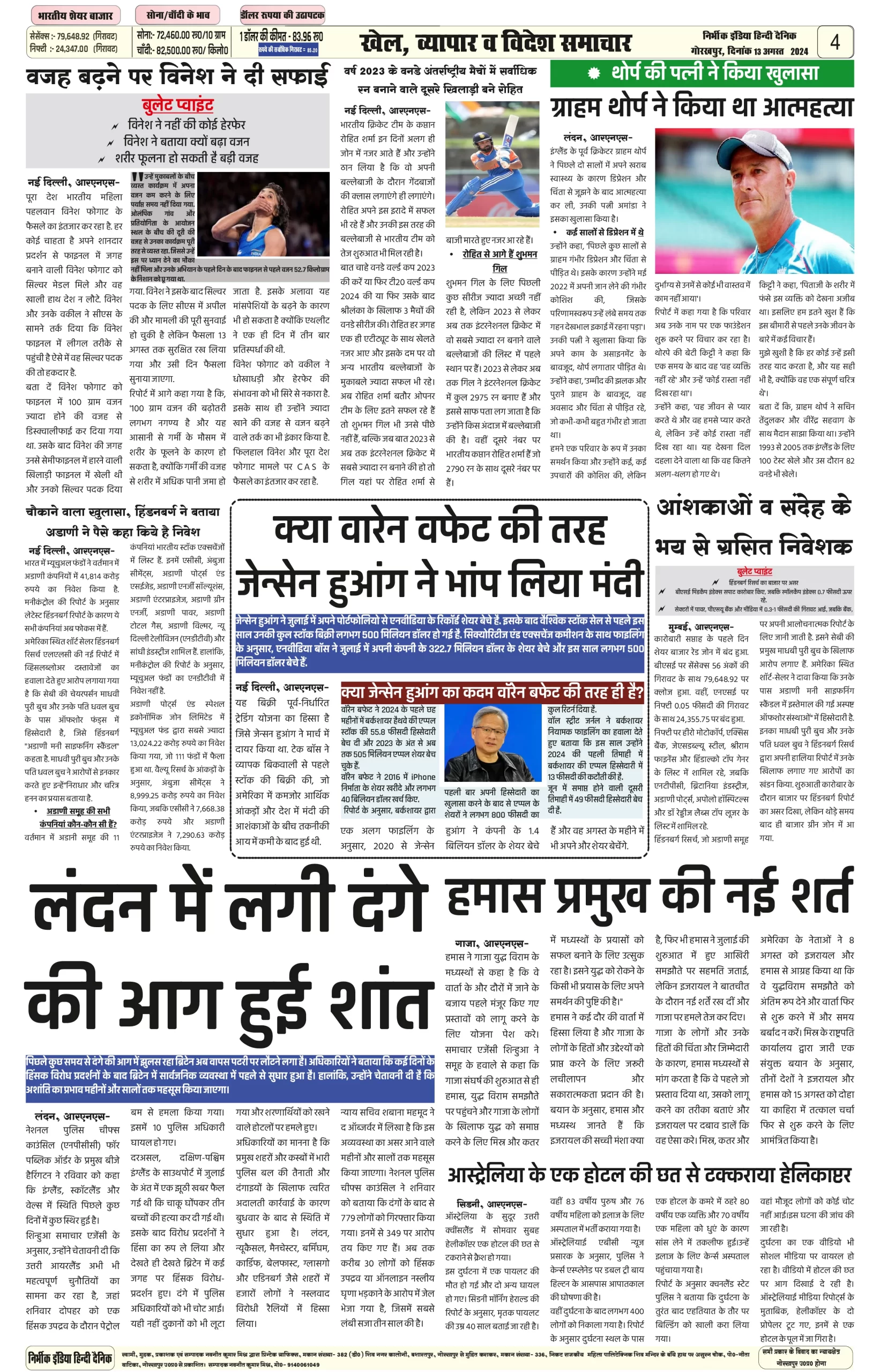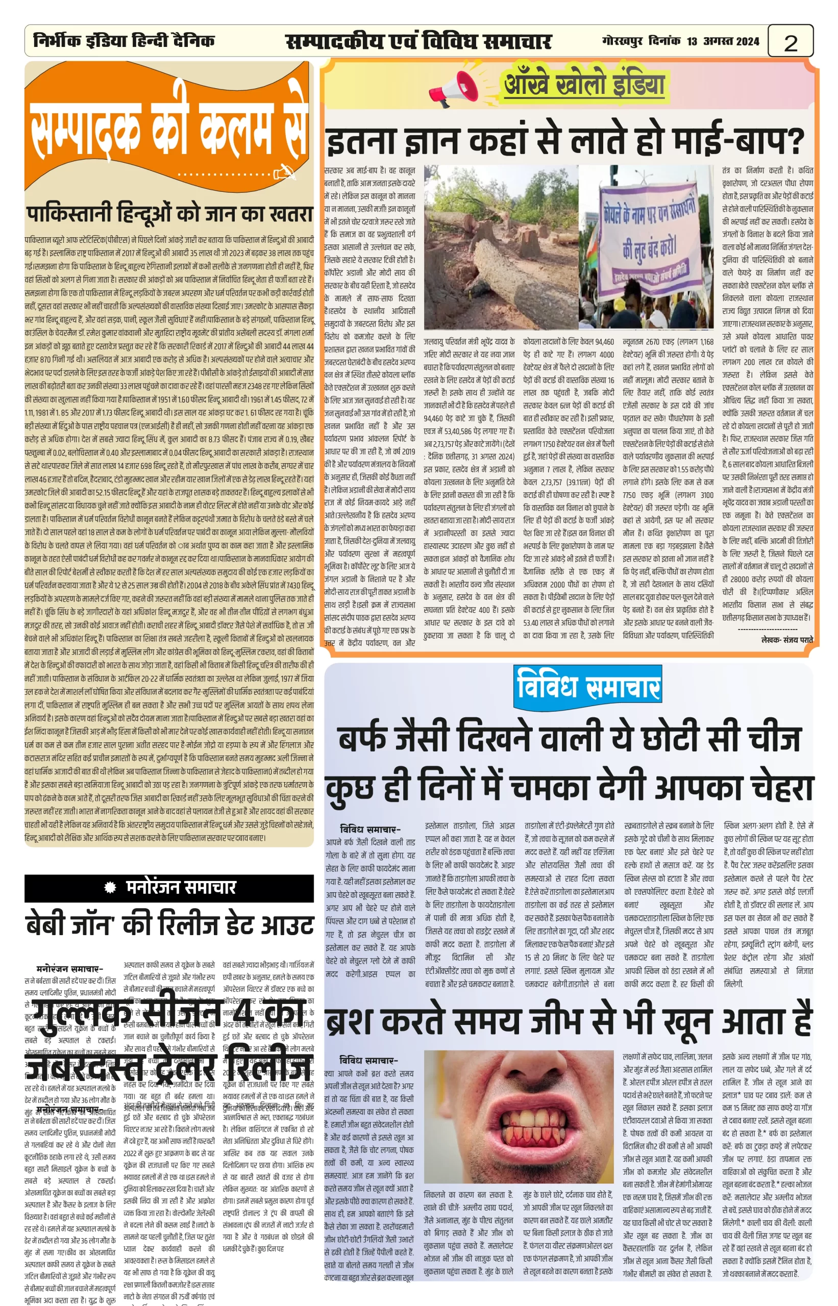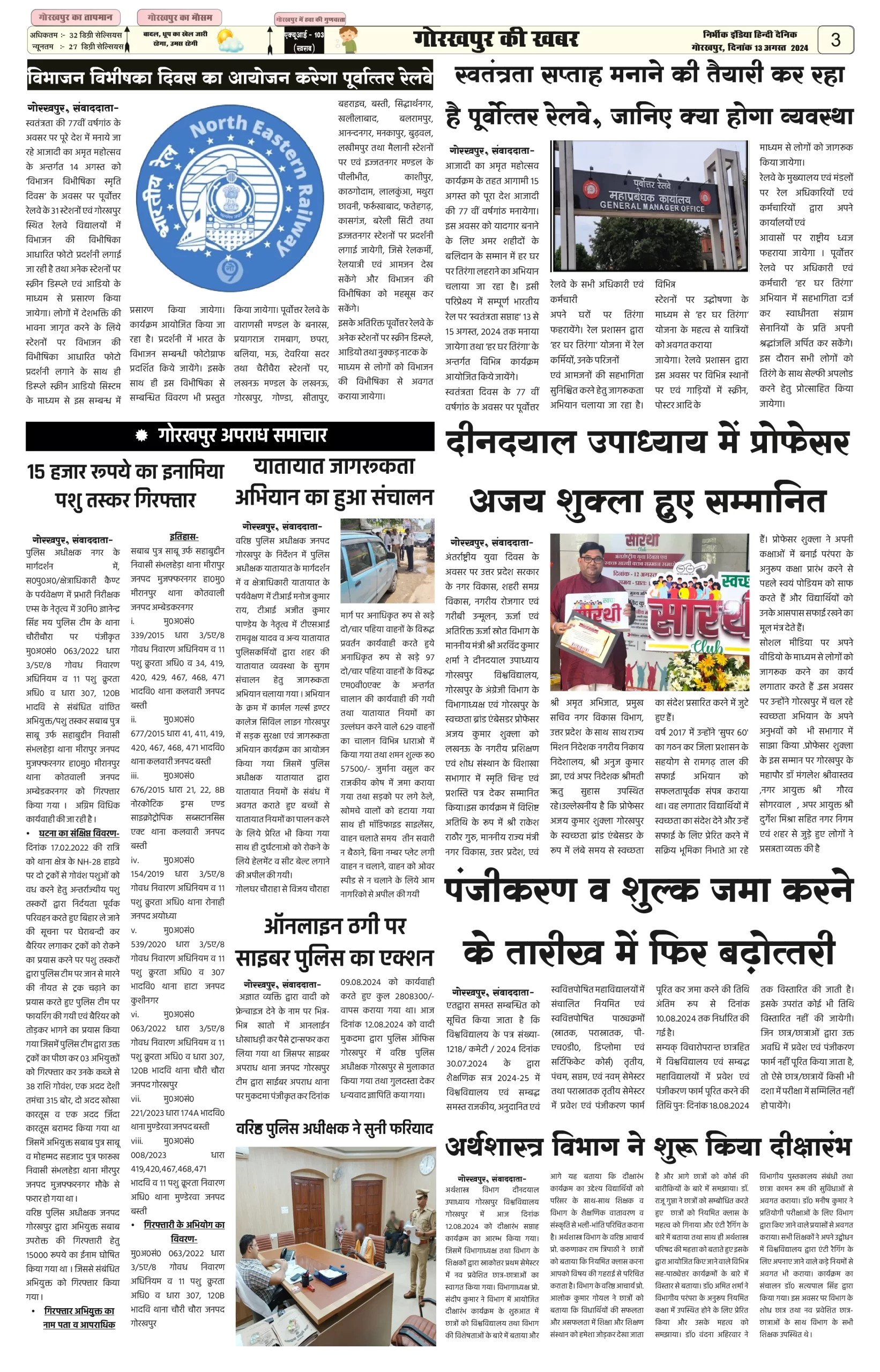 13 August 2024 Nirbhik india newspaper Gorakhpur