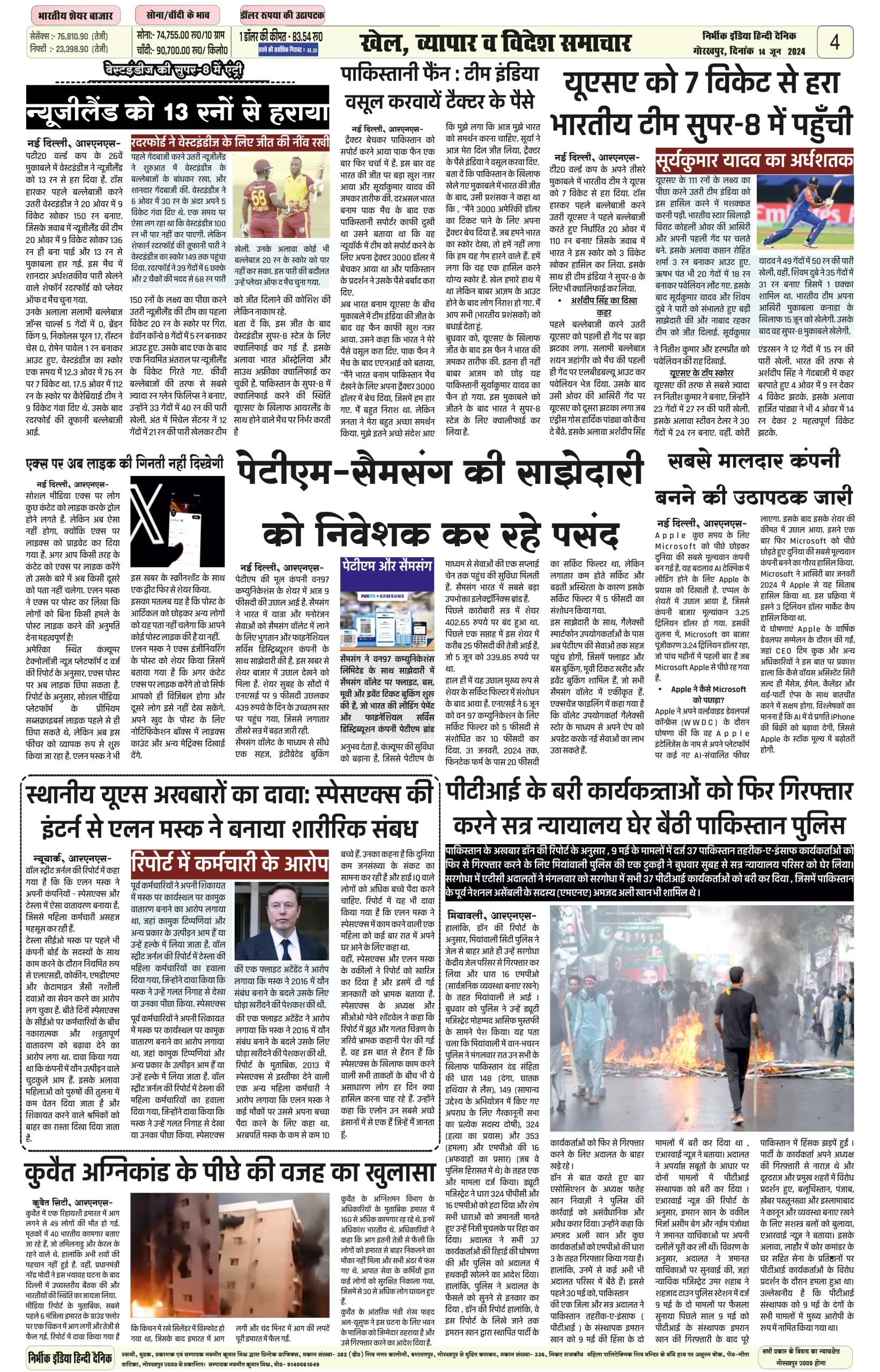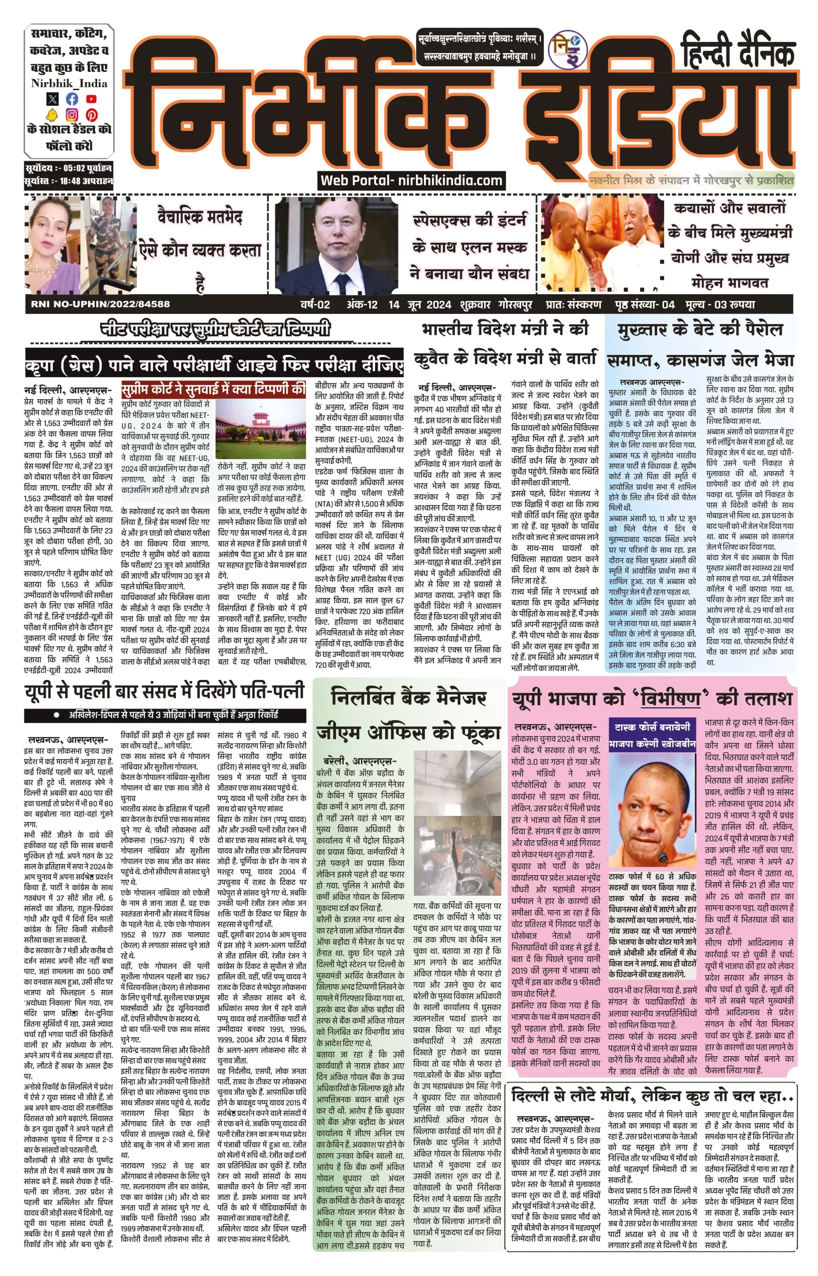 14 June 2024 Nirbhik india newspaper