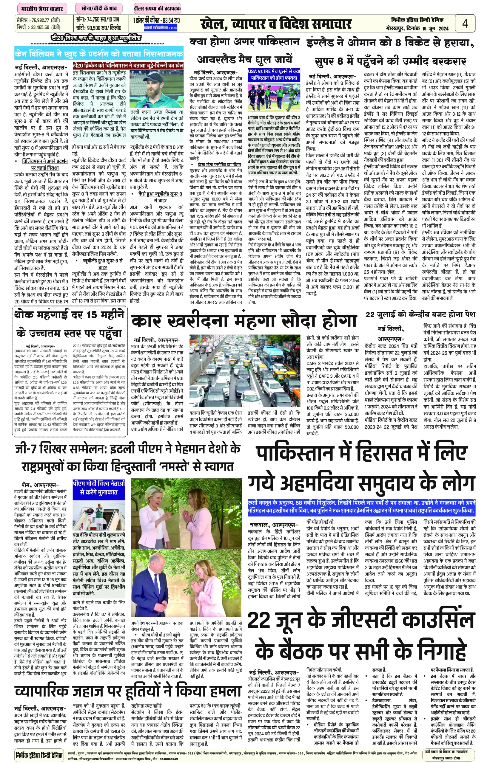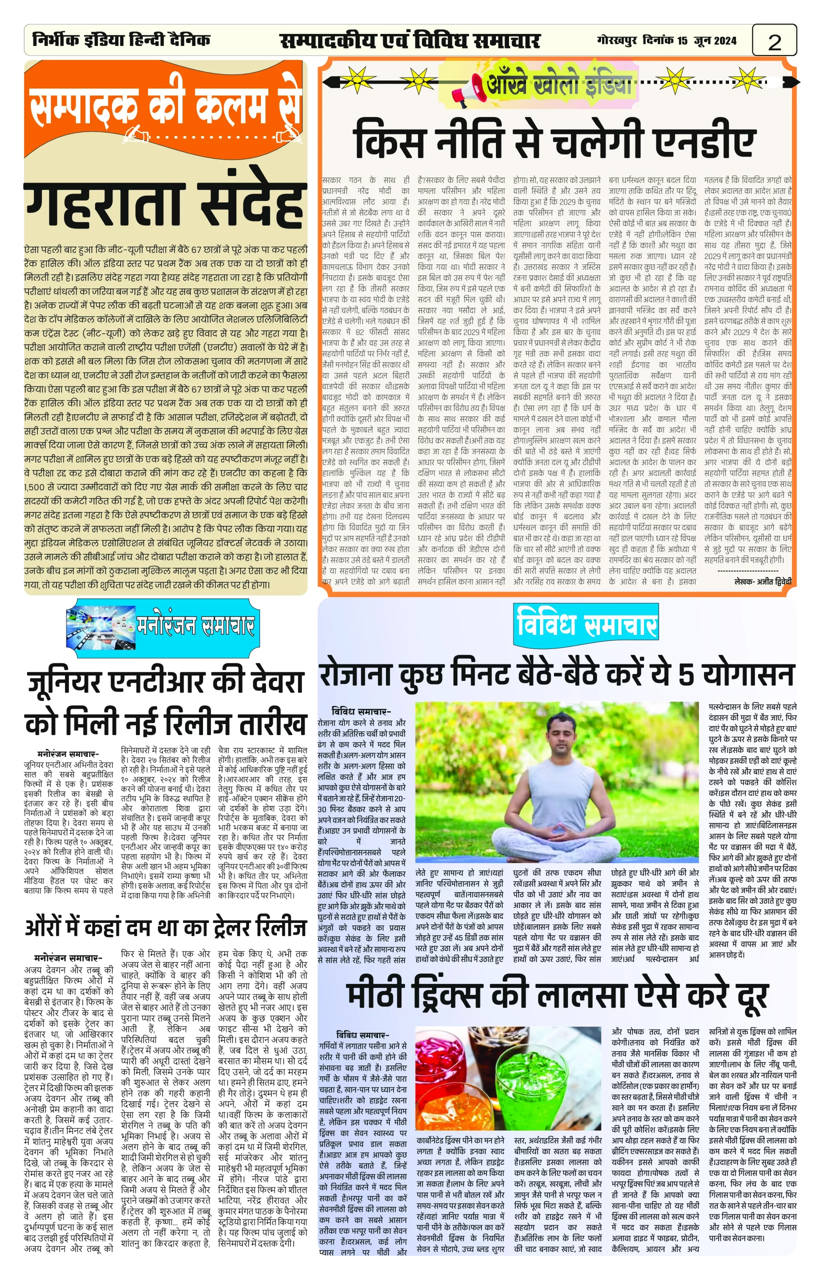 15 June 2024 Nirbhik india newspaper