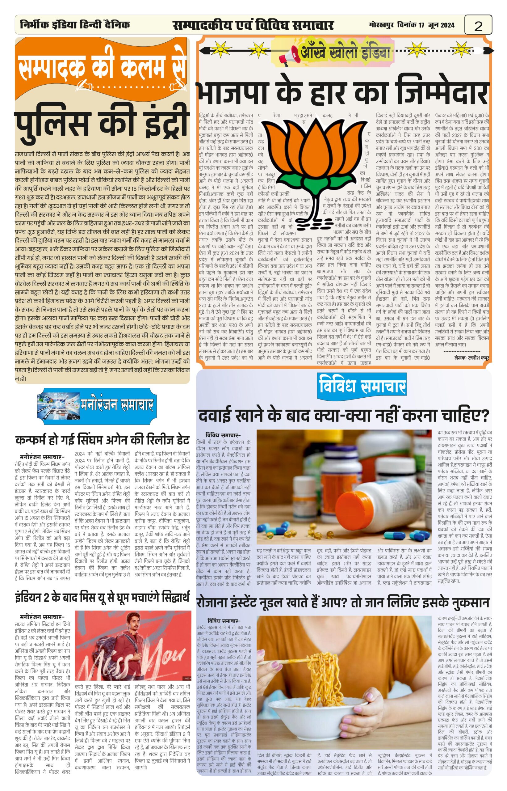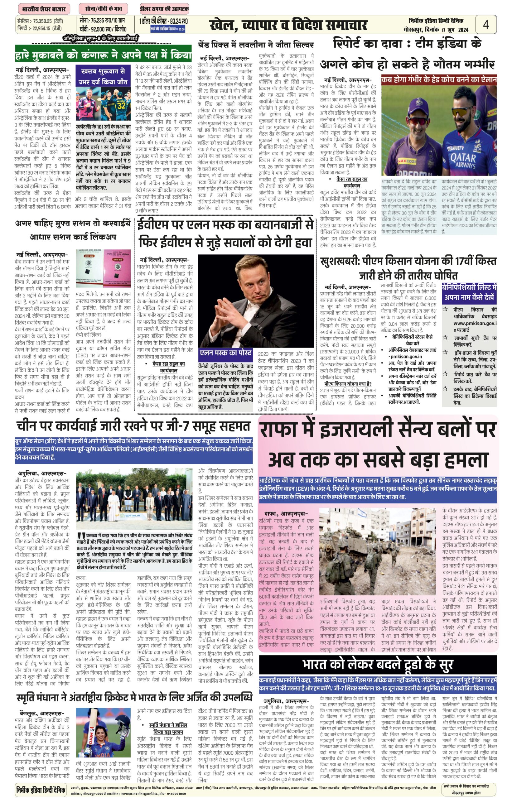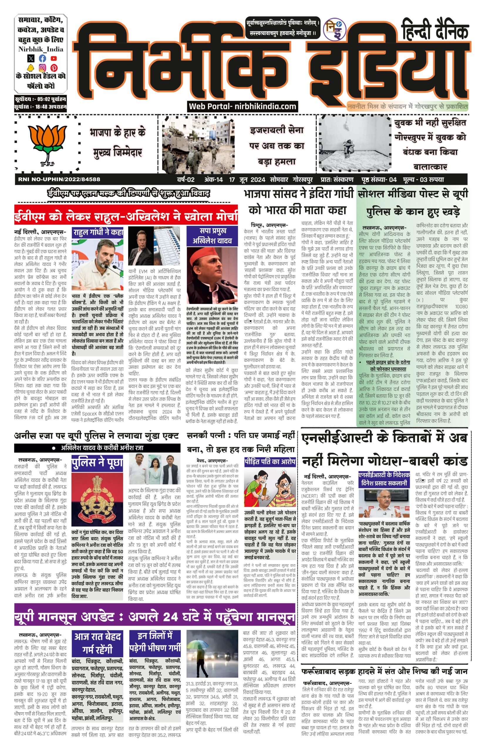 17 June 2024 Nirbhik india newspaper