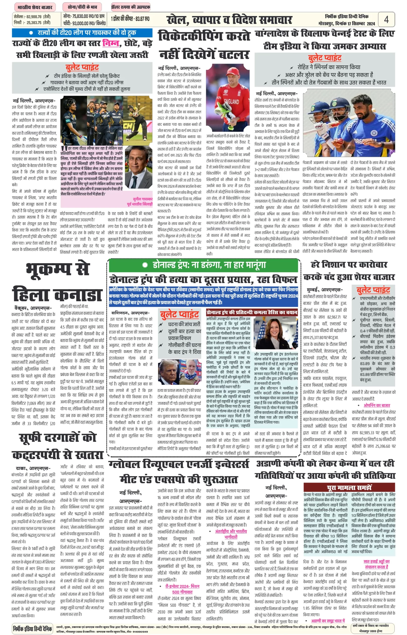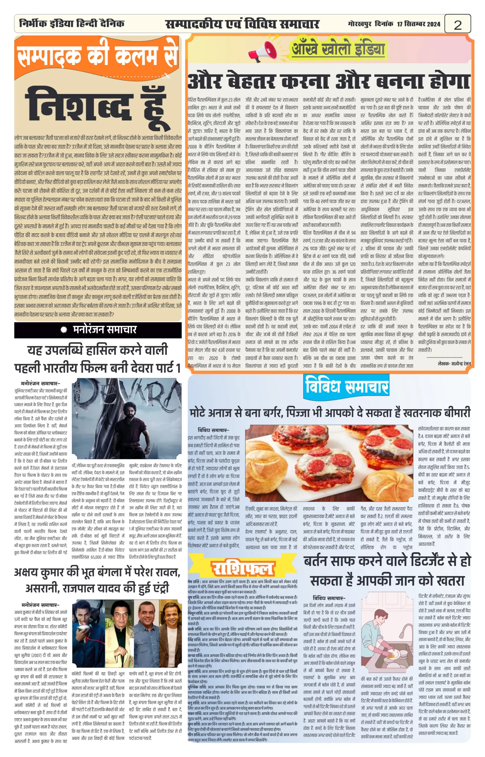 17 September 2024 Nirbhik india newspaper GKP