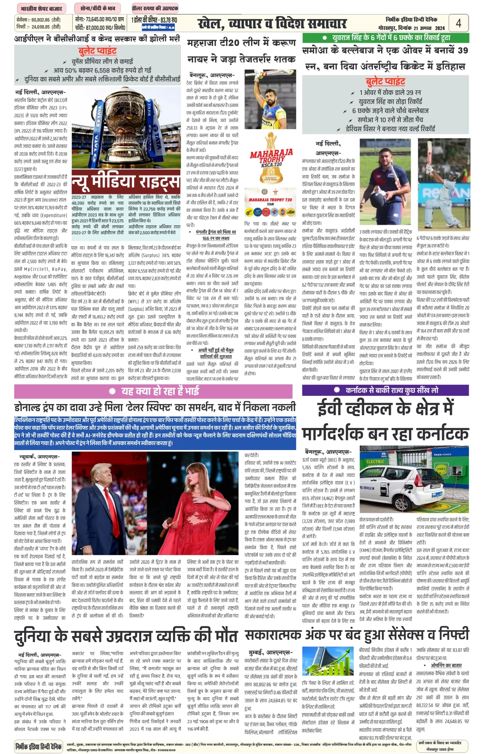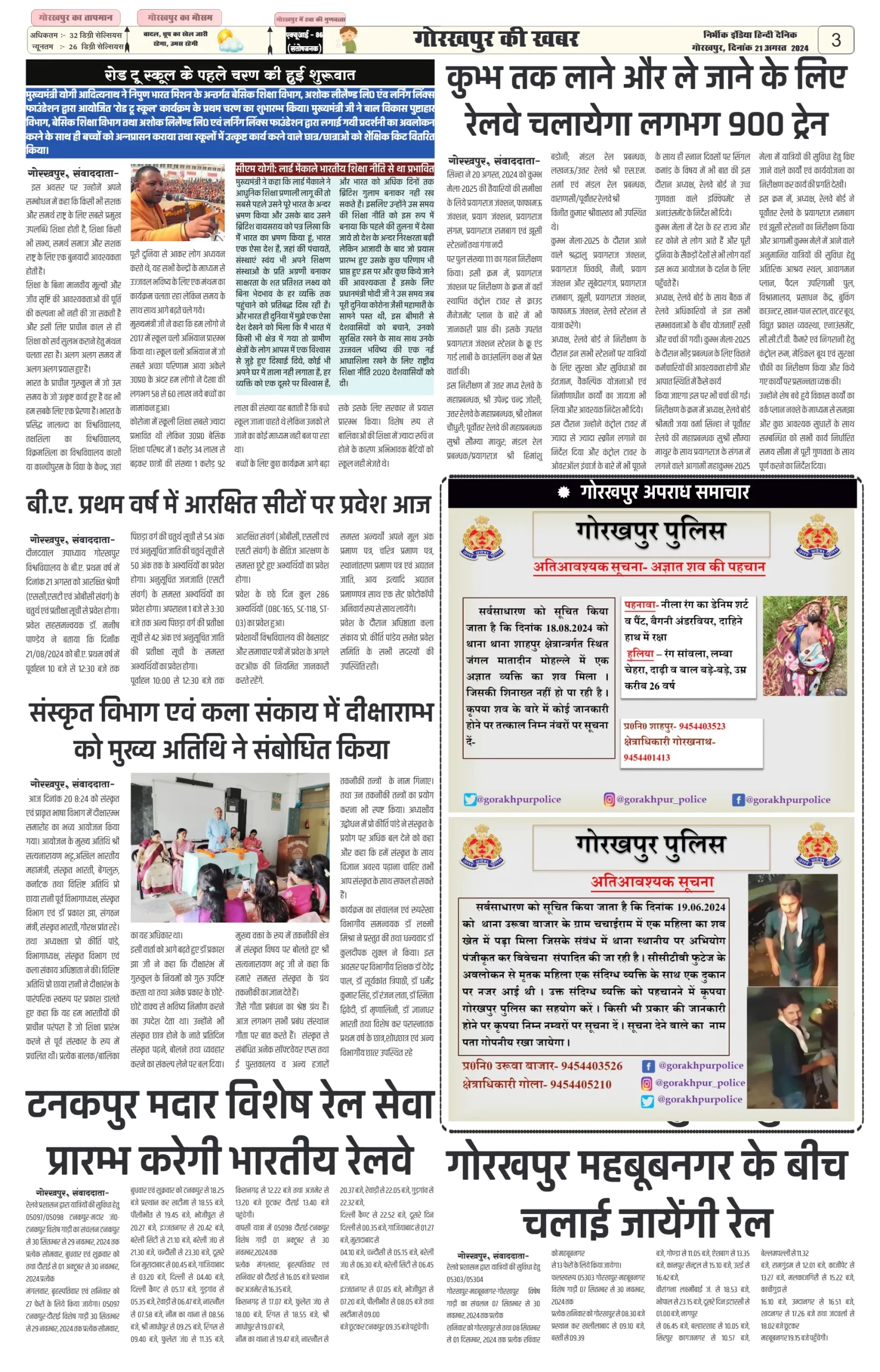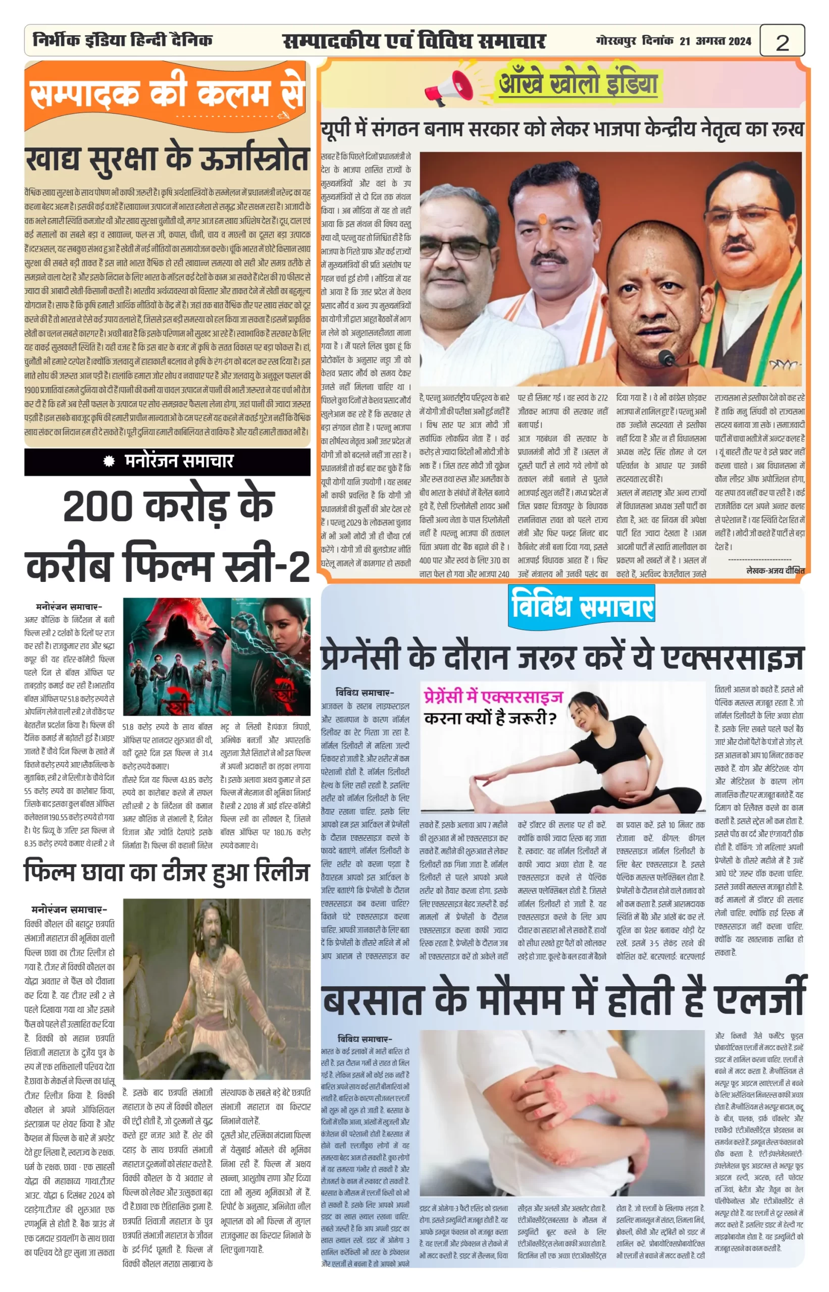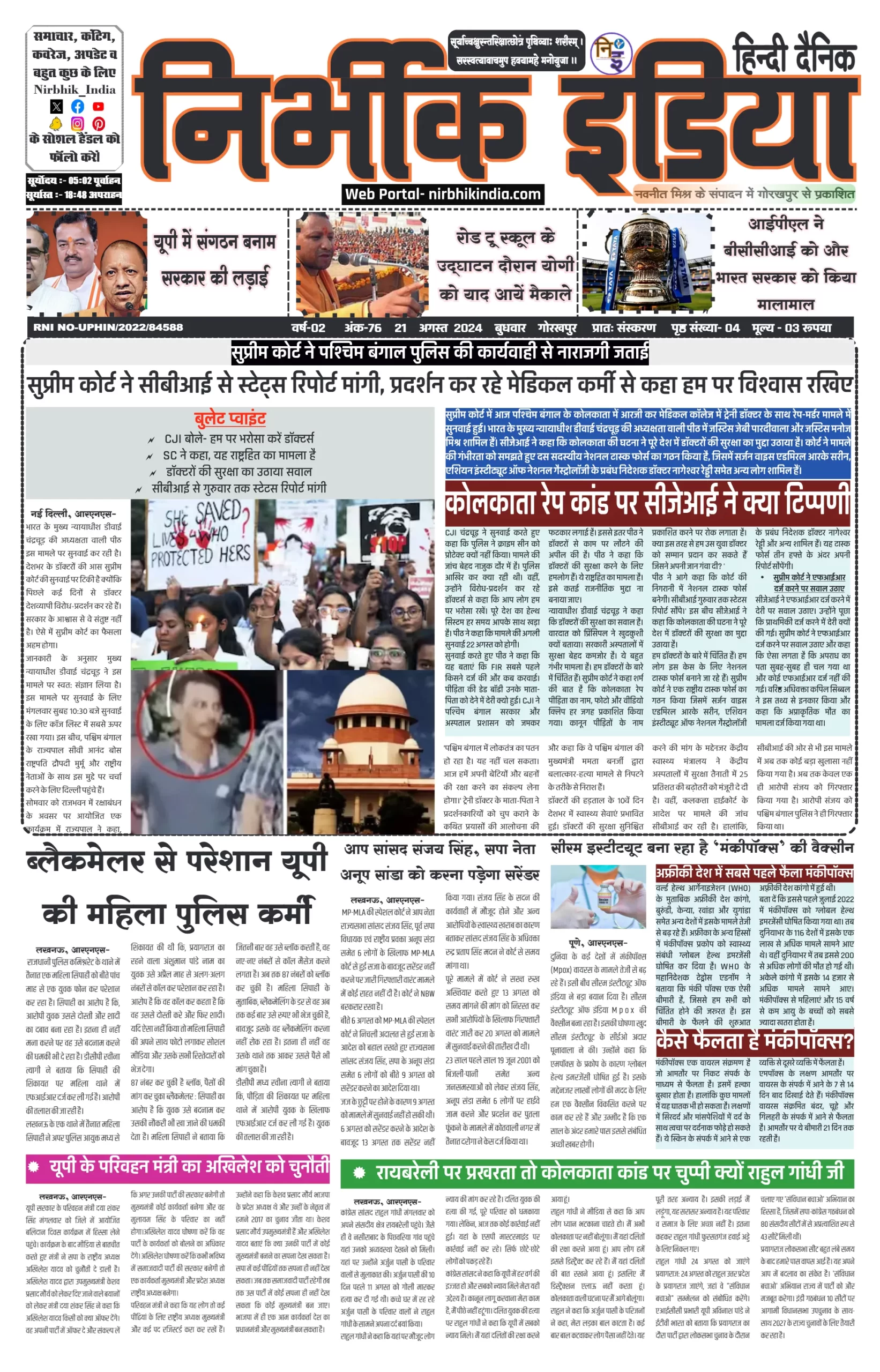 21 August 2024 Nirbhik india newspaper Gorakhpur