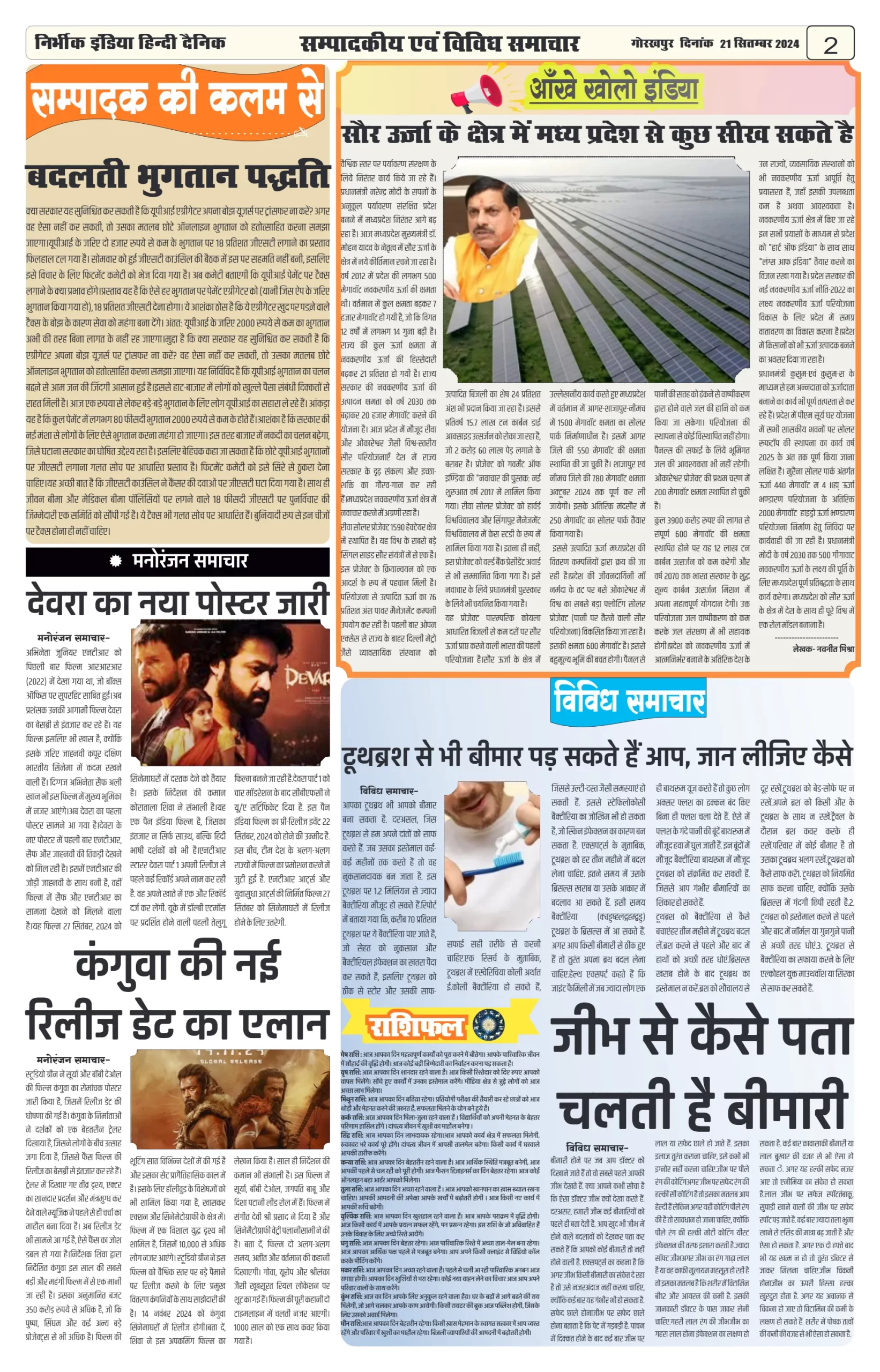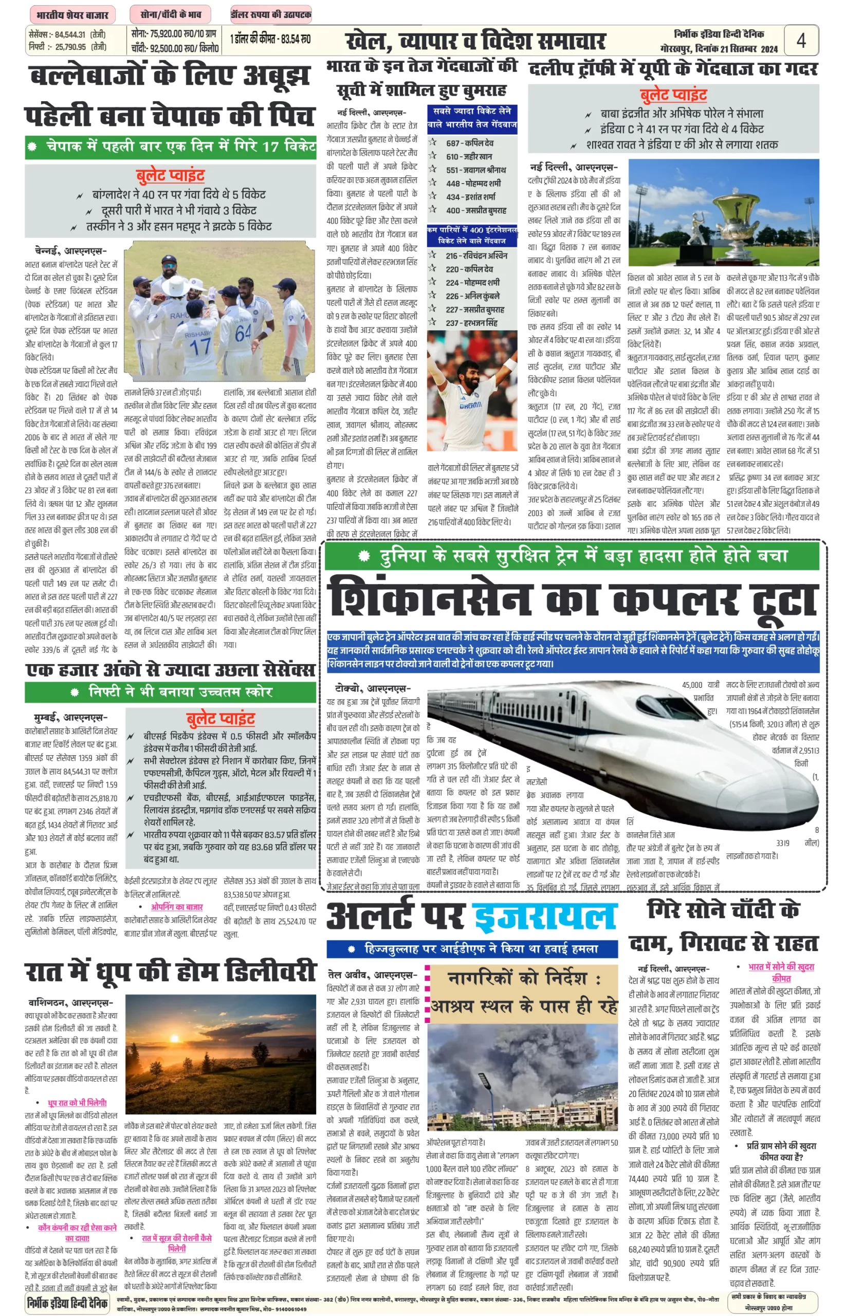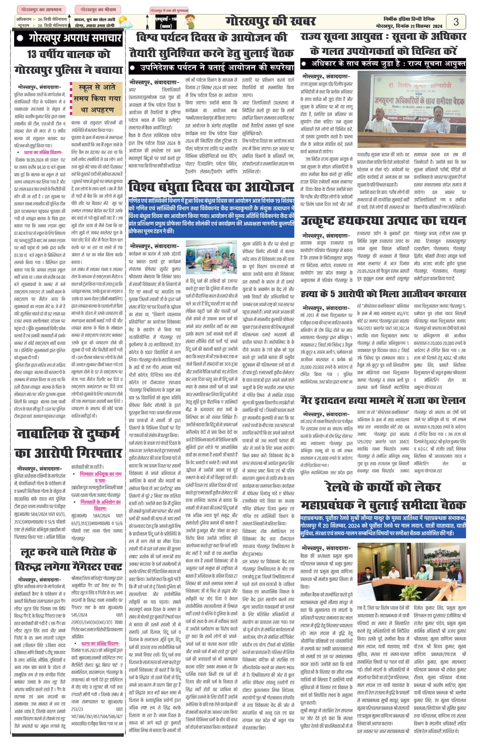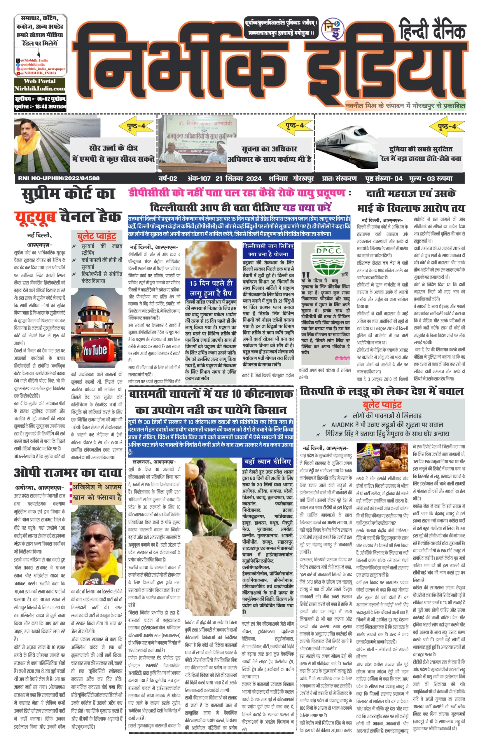 21 September 2024 Nirbhik india newspaper GKP