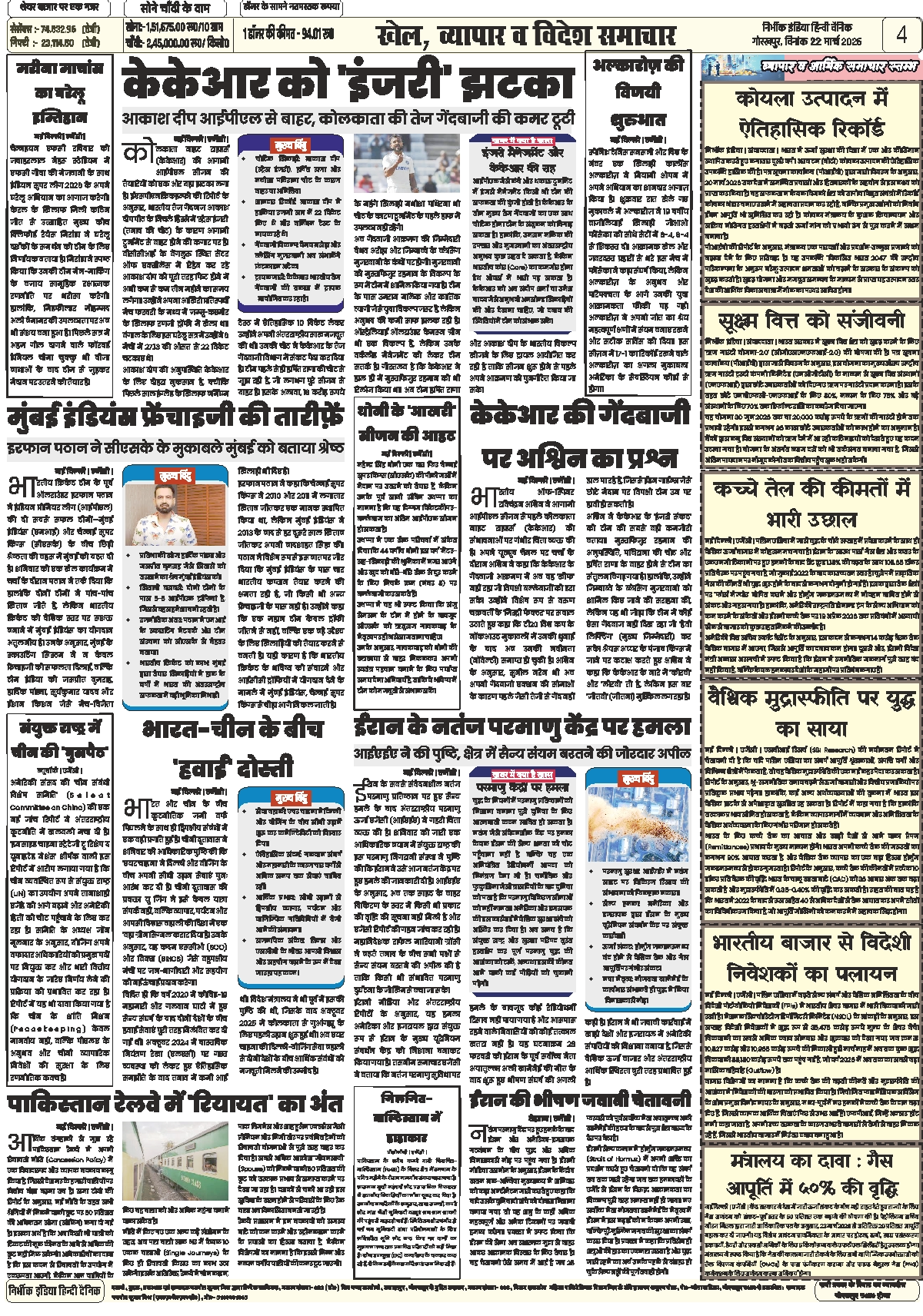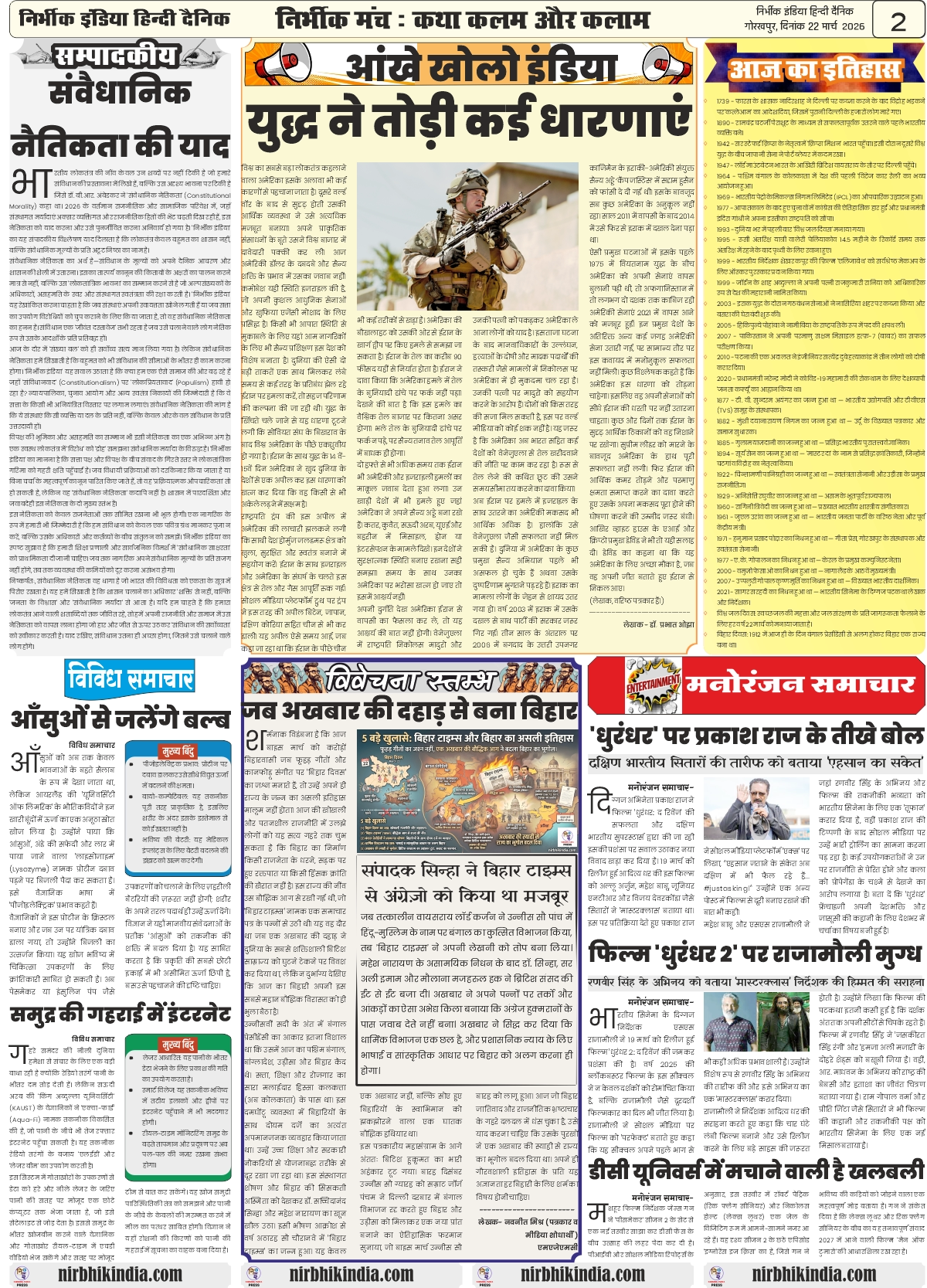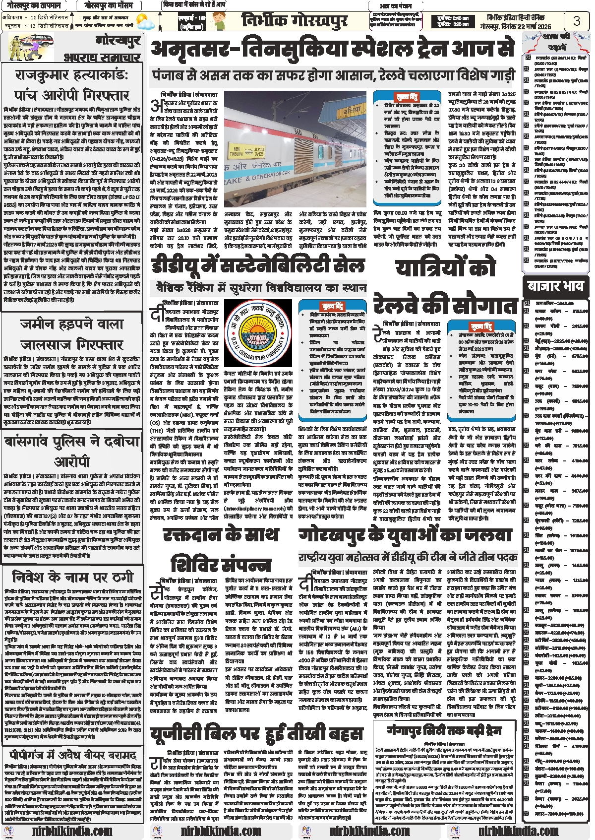 22 march 2026 nirbhik india gorakhpur epaper