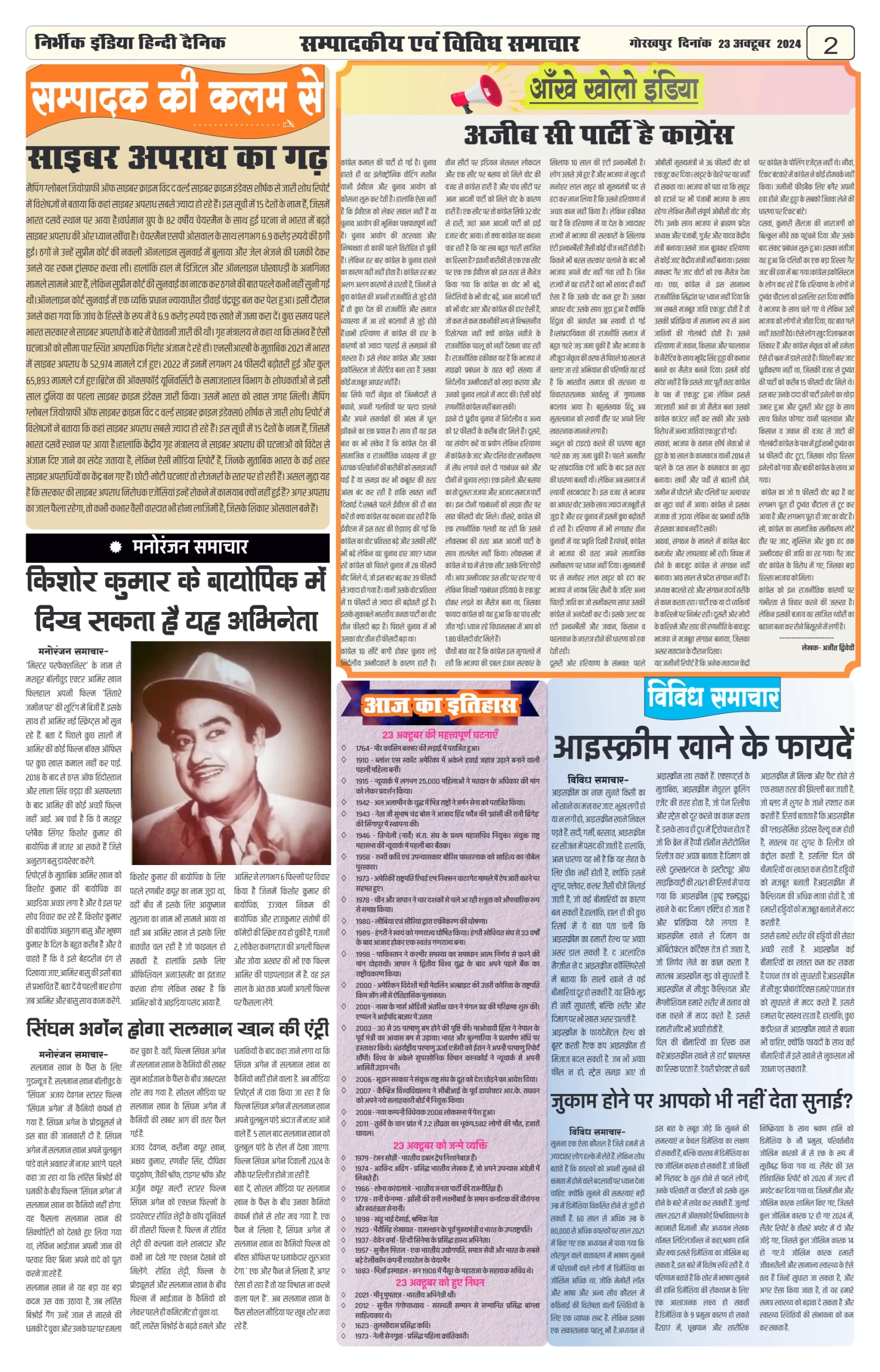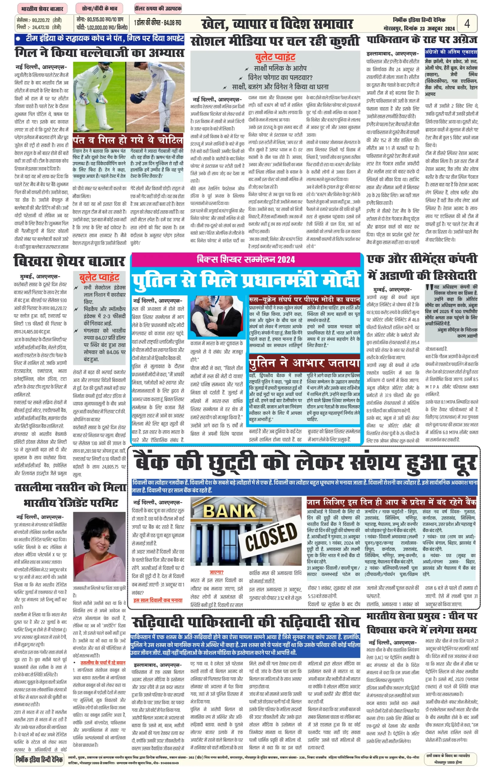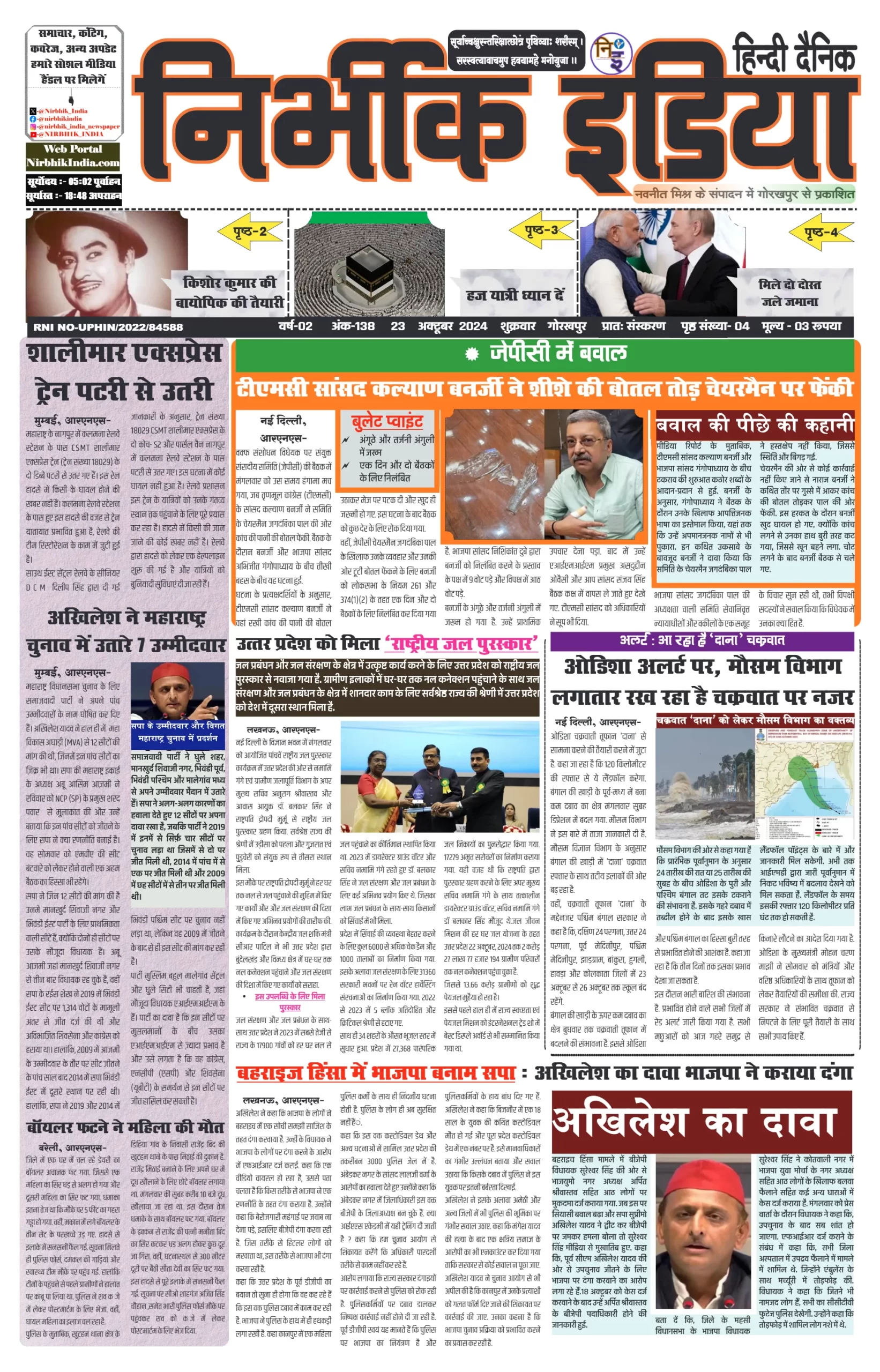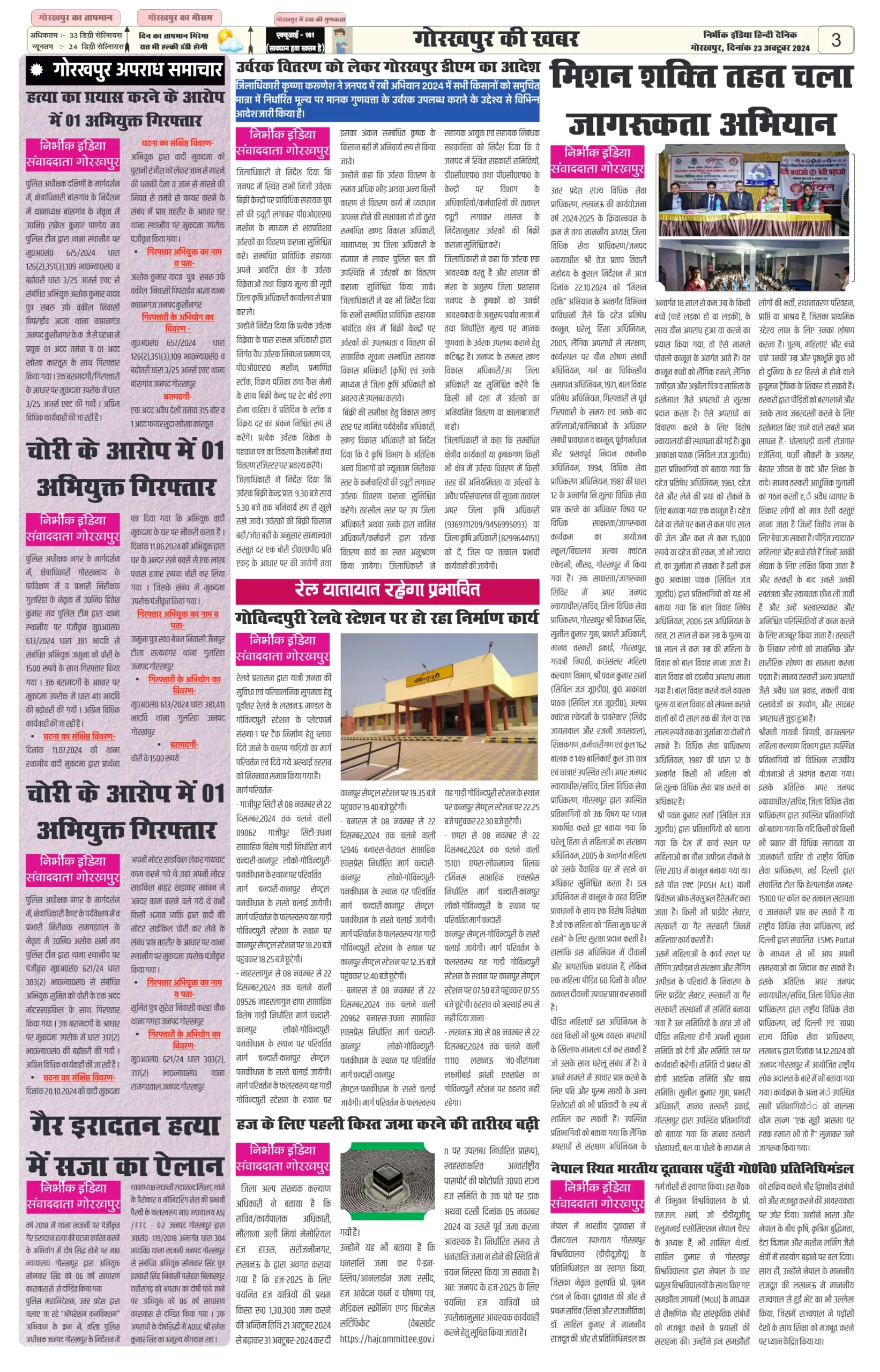 23 October 2024 Nirbhik india newspaper GKP