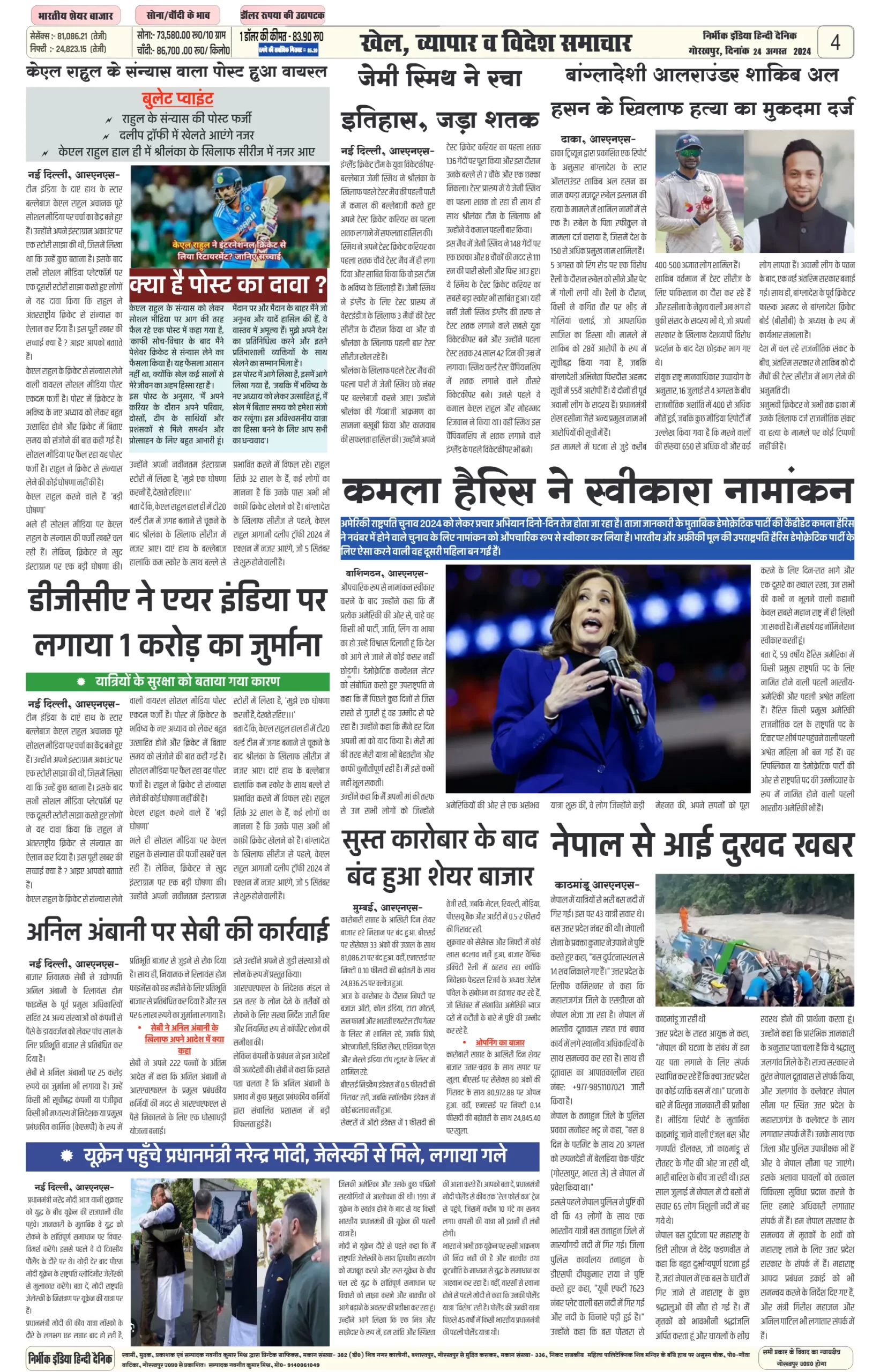 निर्भीक इंडिया (NIRBHIK INDIA) एक समाचार पत्र नही अपितु 244 साल से भी लम्बे समय से चल रहे पत्रकारिता की विचारधारा है, जो हमेशा लोकतंत्र के चारो स्तम्भ को मान्यता देने एवं जनता सर्वोपरि की विचारों का प्रतिनिधित्वकत्र्ता है। आप सभी हमारे साथ जुड़े अपने तन, मन व धन से हमें ताकत दें जिससे कि हम आप (जनता) के लिए आप (जनता) के द्वारा, आप (जनता) के आदेशों पर केन्द्र से सवाल करते हुए एक पूर्ण लोकतंत्र बना सकें।