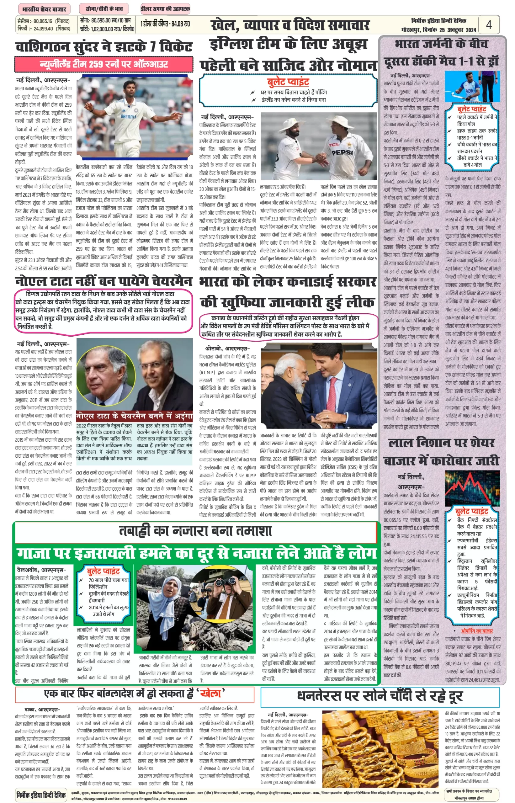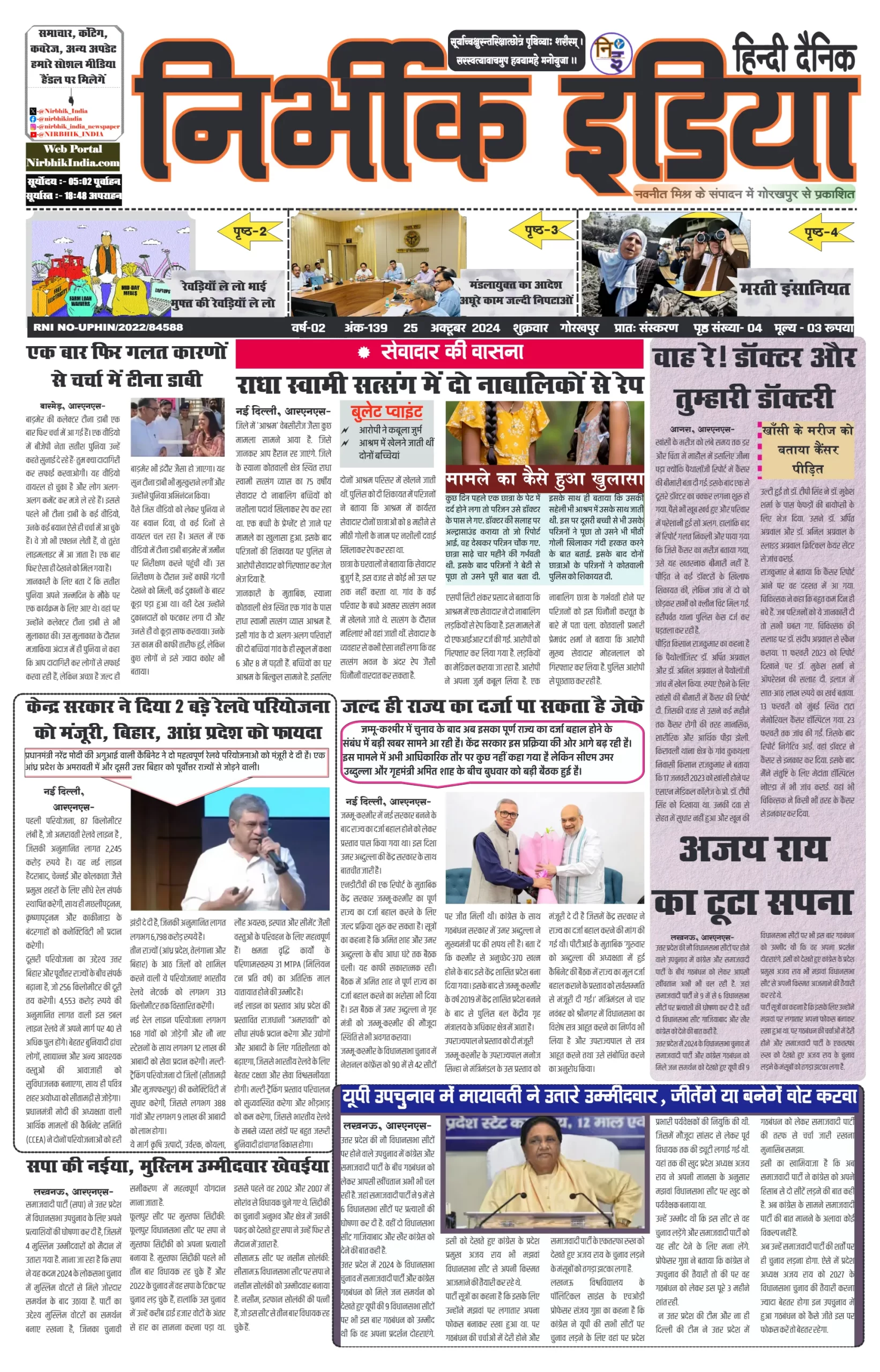 25 October 2024 Nirbhik india newspaper GKP