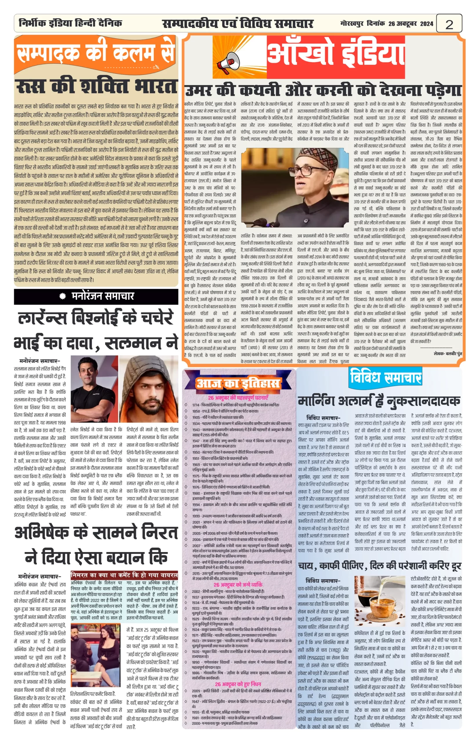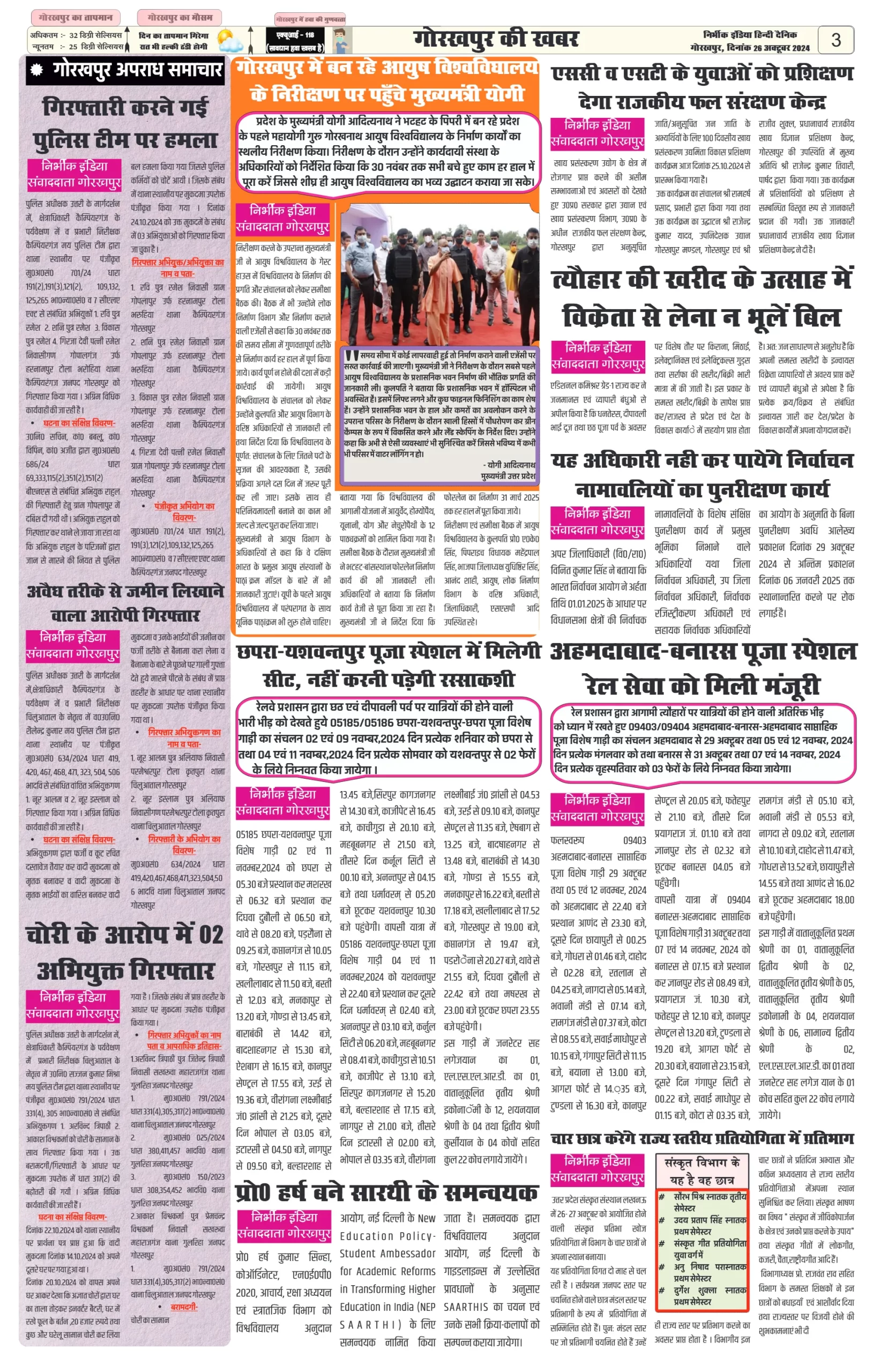 26 October 2024 Nirbhik india newspaper GKP