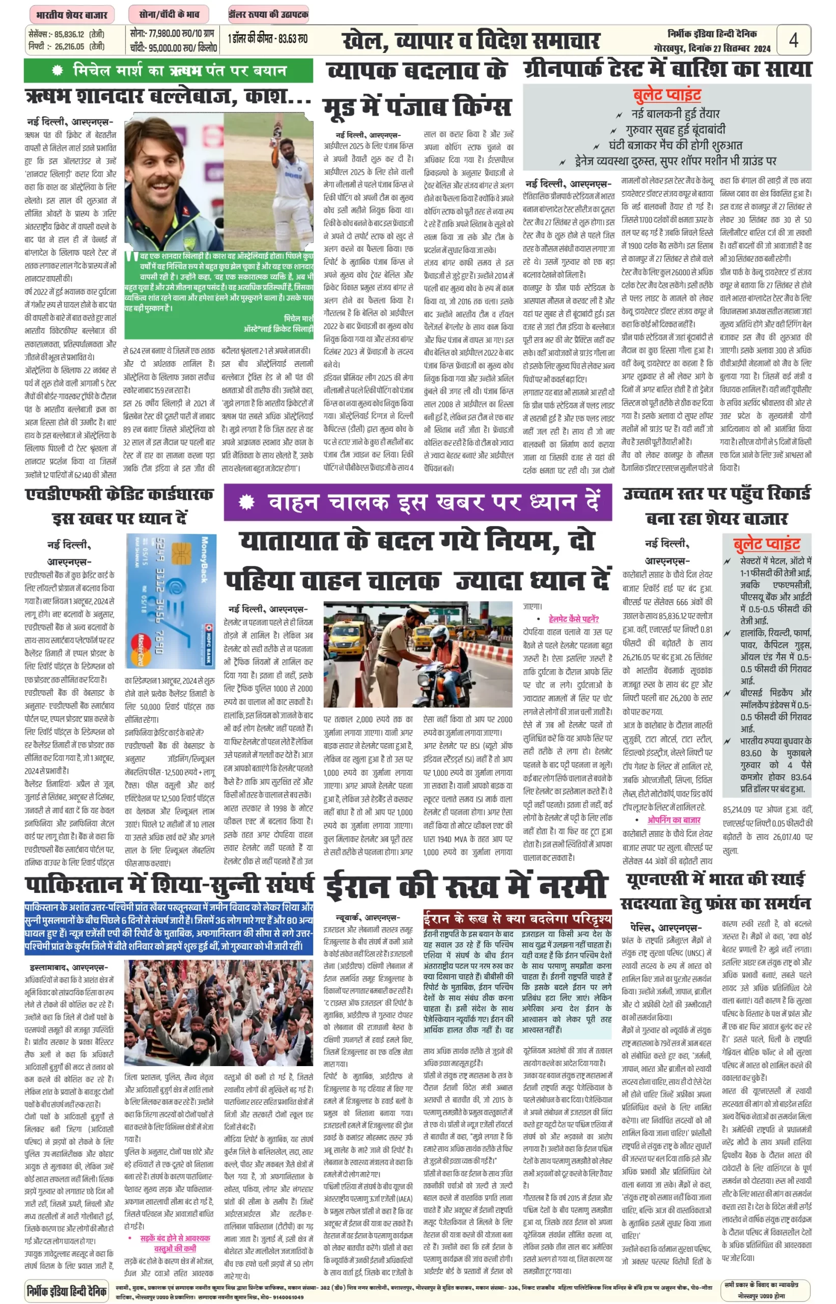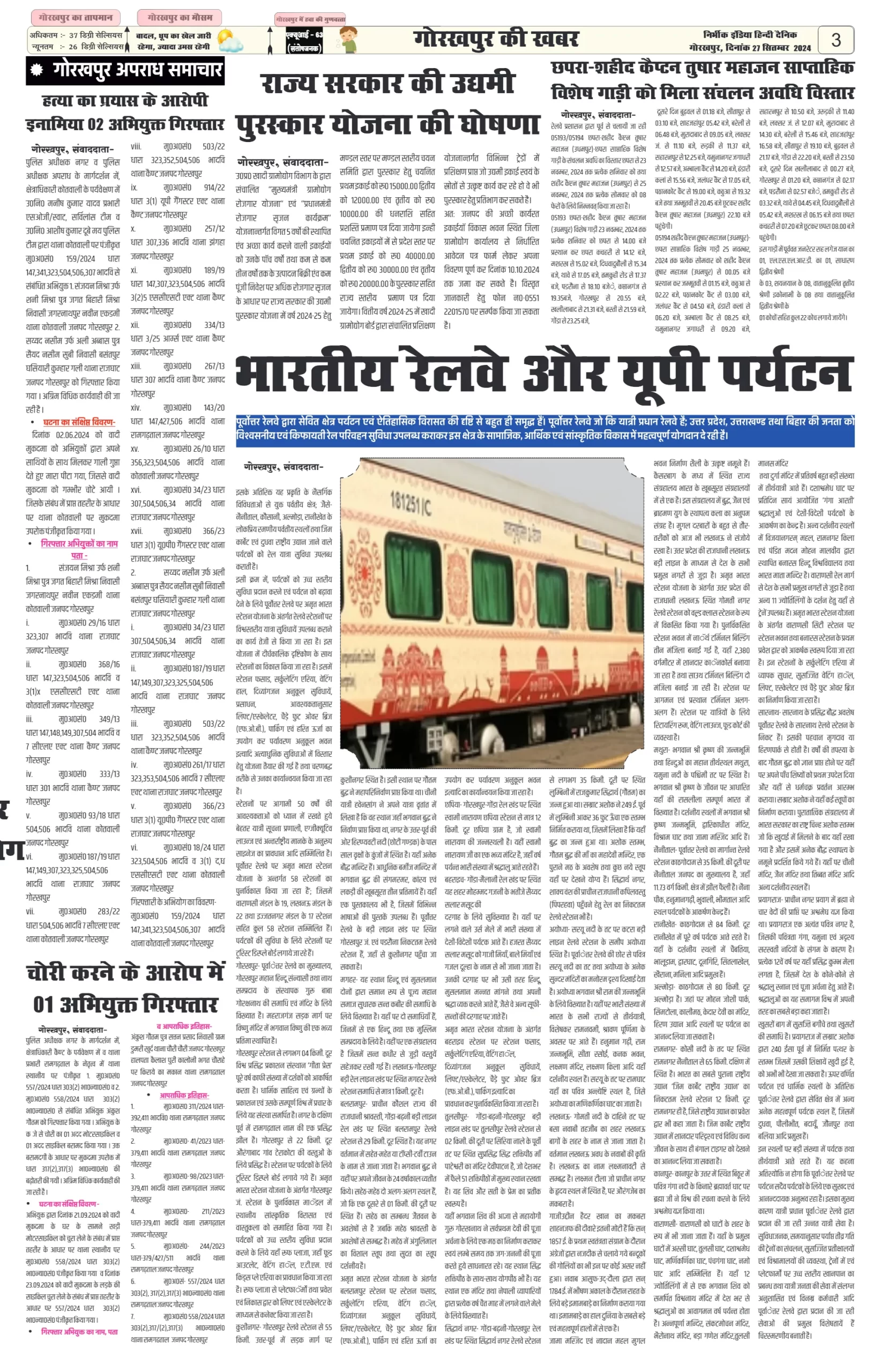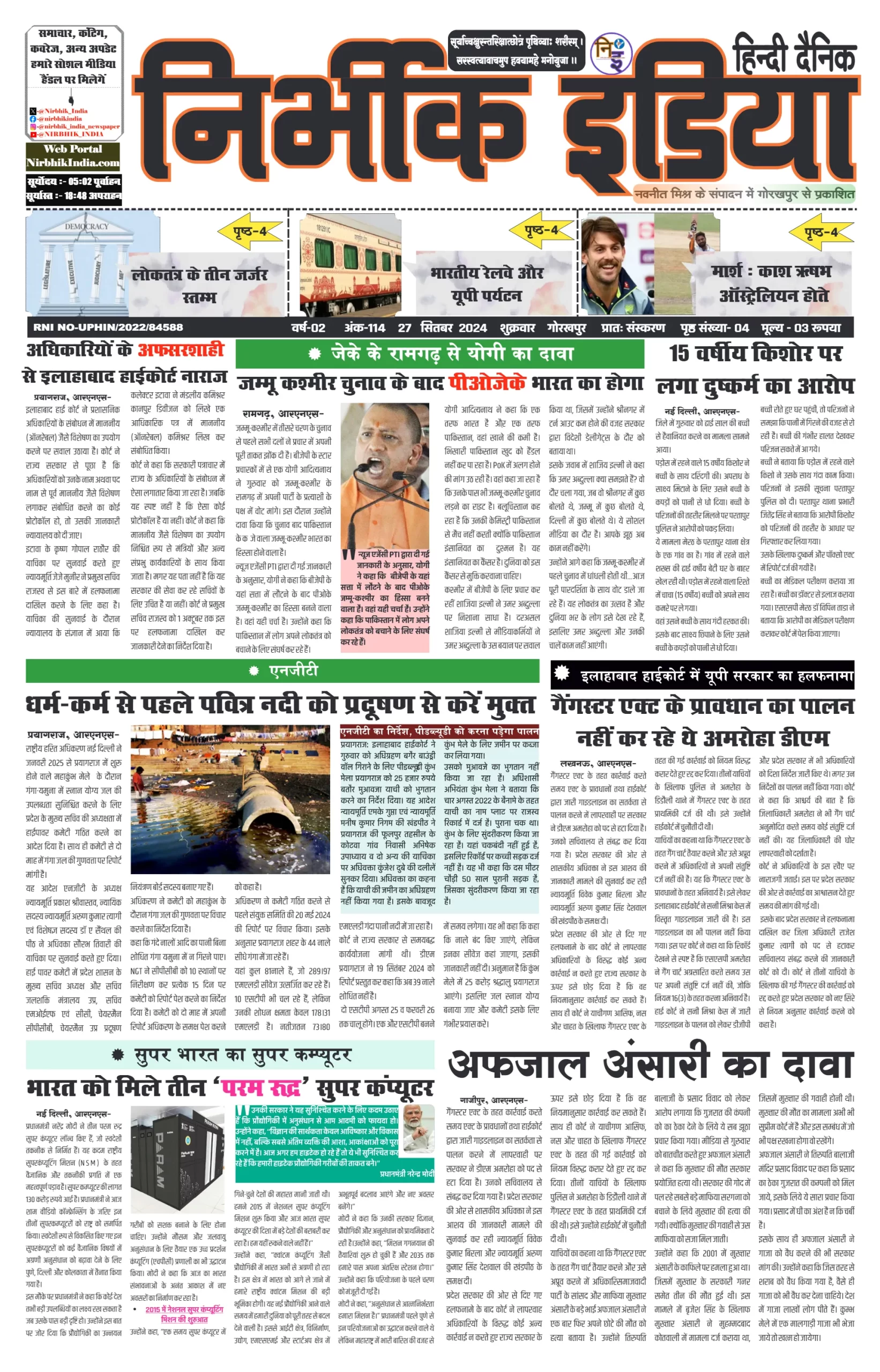 27 September 2024 Nirbhik india newspaper GKP