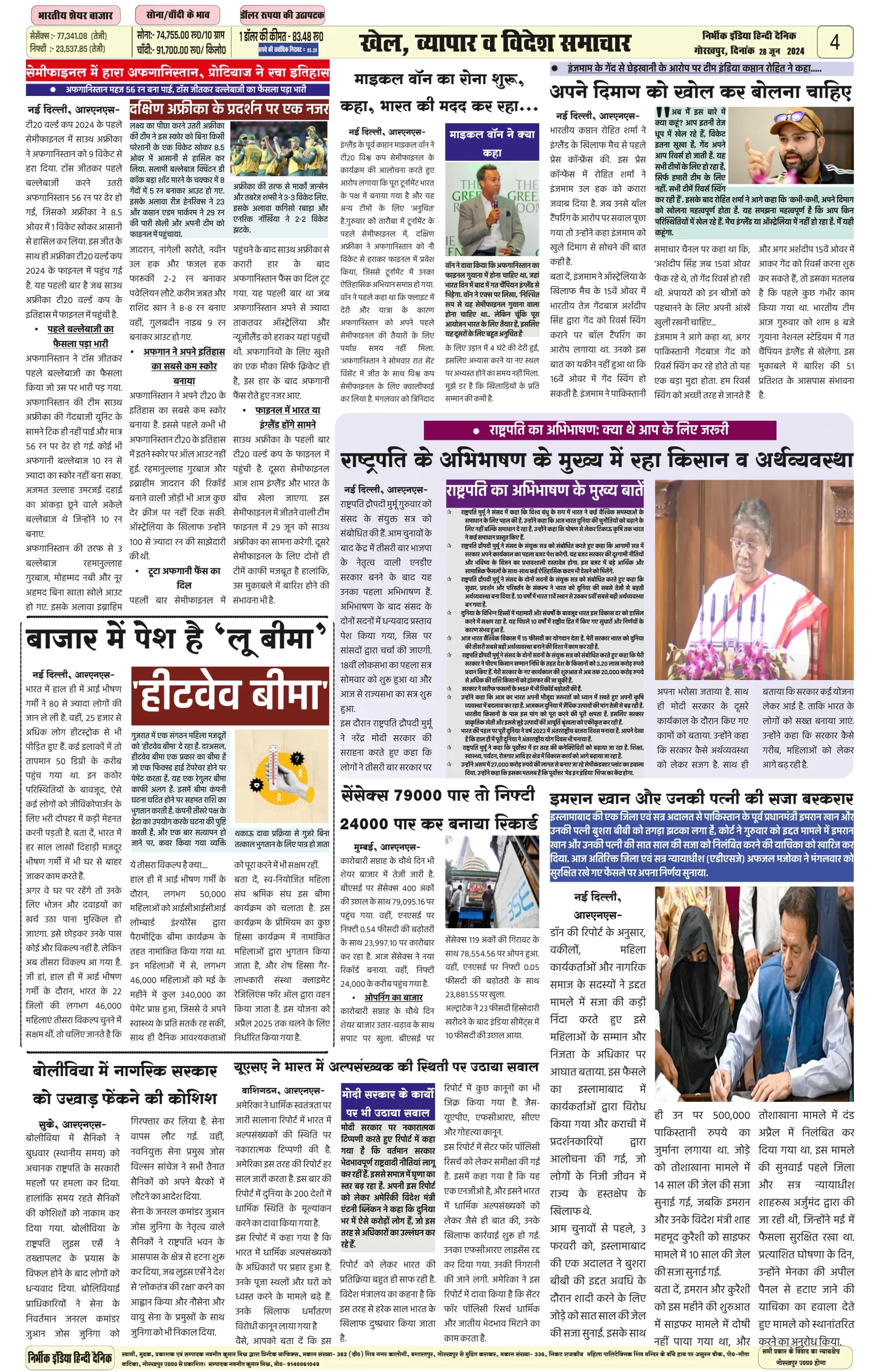 28 June 2024 Nirbhik india newspaper