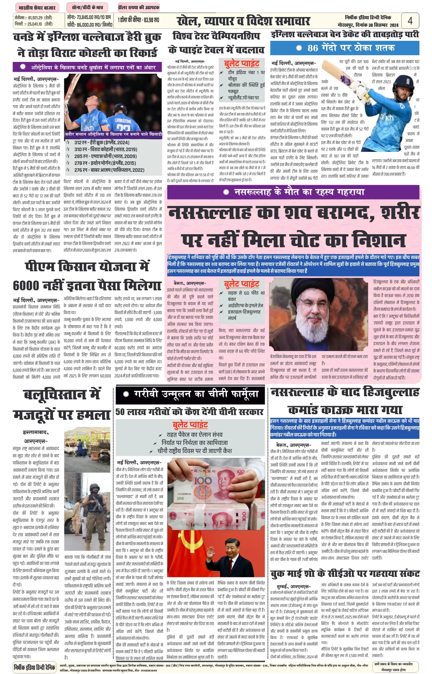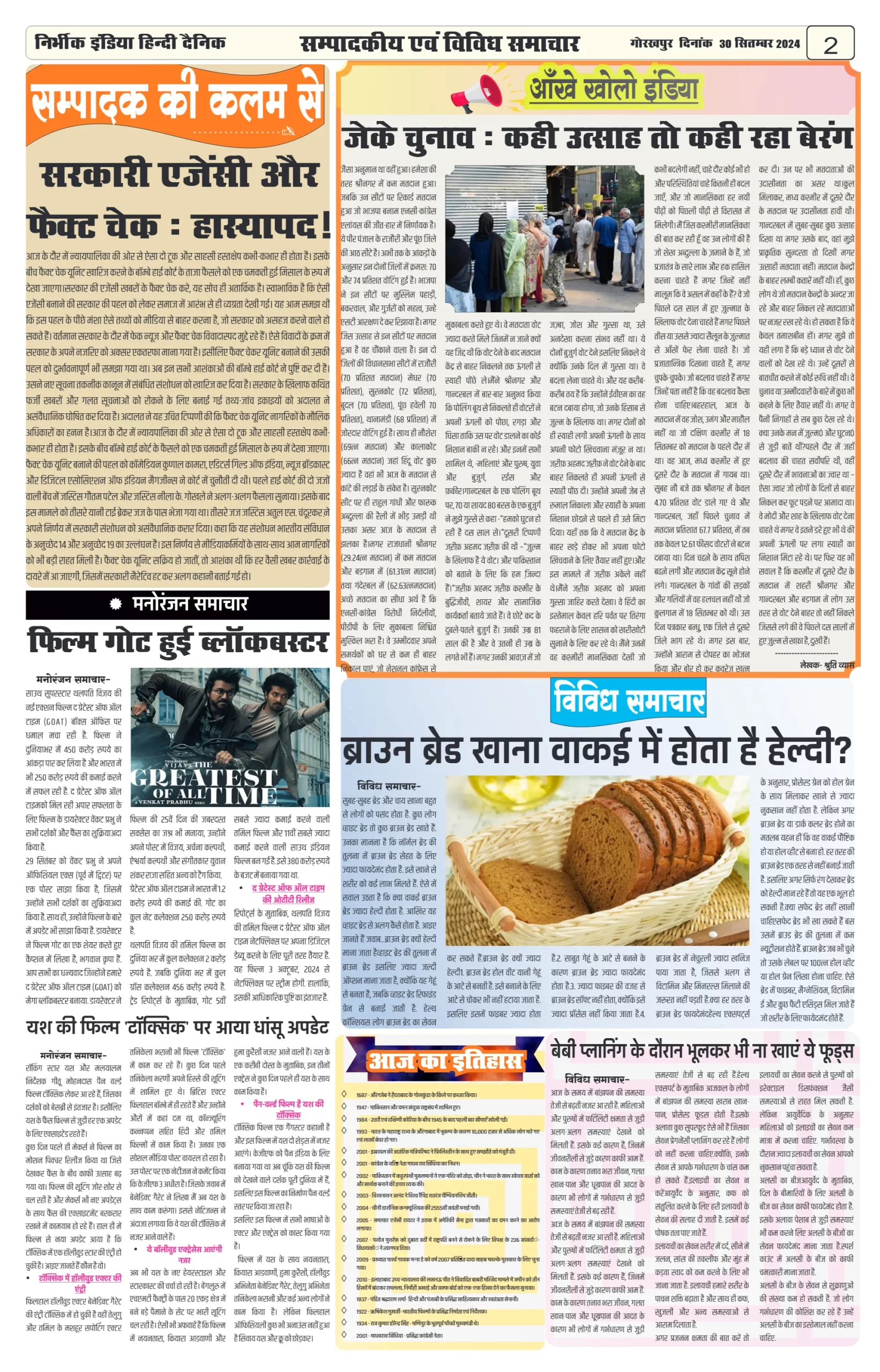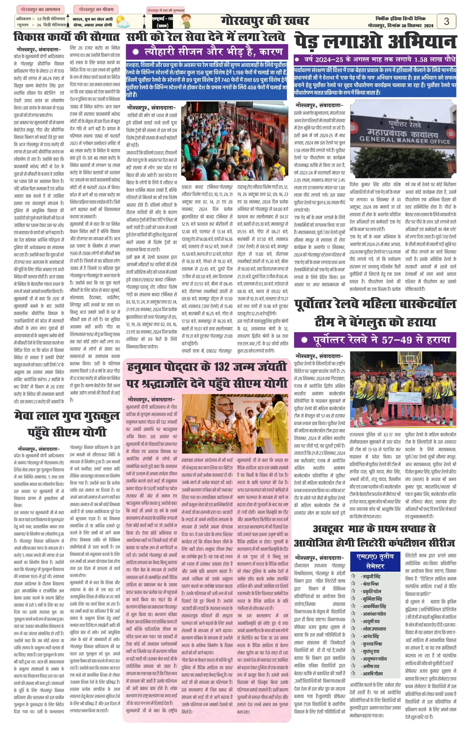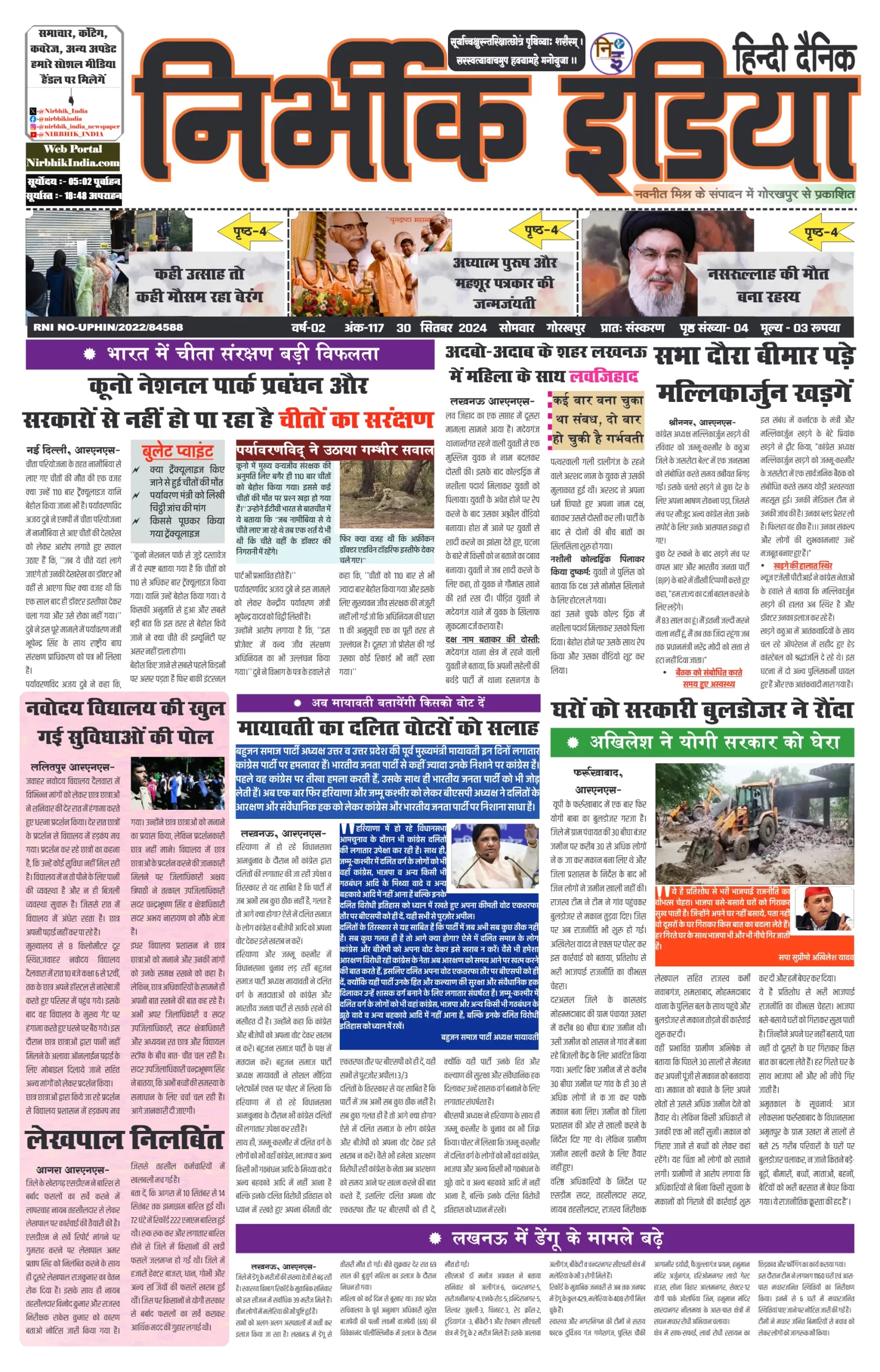 30 September 2024 Nirbhik india newspaper GKP
