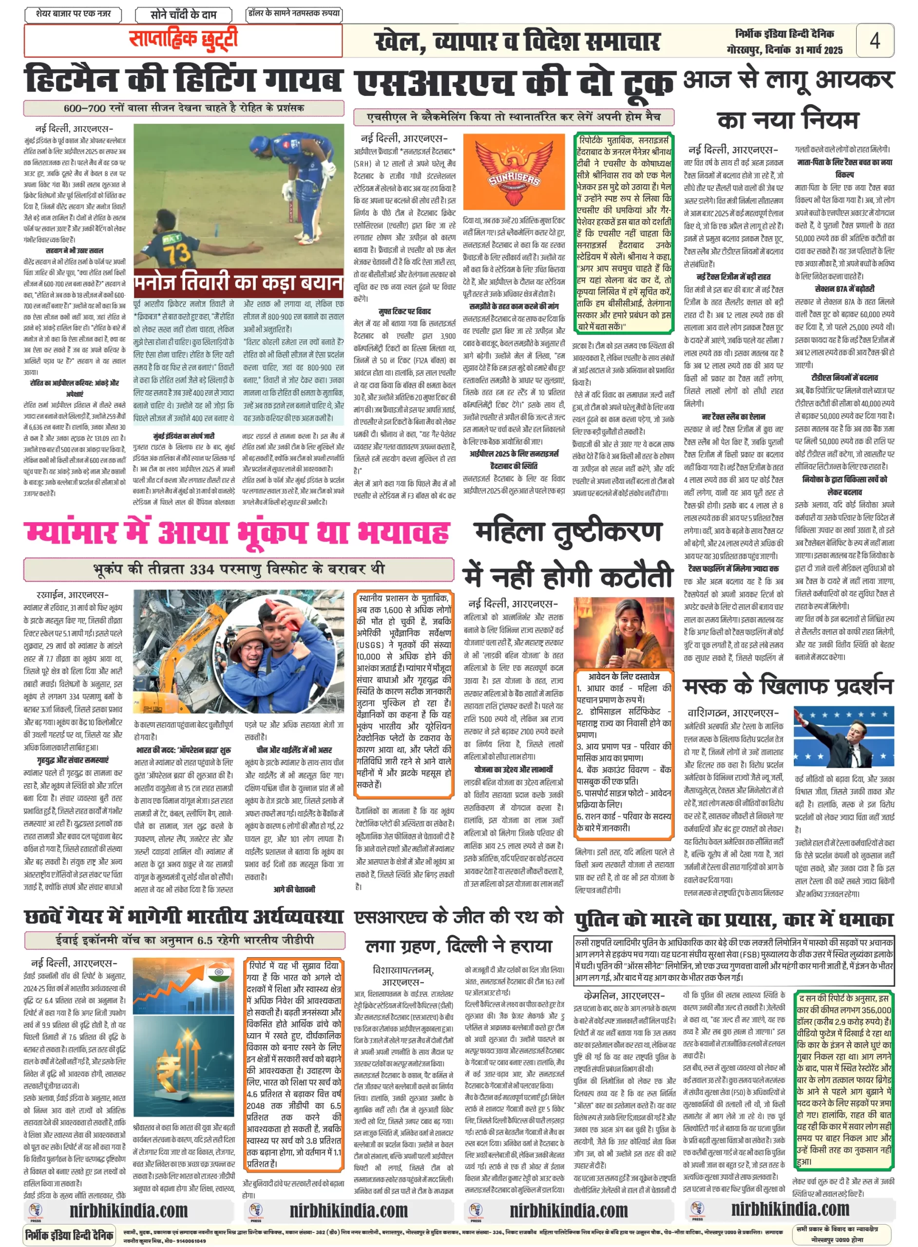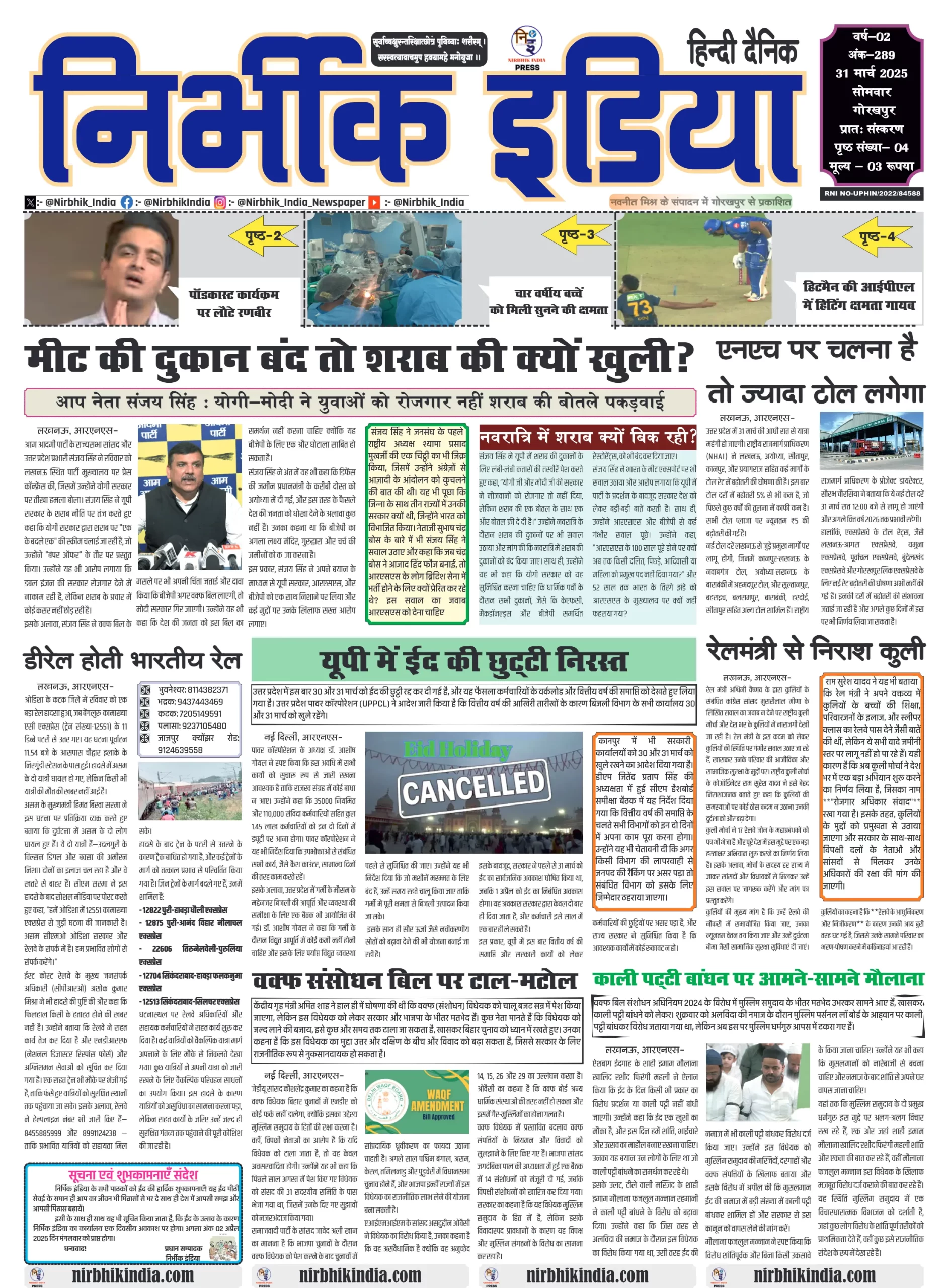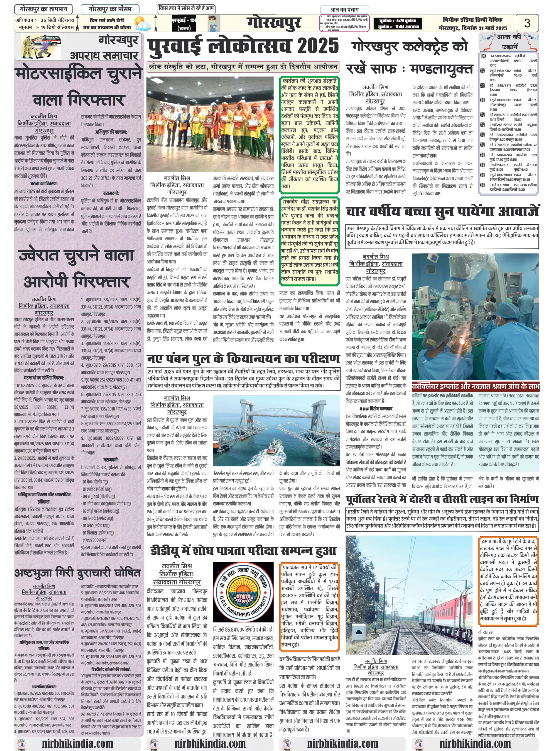 31 March 2025 Nirbhik India Gorakhpur Newspaper