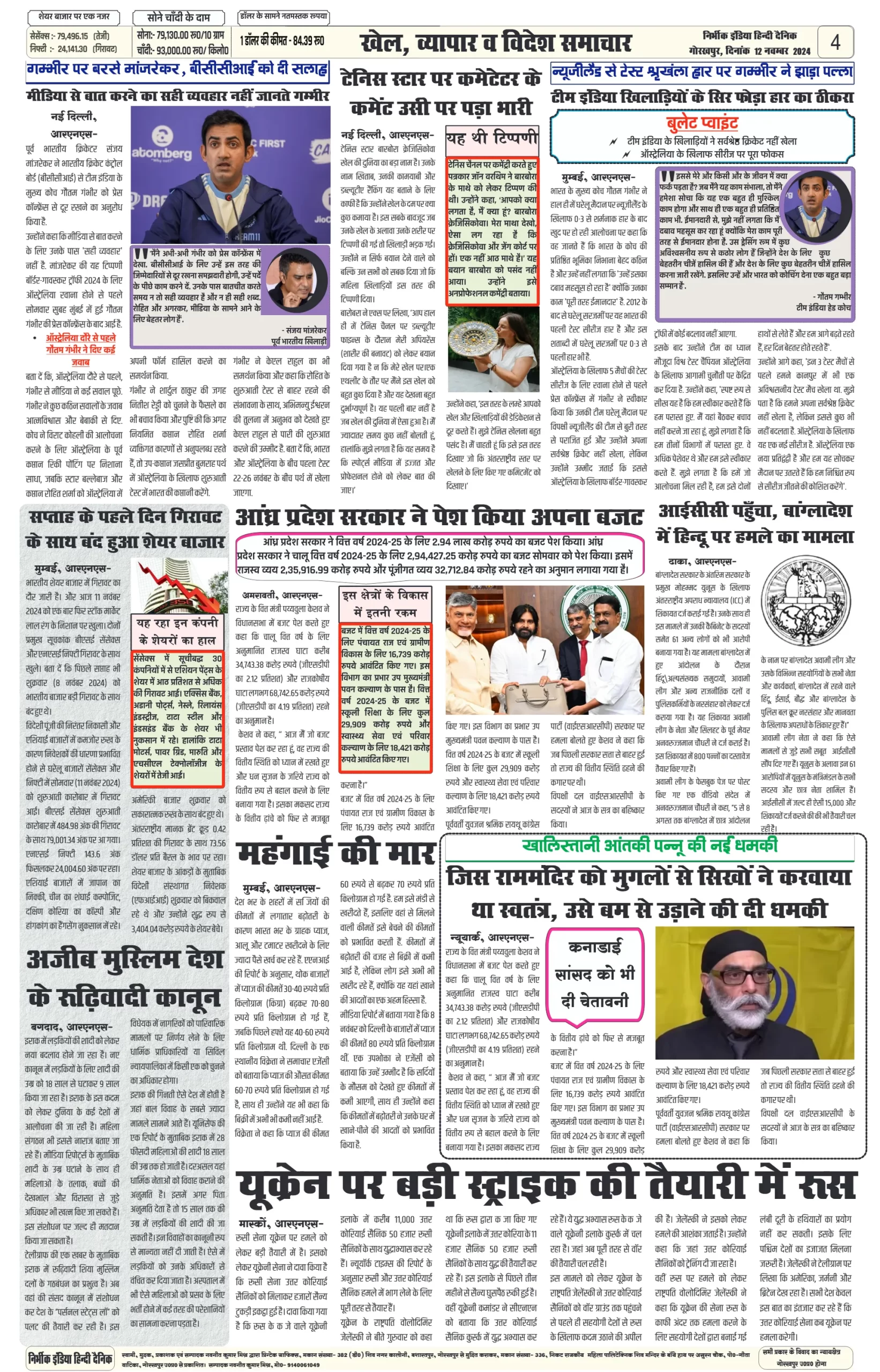 aaj ki taja khabar-12 November 2024 nirbhik india
