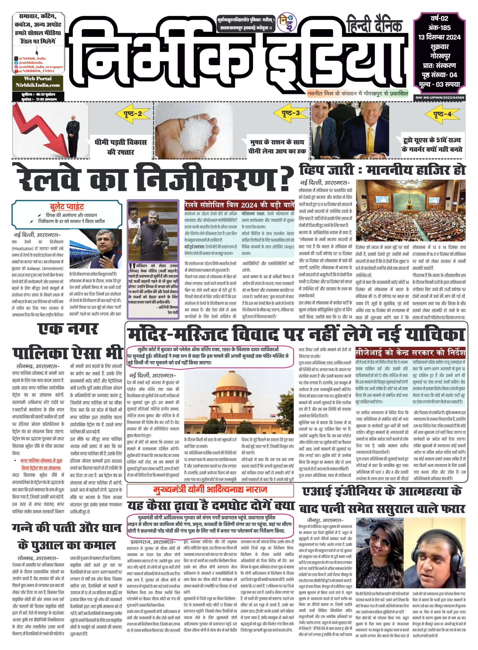 aaj ki taja khabar-13 December 2024 nirbhik india