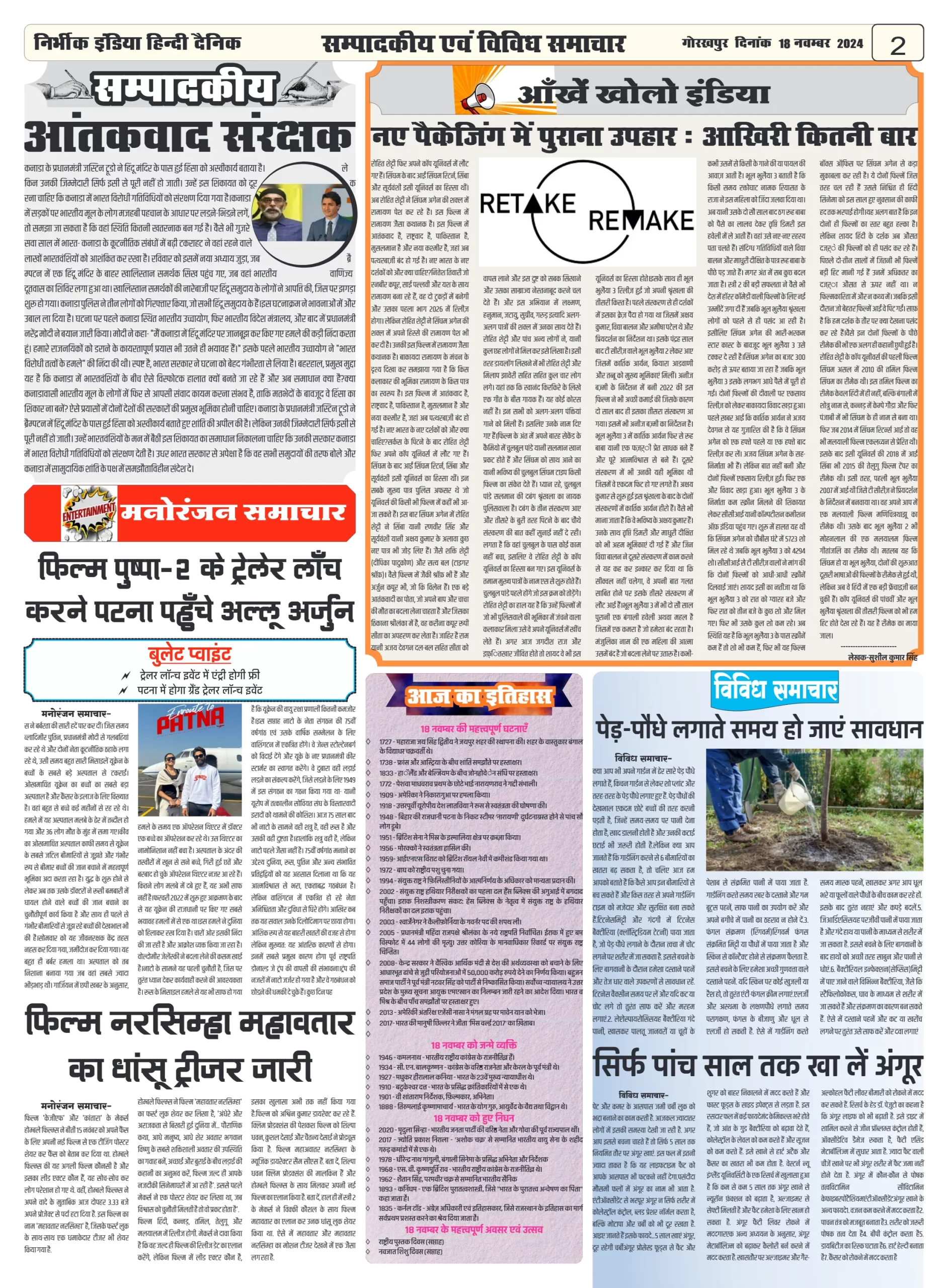 aaj ki taja khabar-18 November 2024 nirbhik india