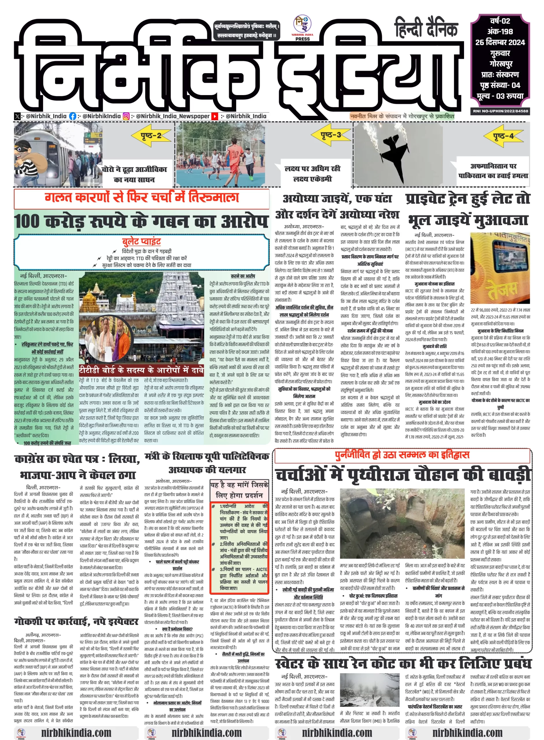 aaj ki taja khabar-26 December 2024 nirbhik india