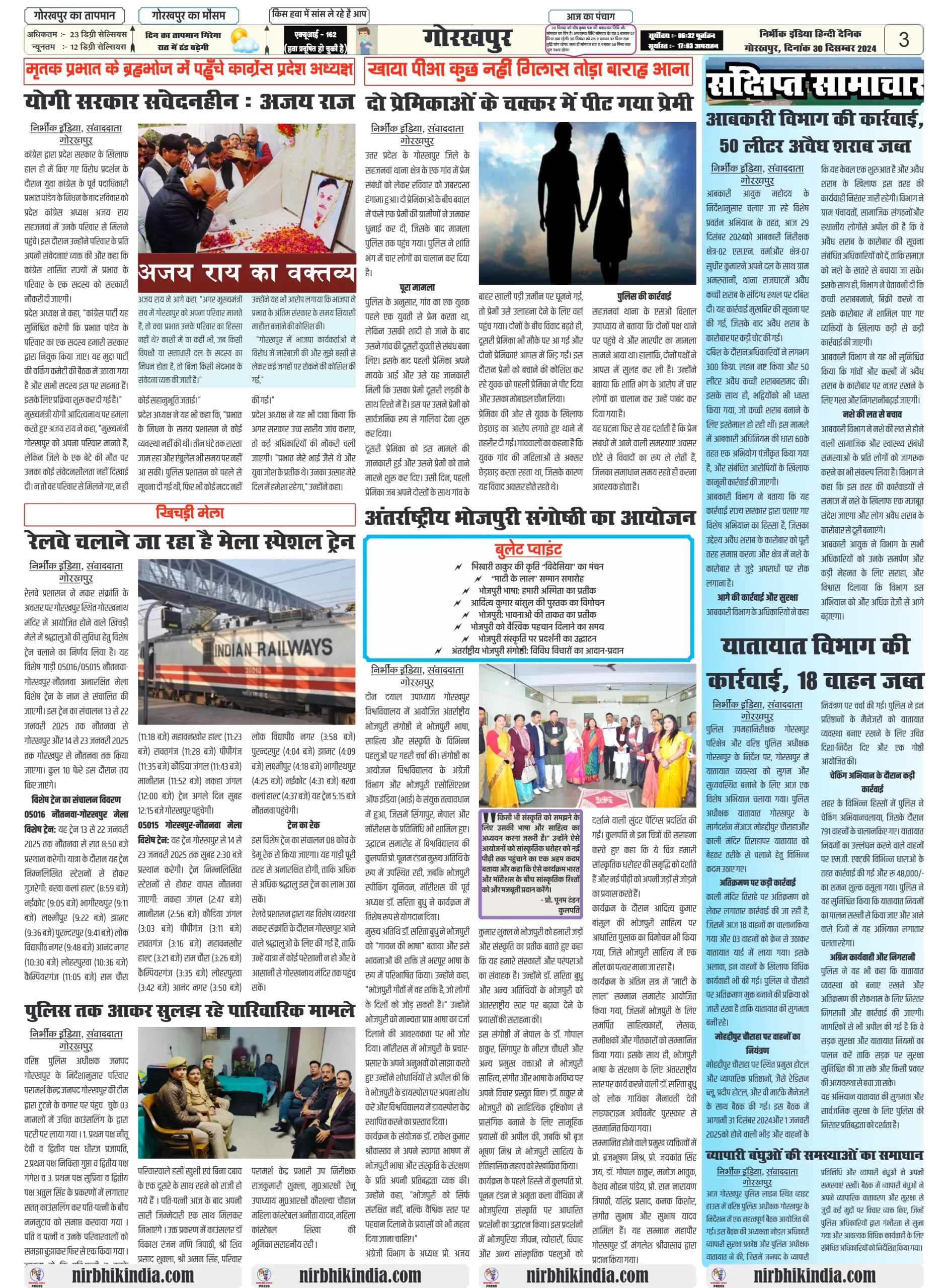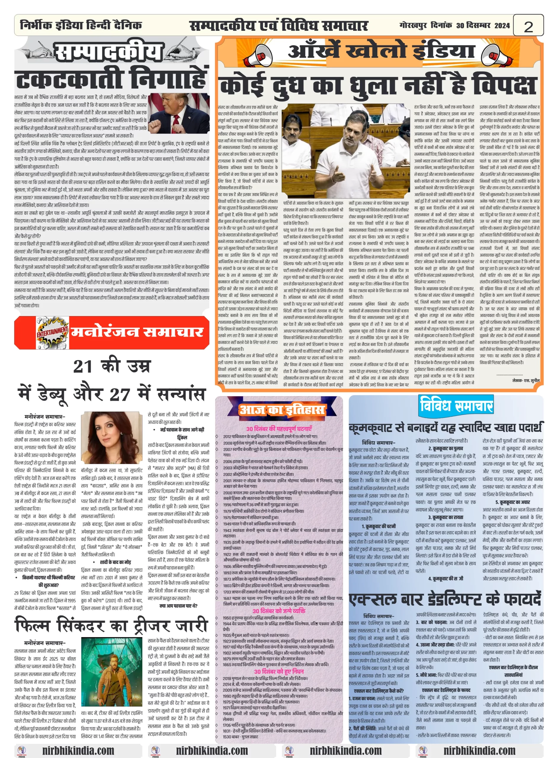 aaj ki taja khabar-30 December 2024 nirbhik india
