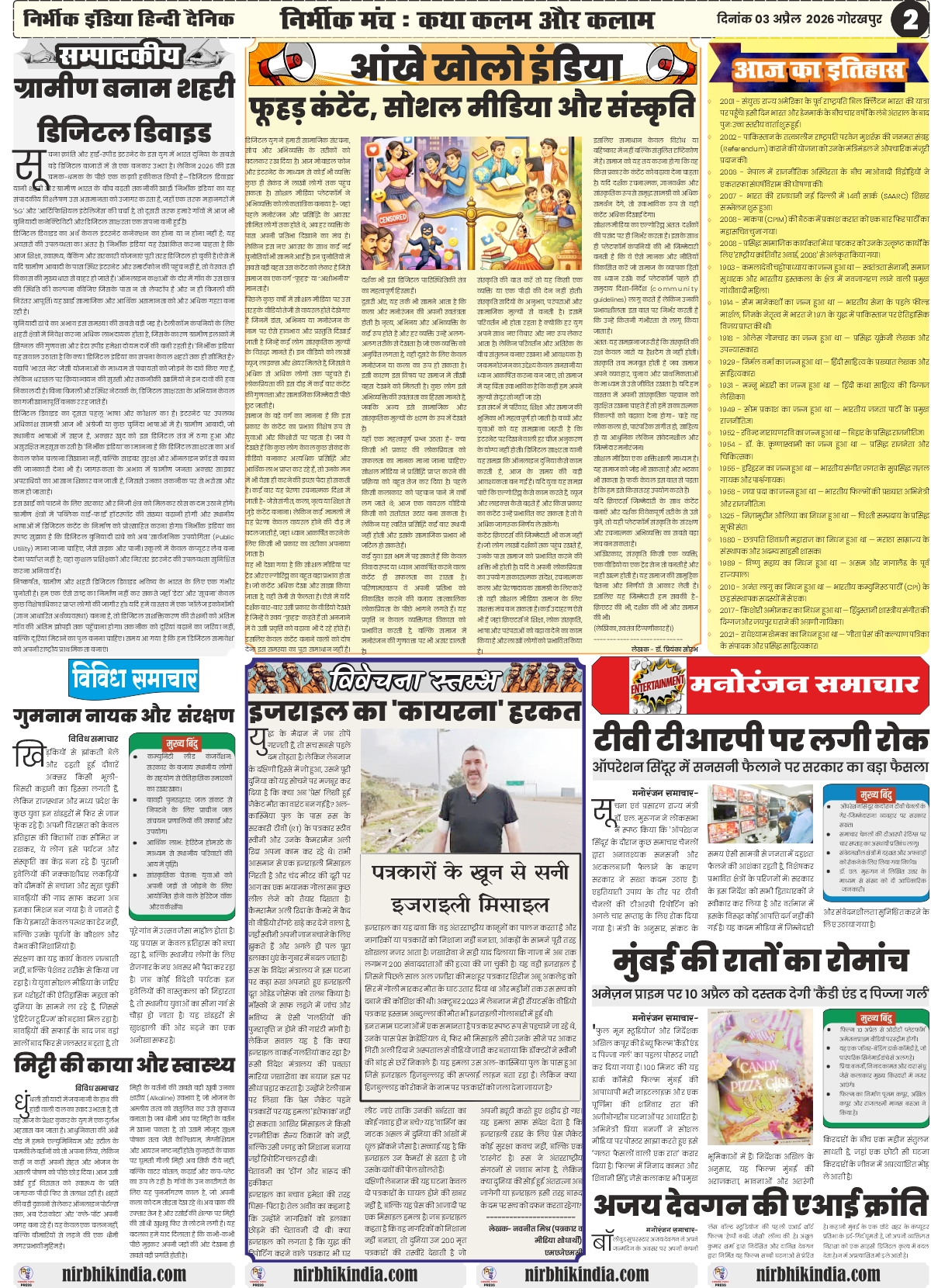 gorakhpur epaper 03 April 2026 nirbhik india