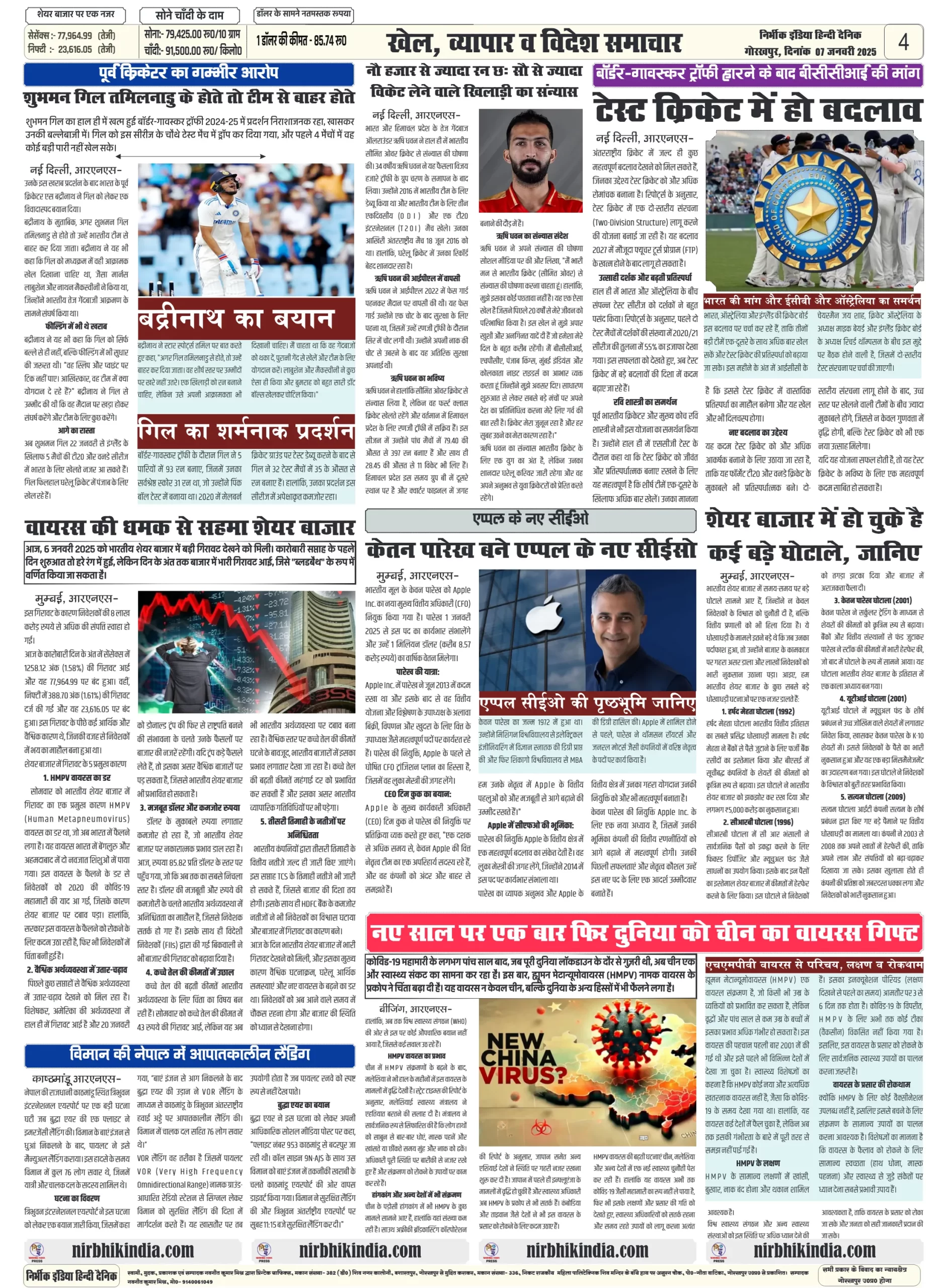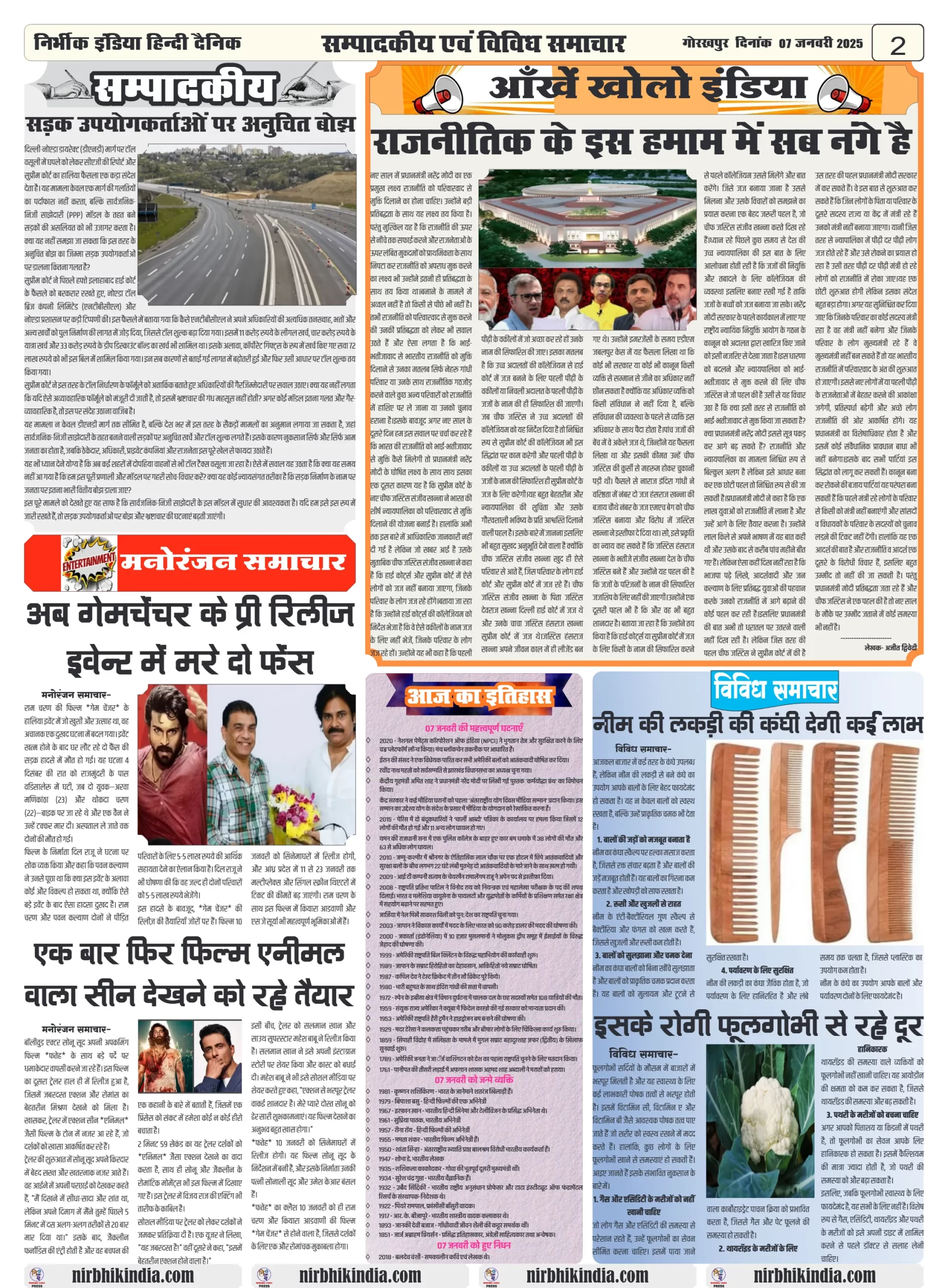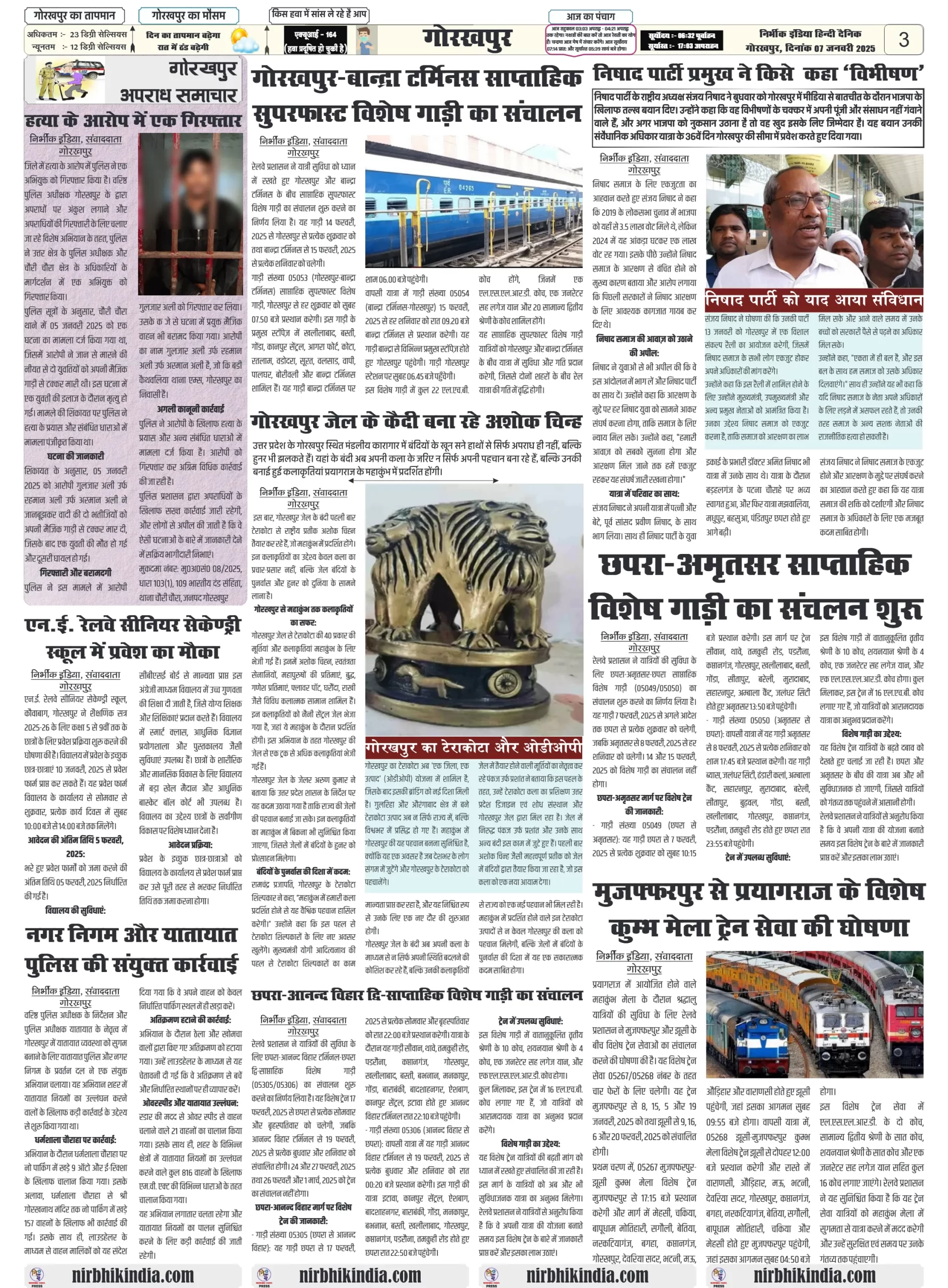 Latest Newspaper 07 January 2025 nirbhik india