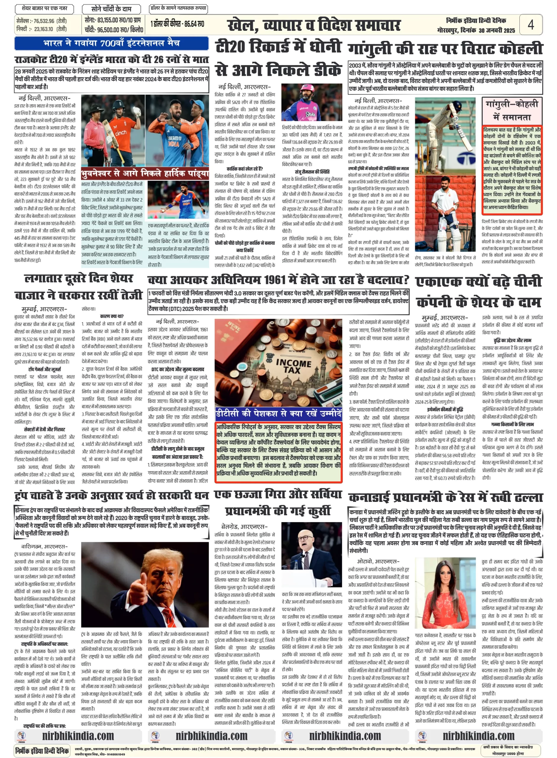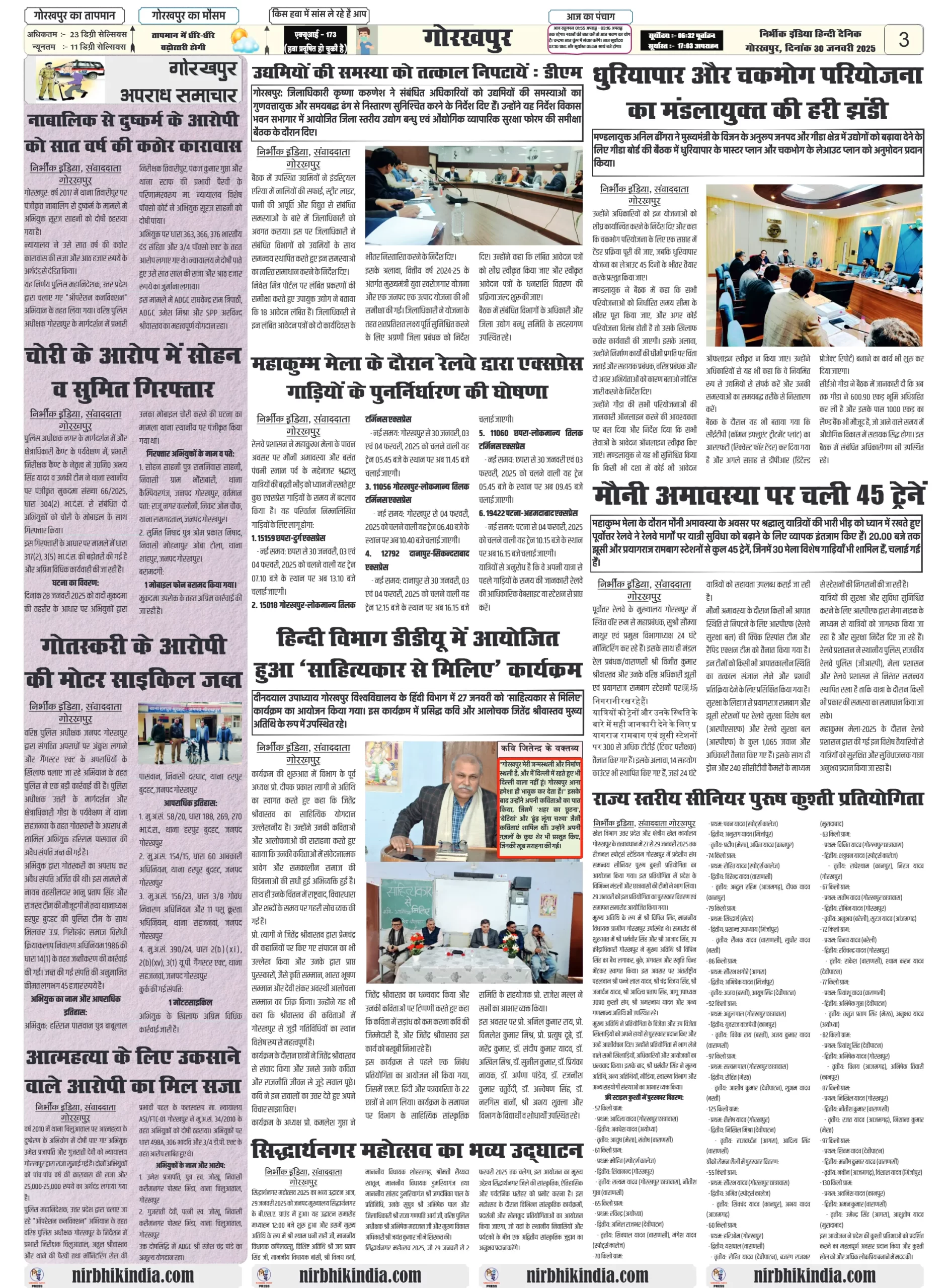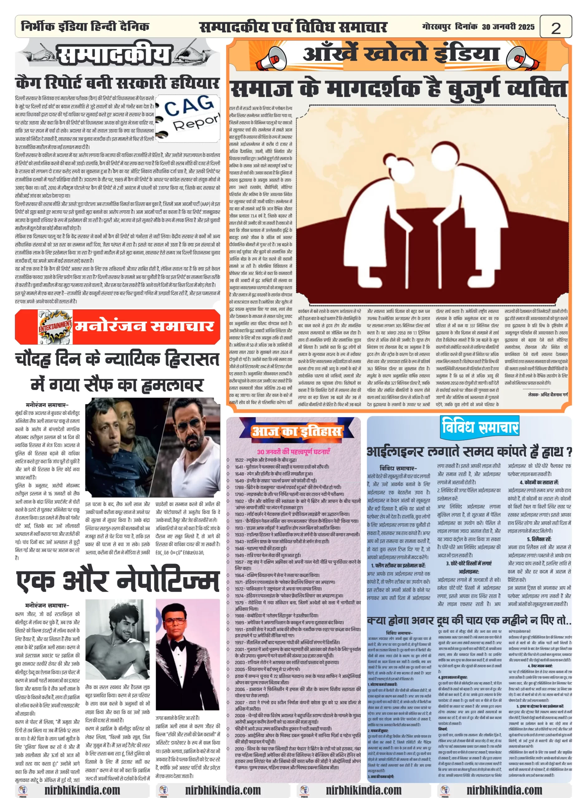Latest Newspaper 30 January 2025 nirbhik india