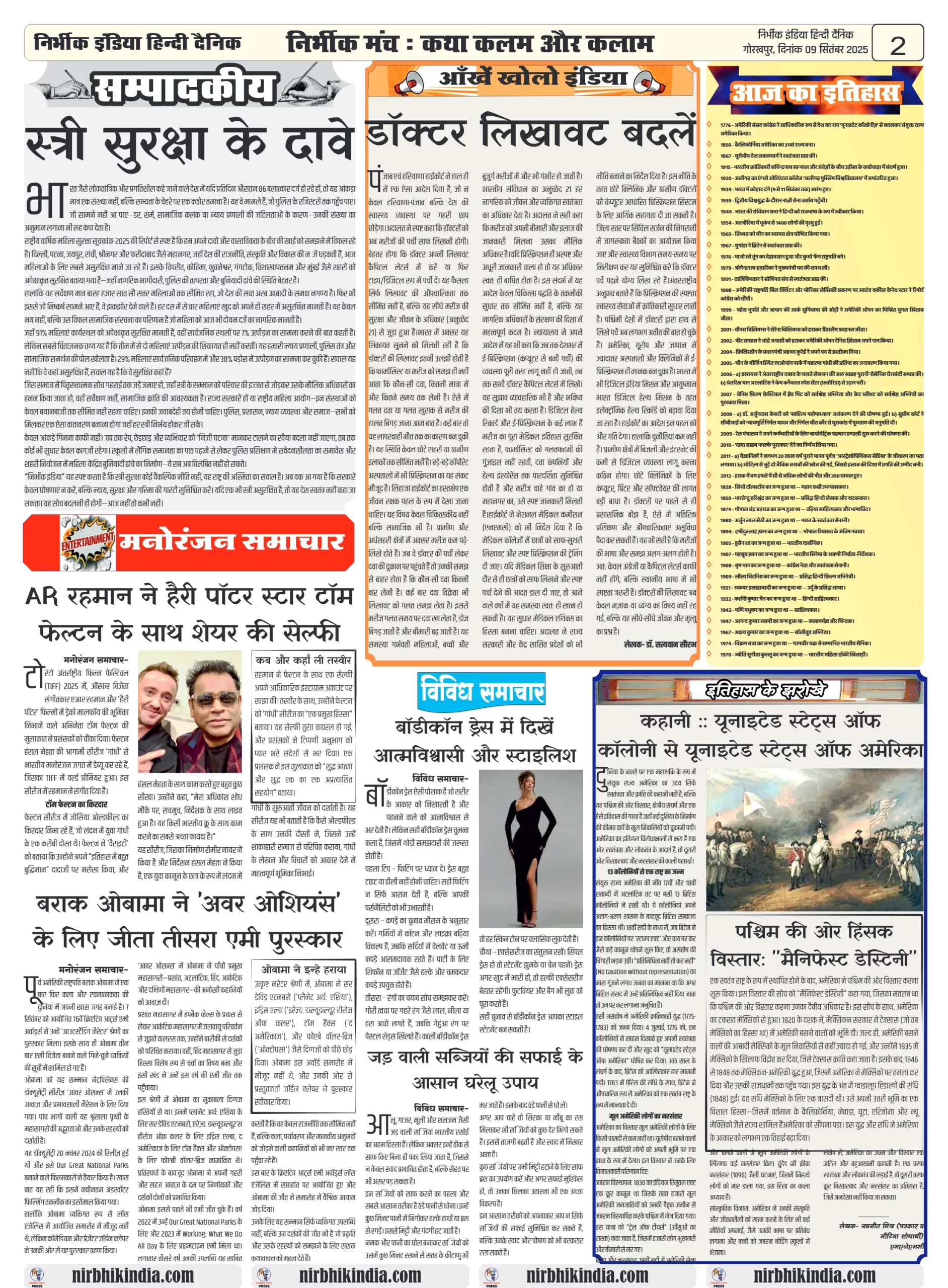 निर्भीक इंडिया गोरखपुर 09 सितम्बर 2025 ई-पेपर