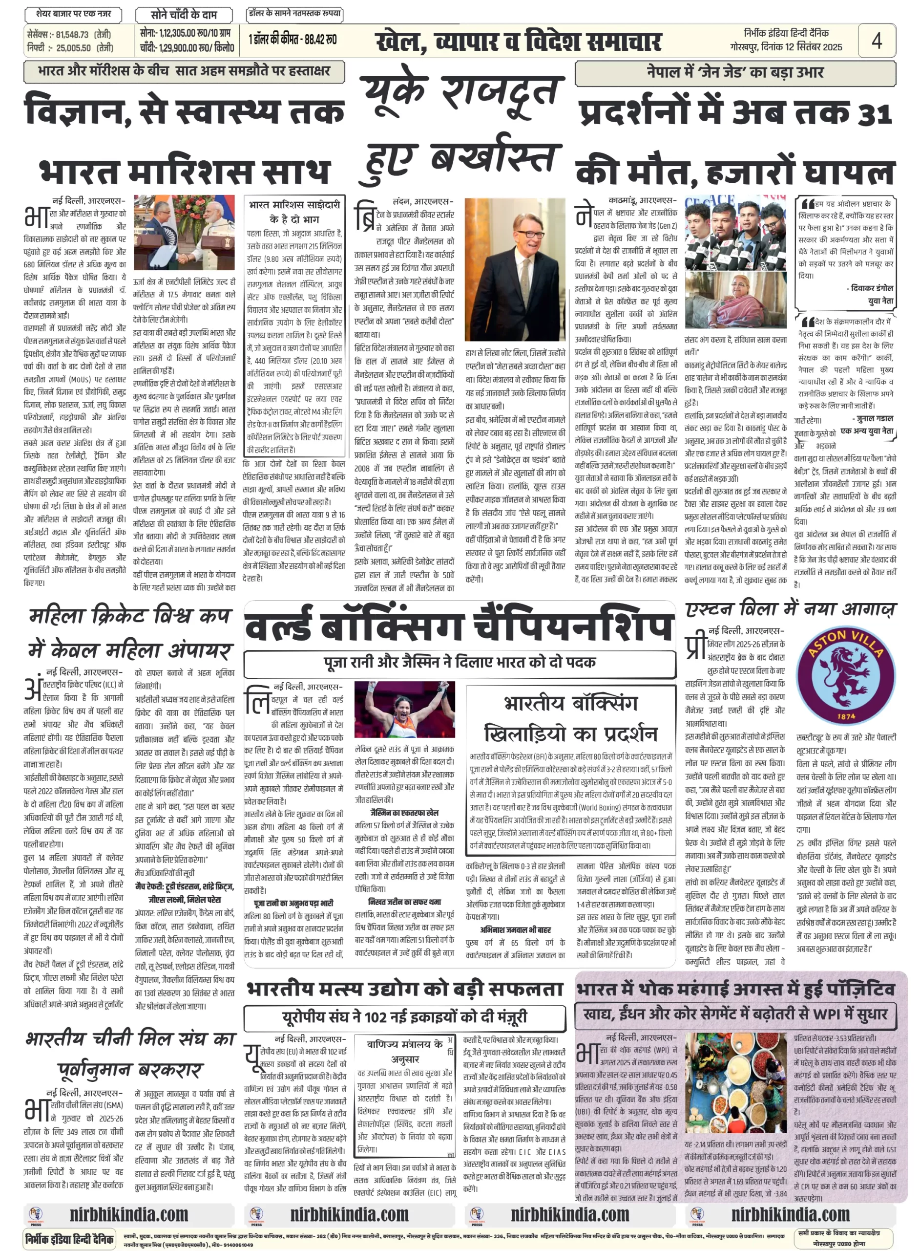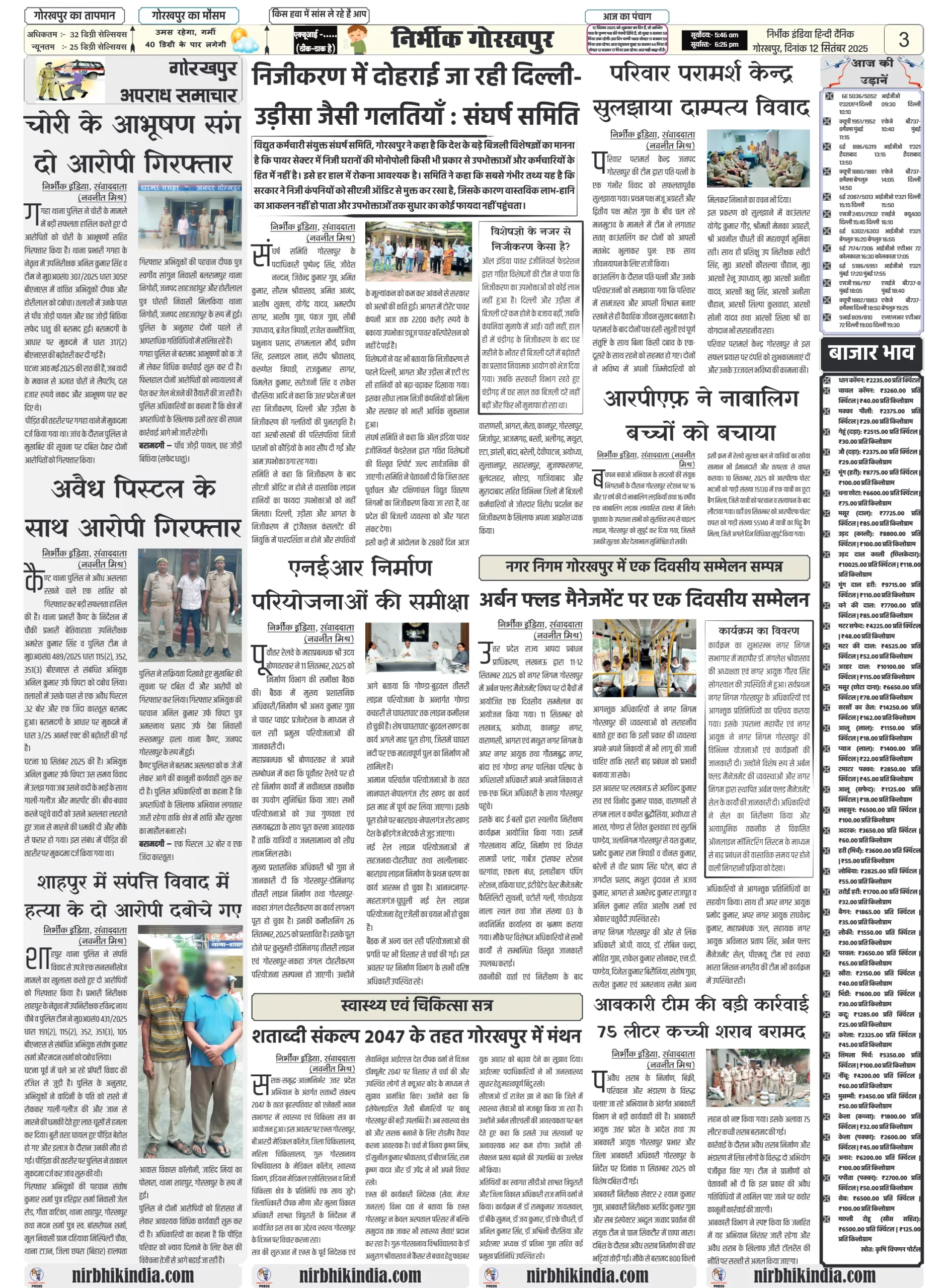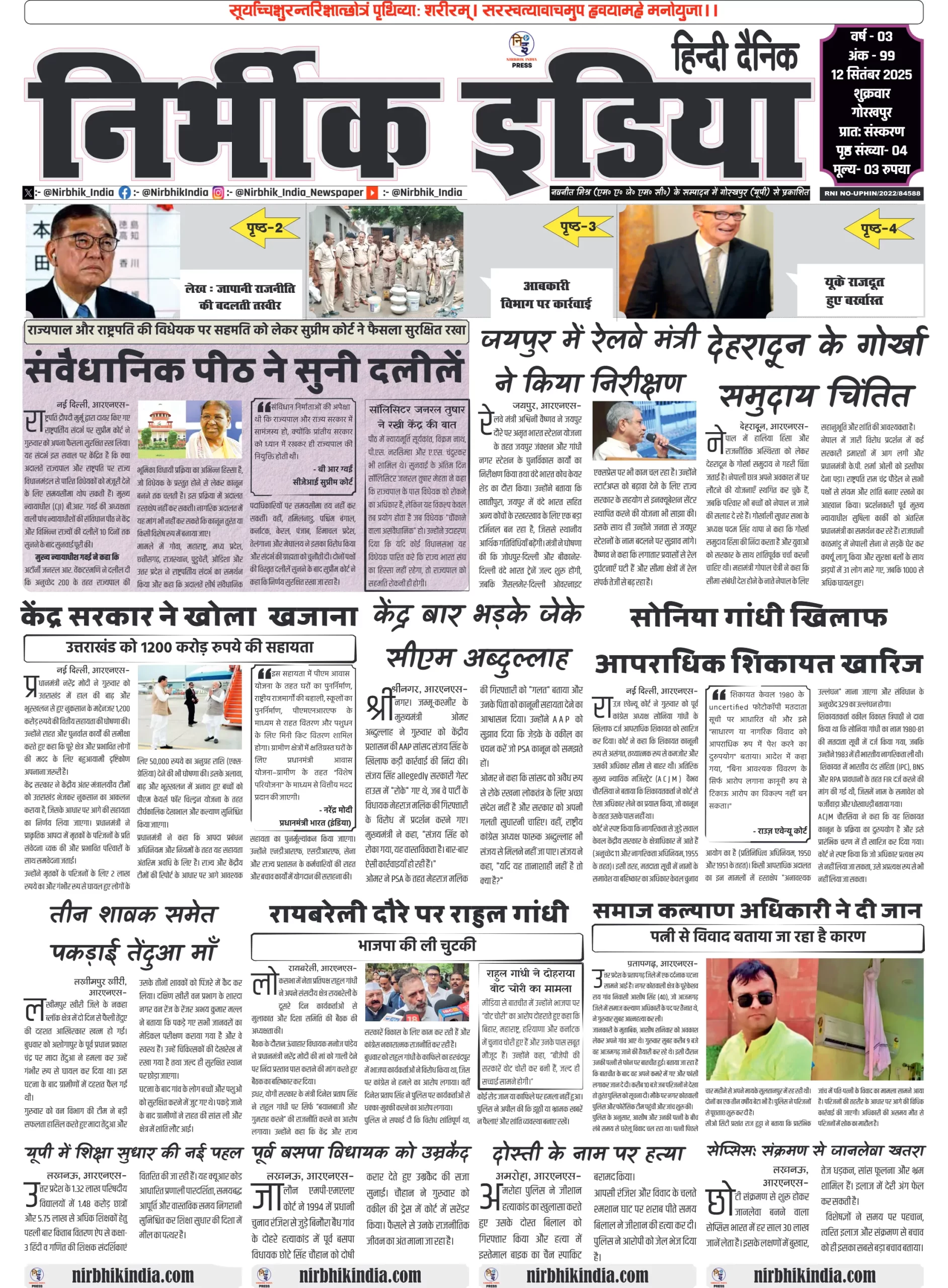 निर्भीक इंडिया गोरखपुर 12 सितम्बर 2025 ई-पेपर
