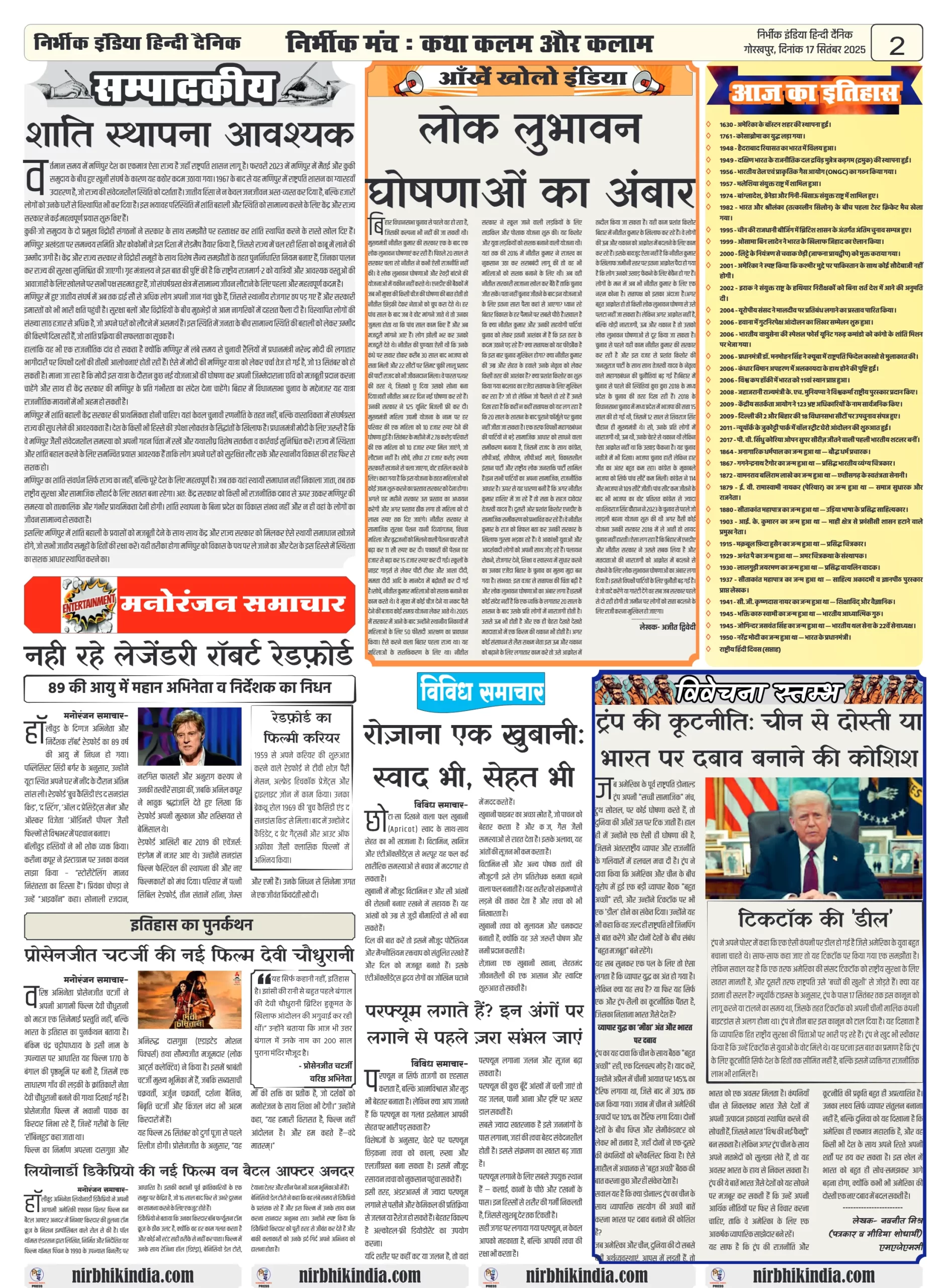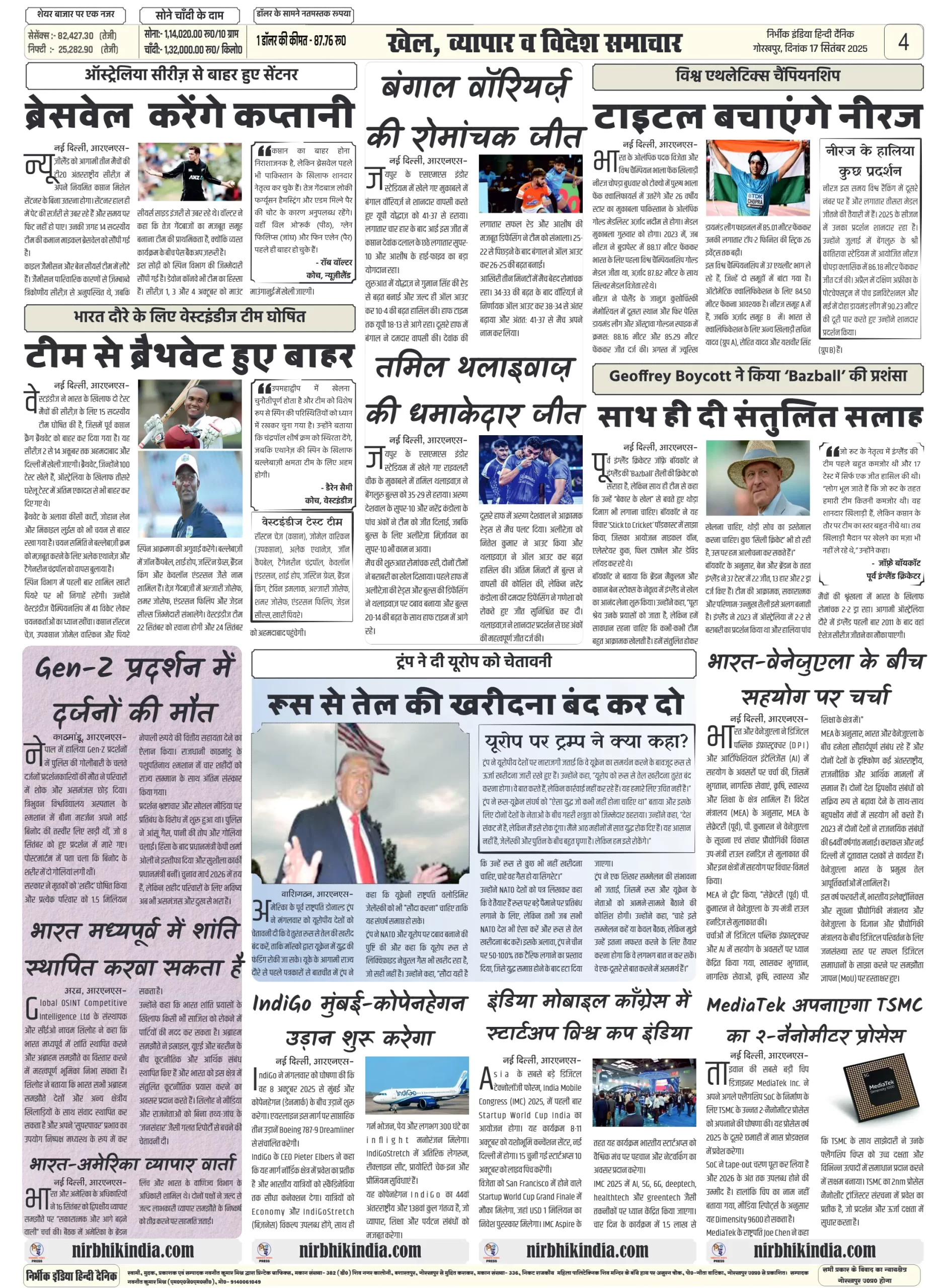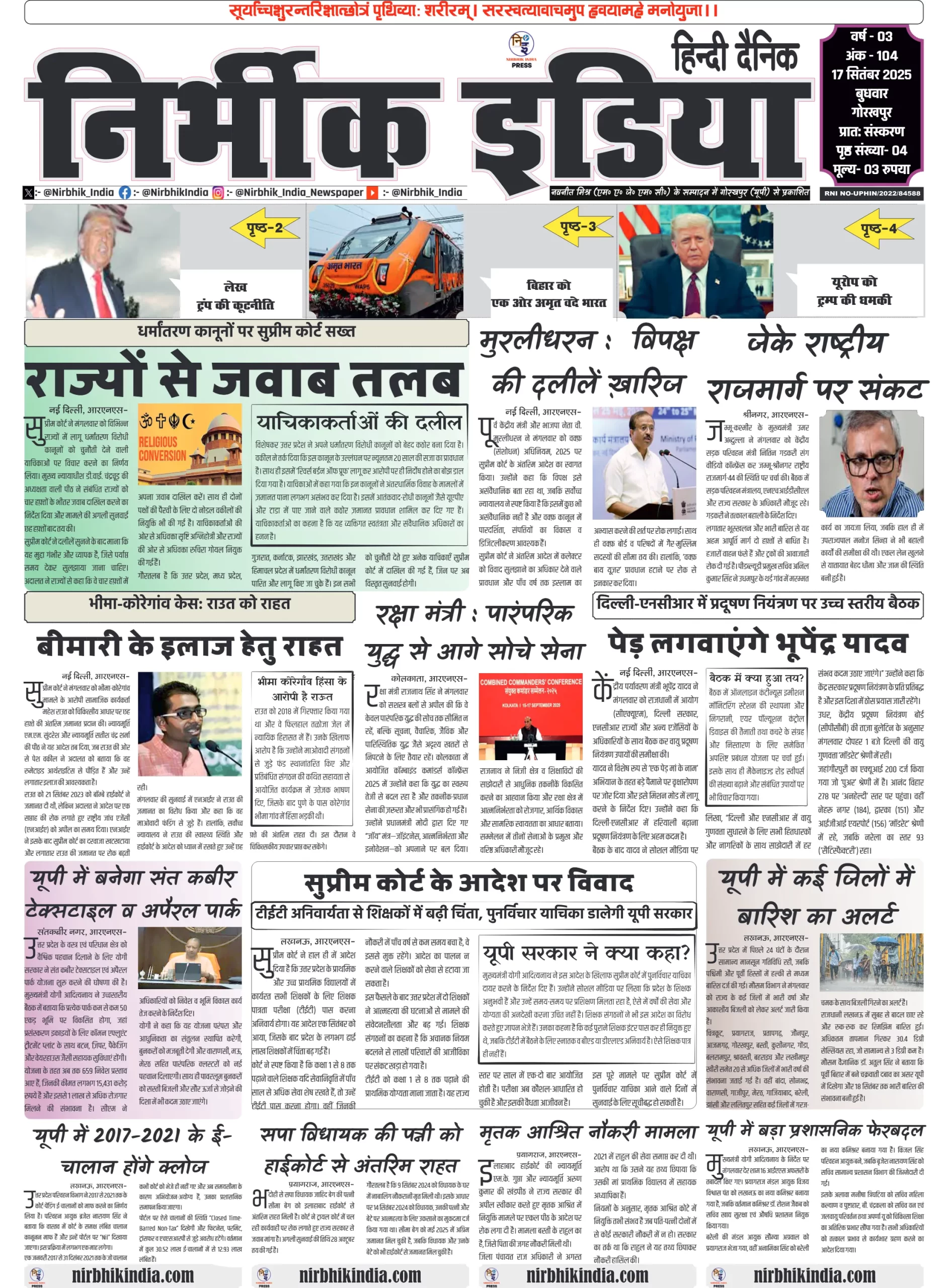 निर्भीक इंडिया गोरखपुर 17 सितम्बर 2025 ई-पेपर