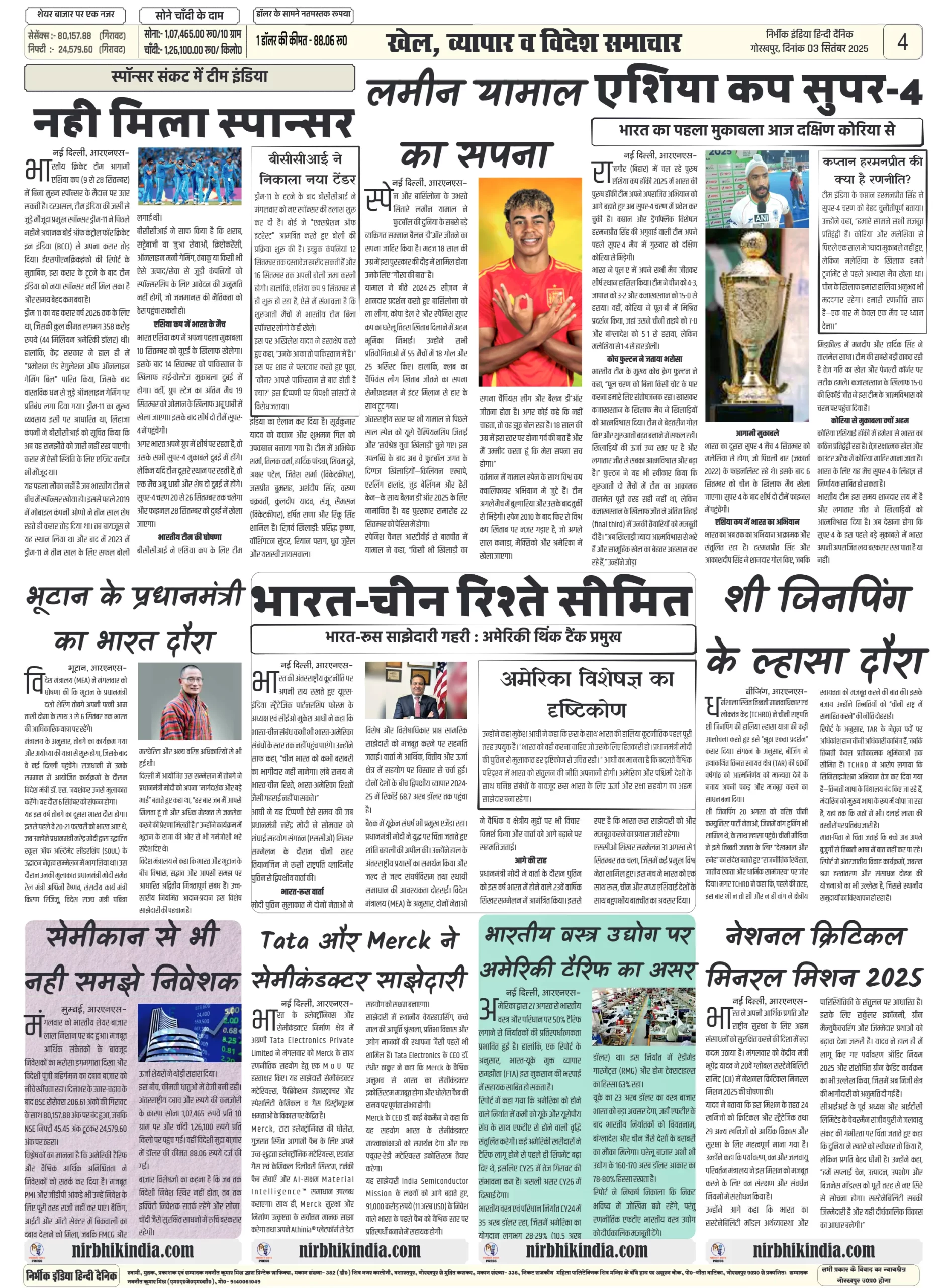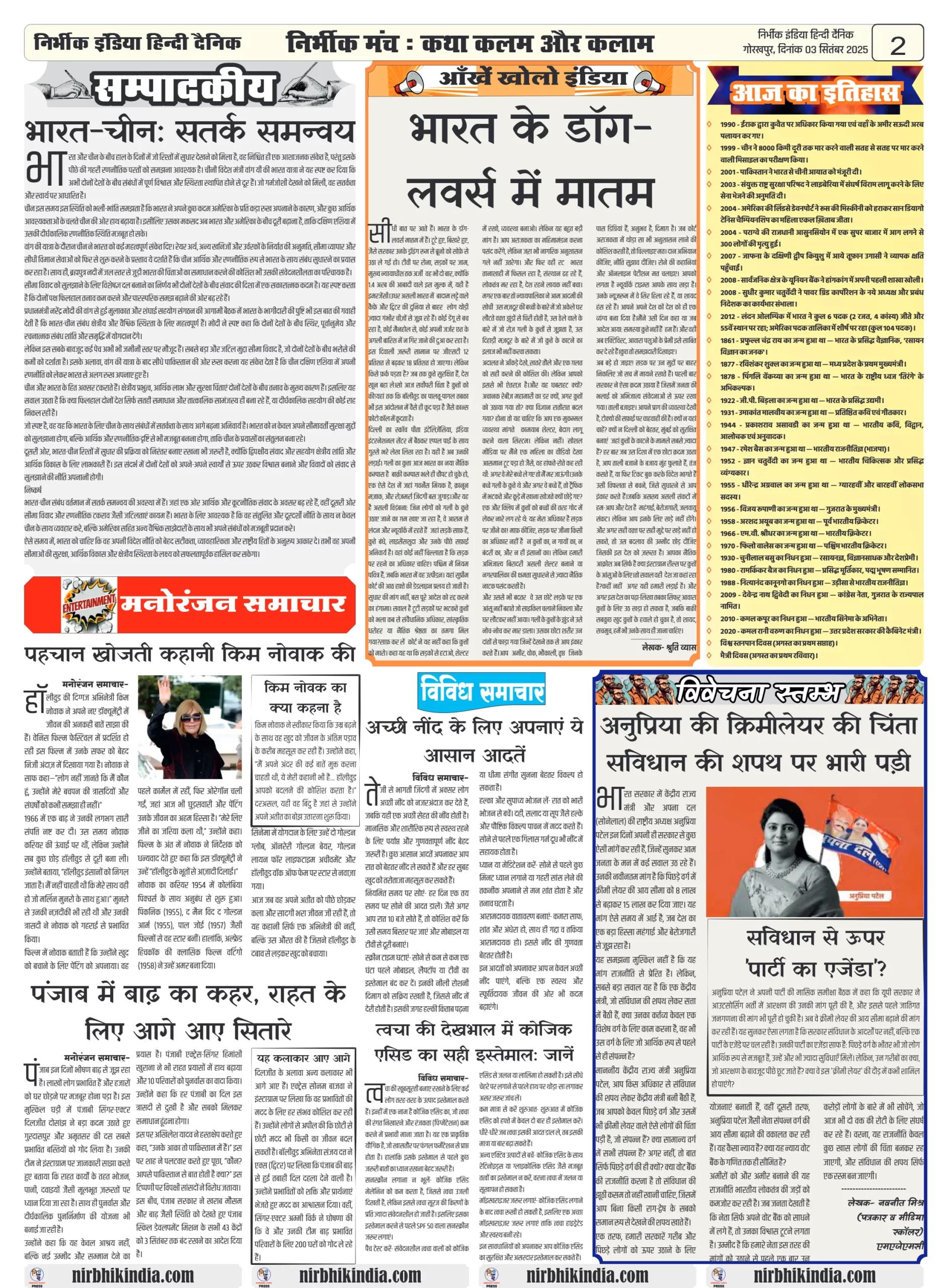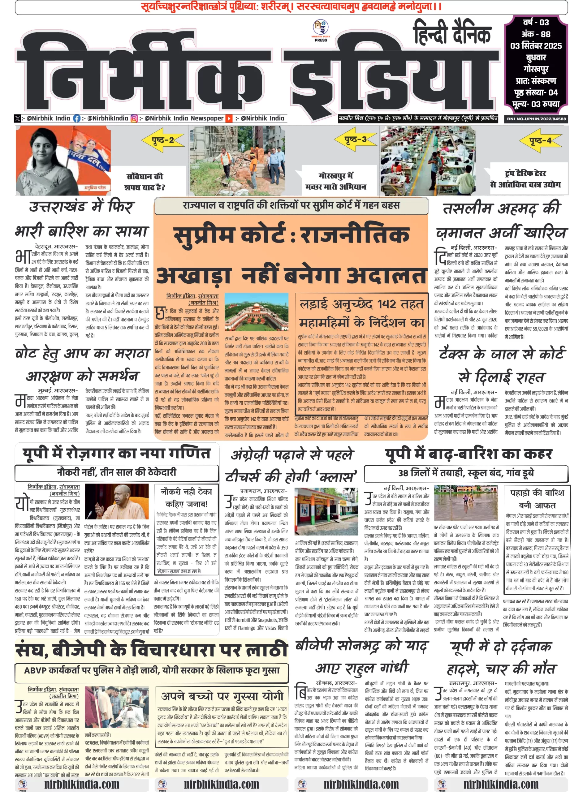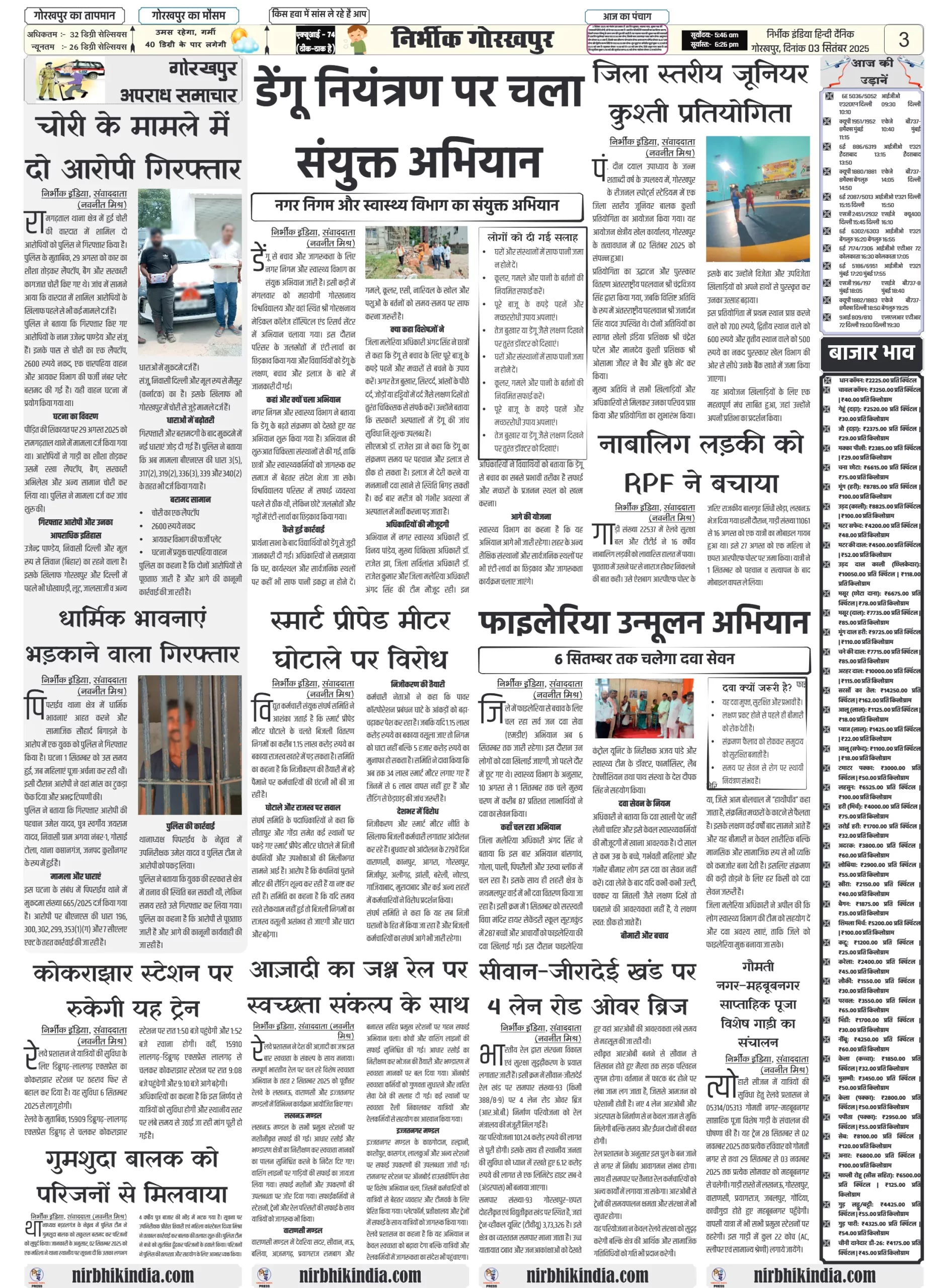 Nirbhik India 03 September 2025 Gorakhpur Newspaper