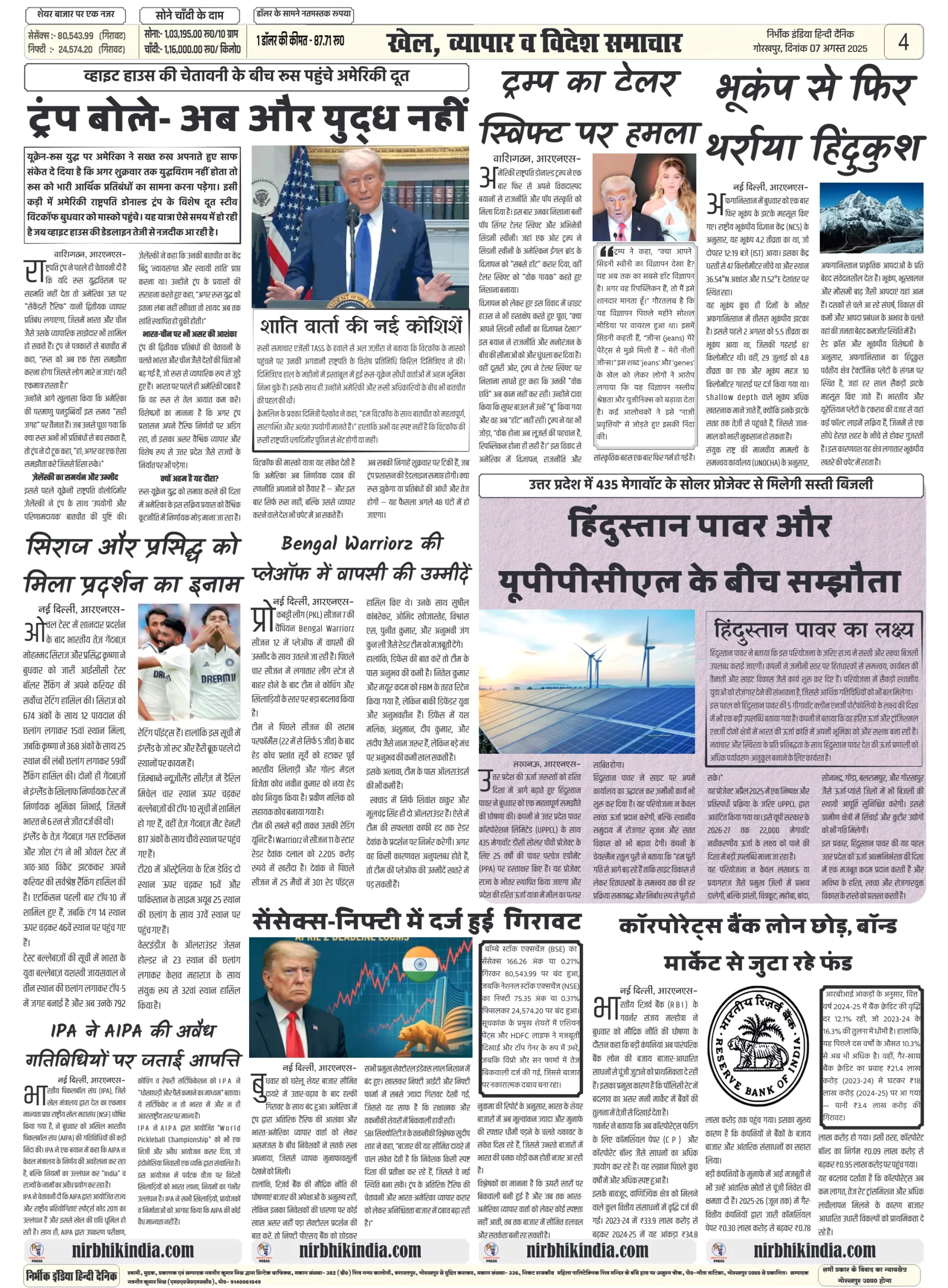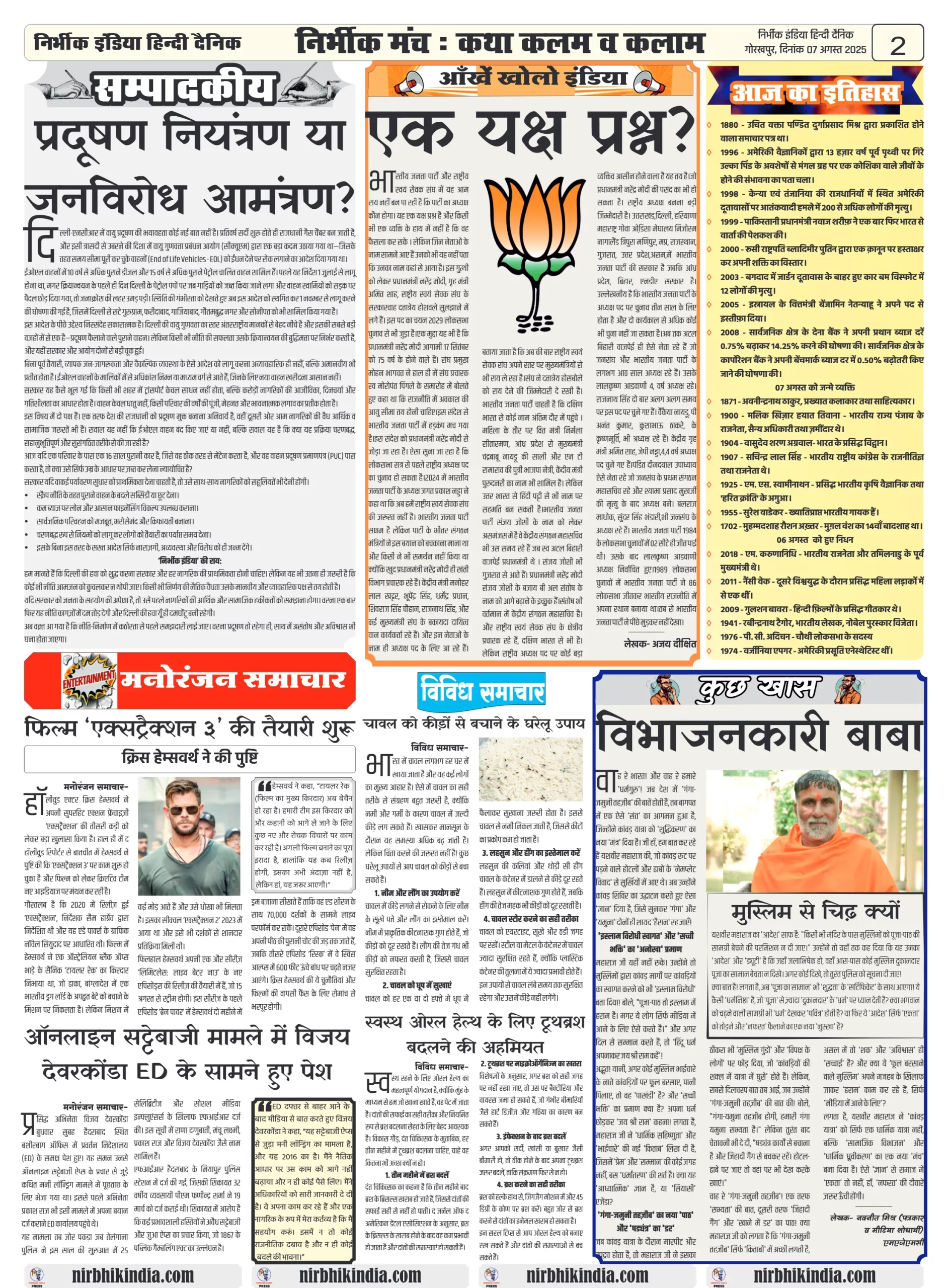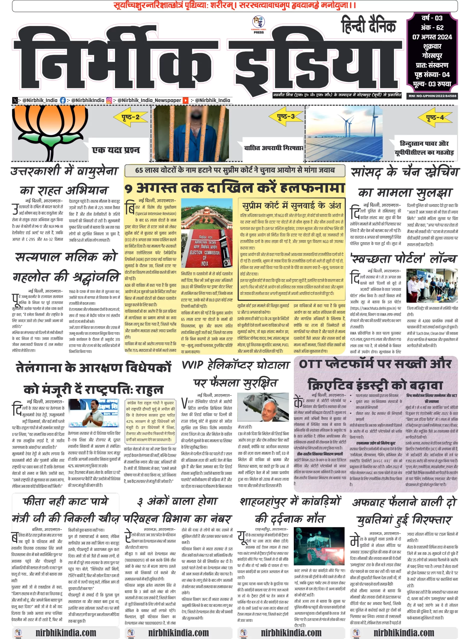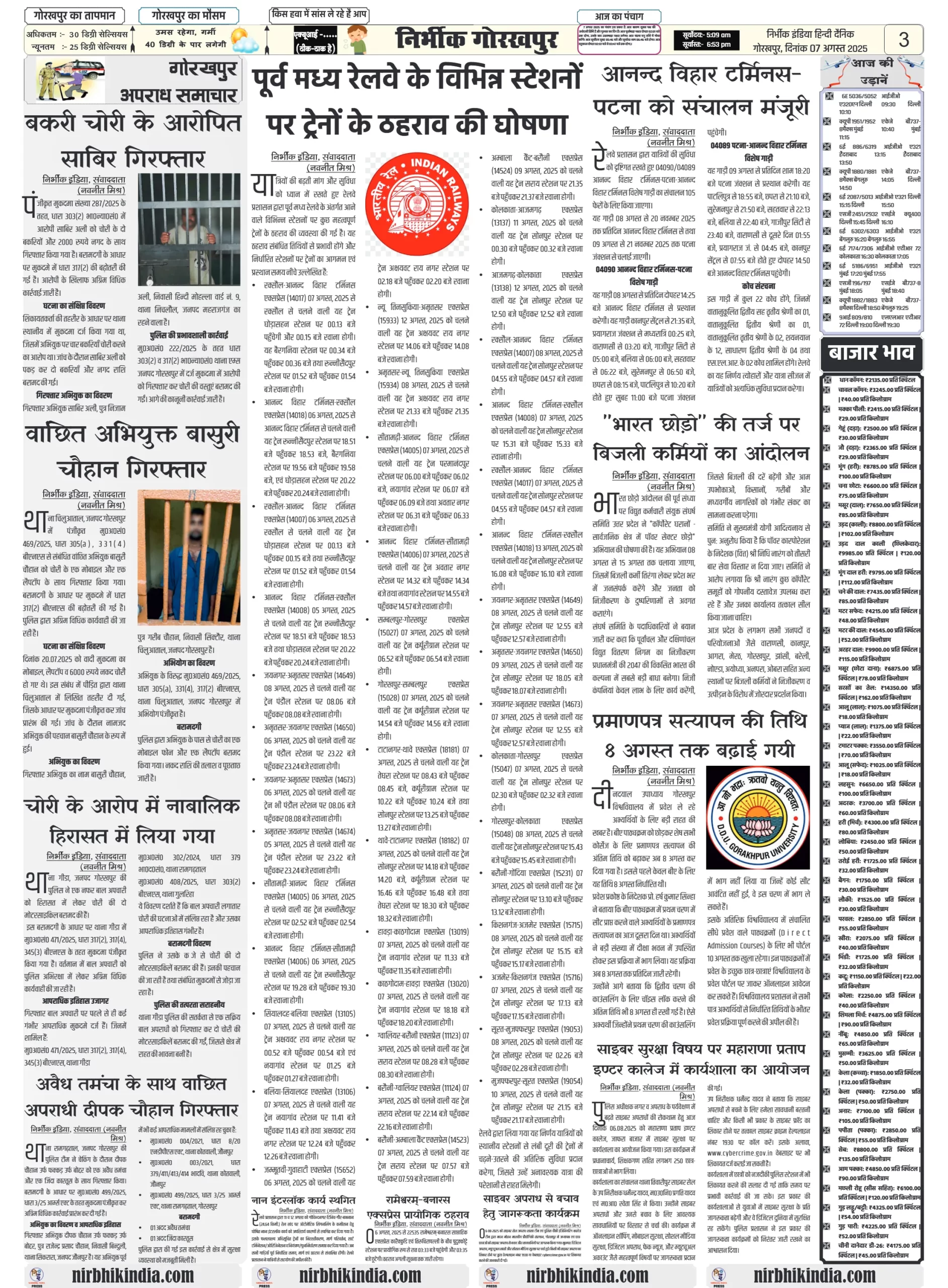 Nirbhik India 07 august 2025 Gorakhpur Newspaper