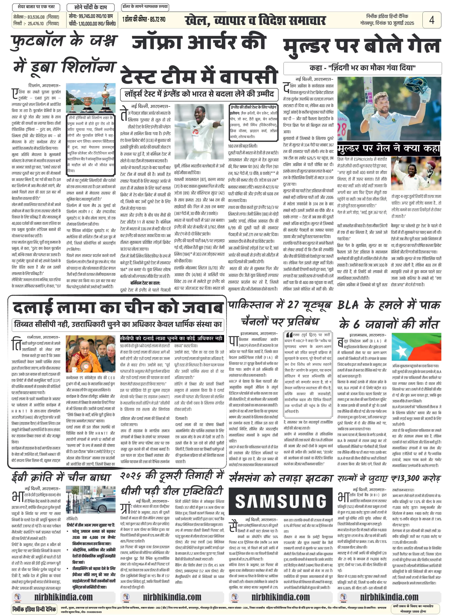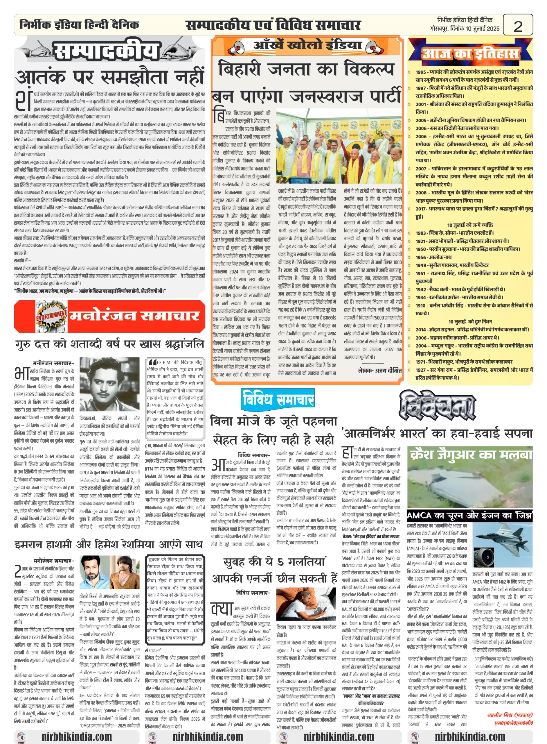 Nirbhik India 10 July 2025 Gorakhpur