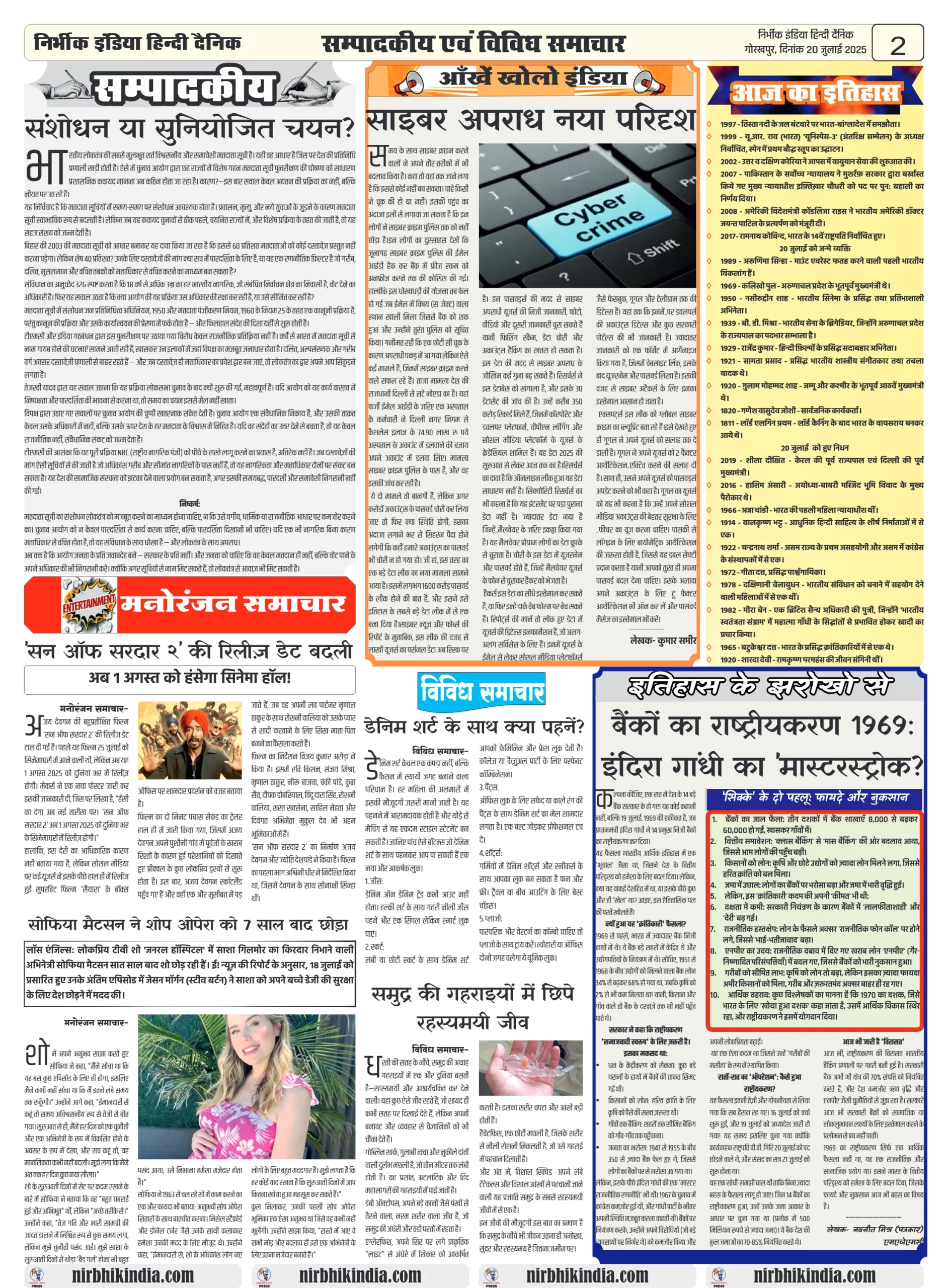 Nirbhik India 20 July 2025 Gorakhpur