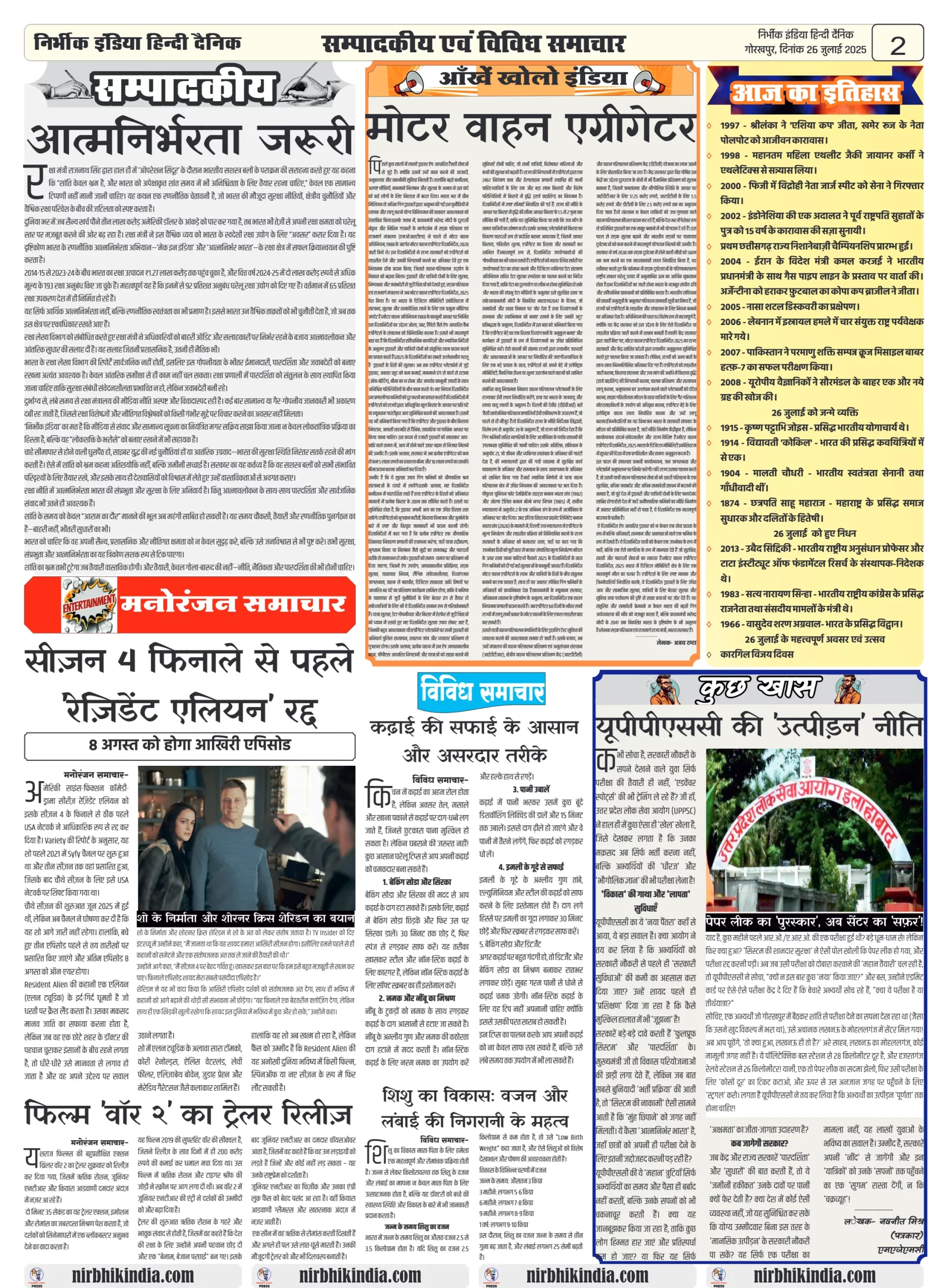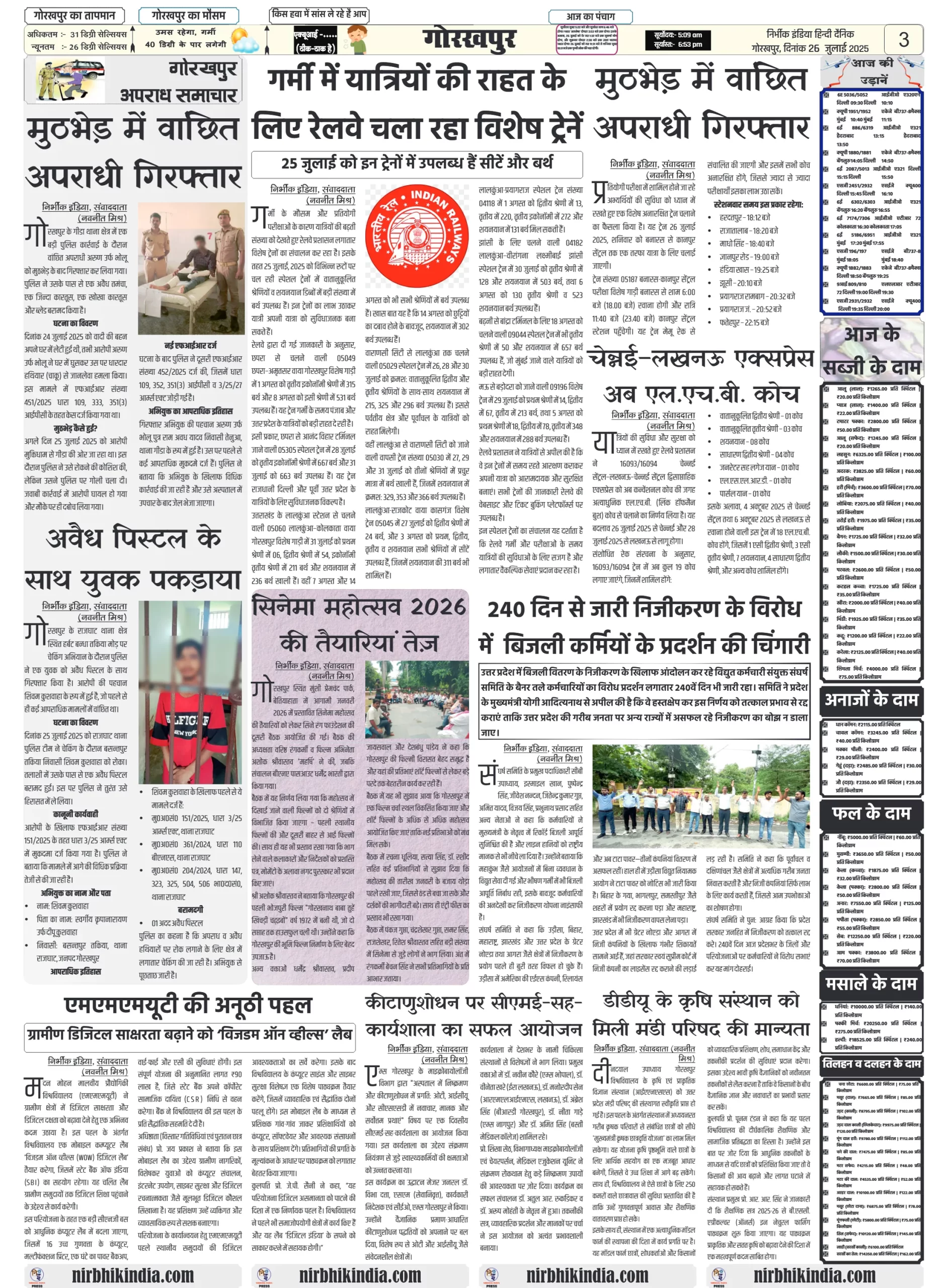 Nirbhik India 26 July 2025 Gorakhpur