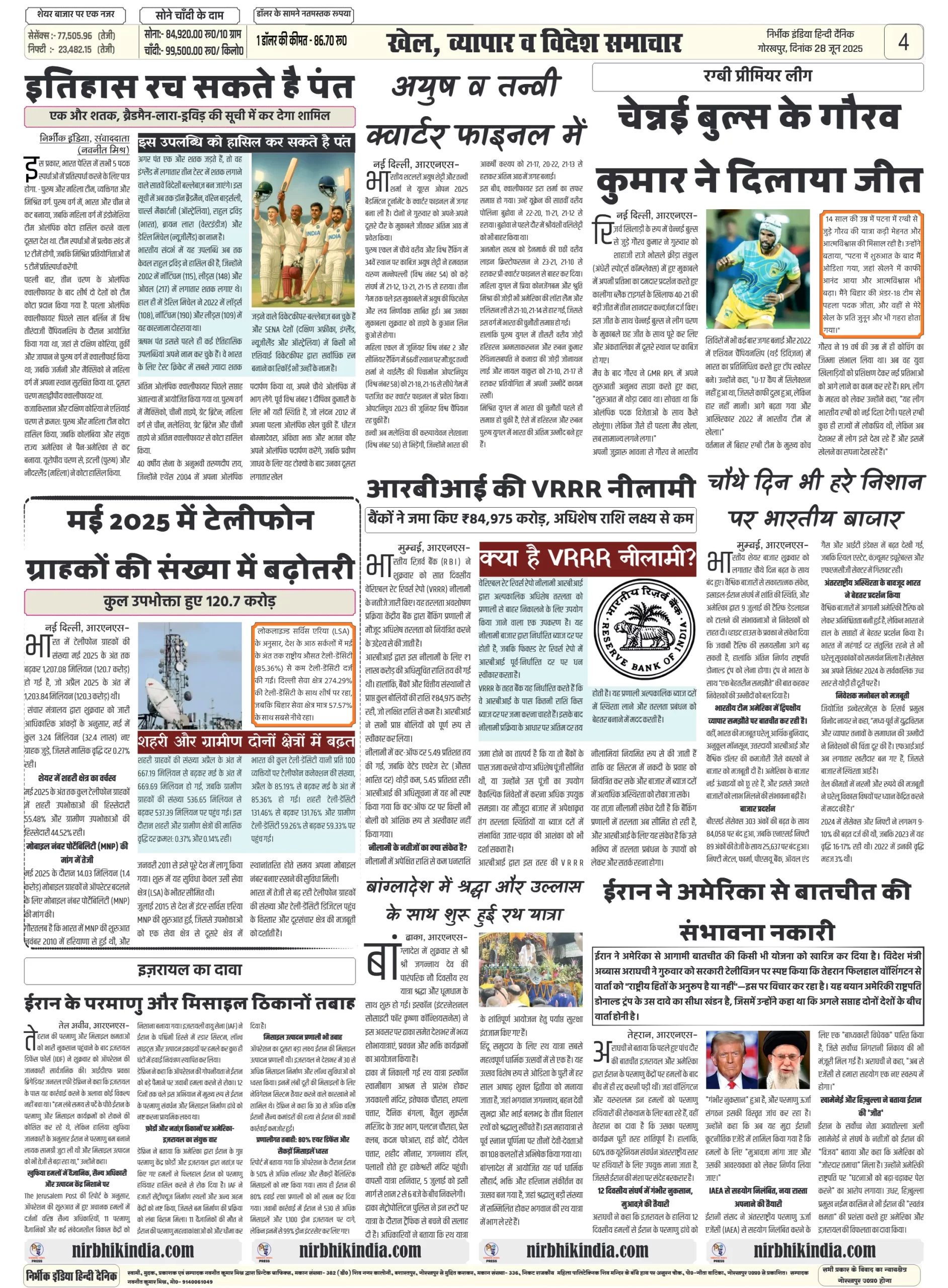 Nirbhik India 28 June 2025 Gorakhpur