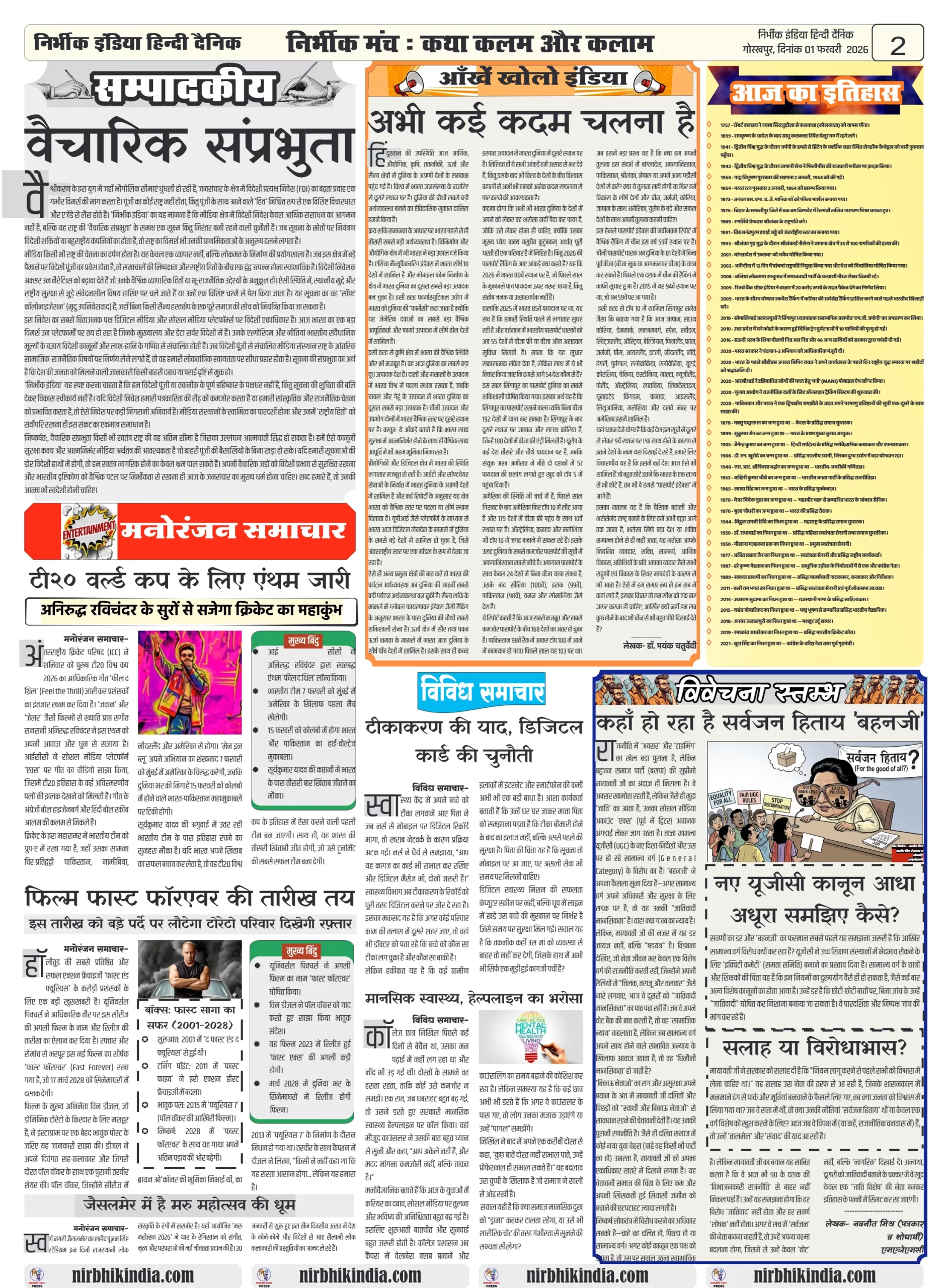 Nirbhik india gorakhpur 01 February 2026