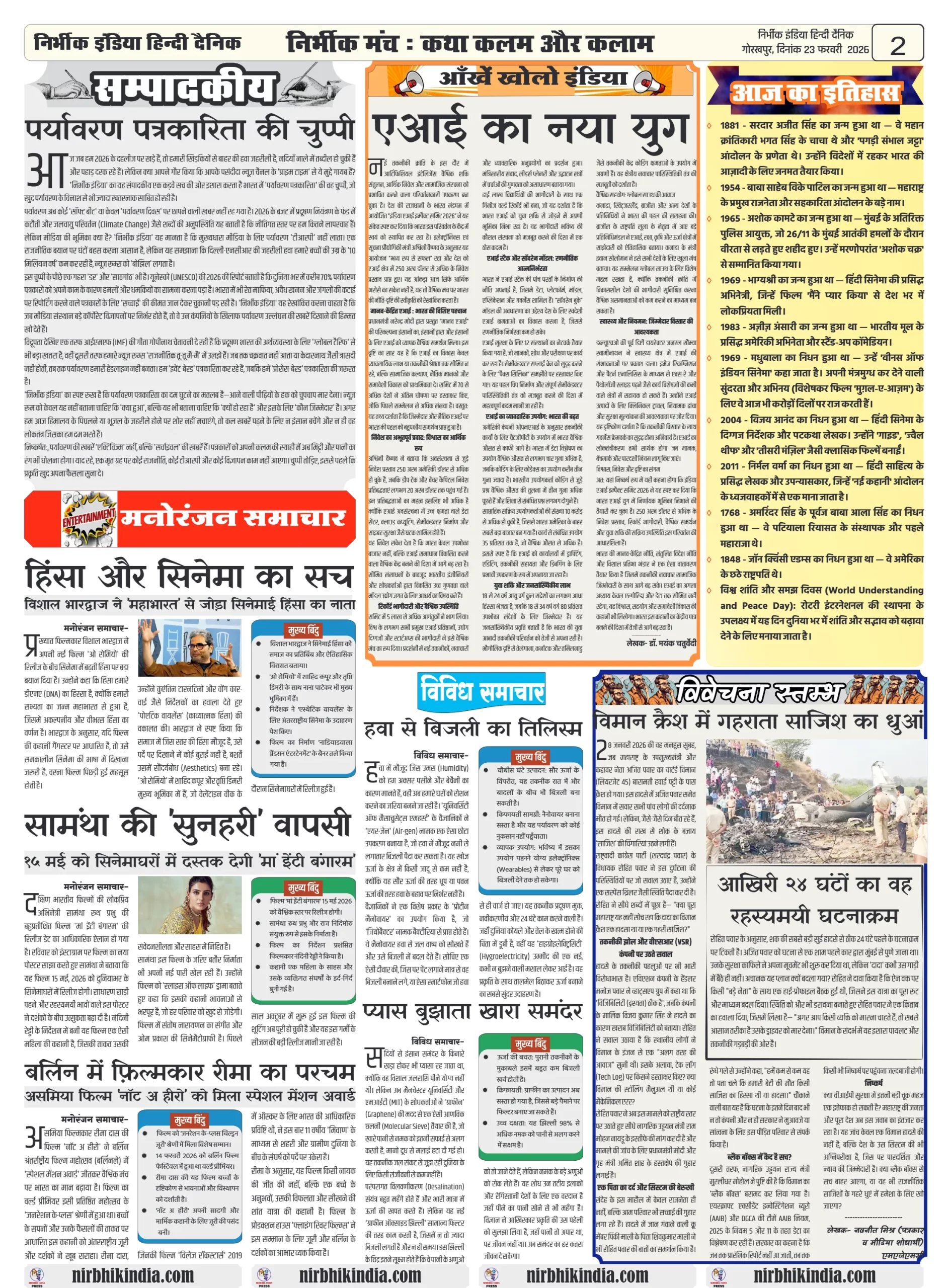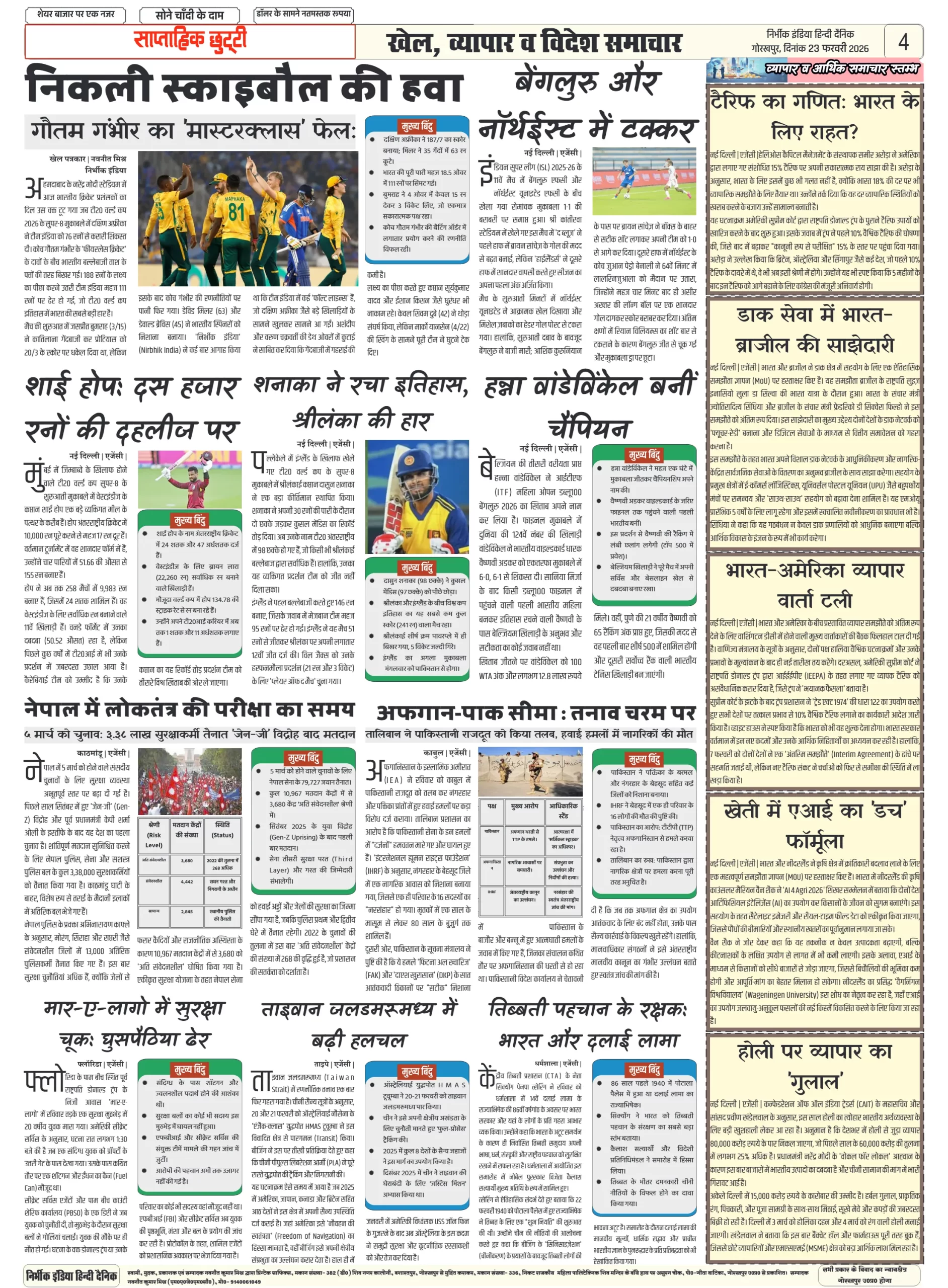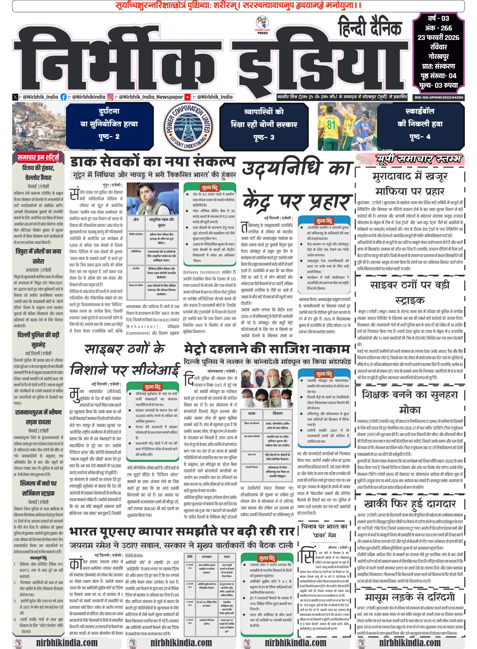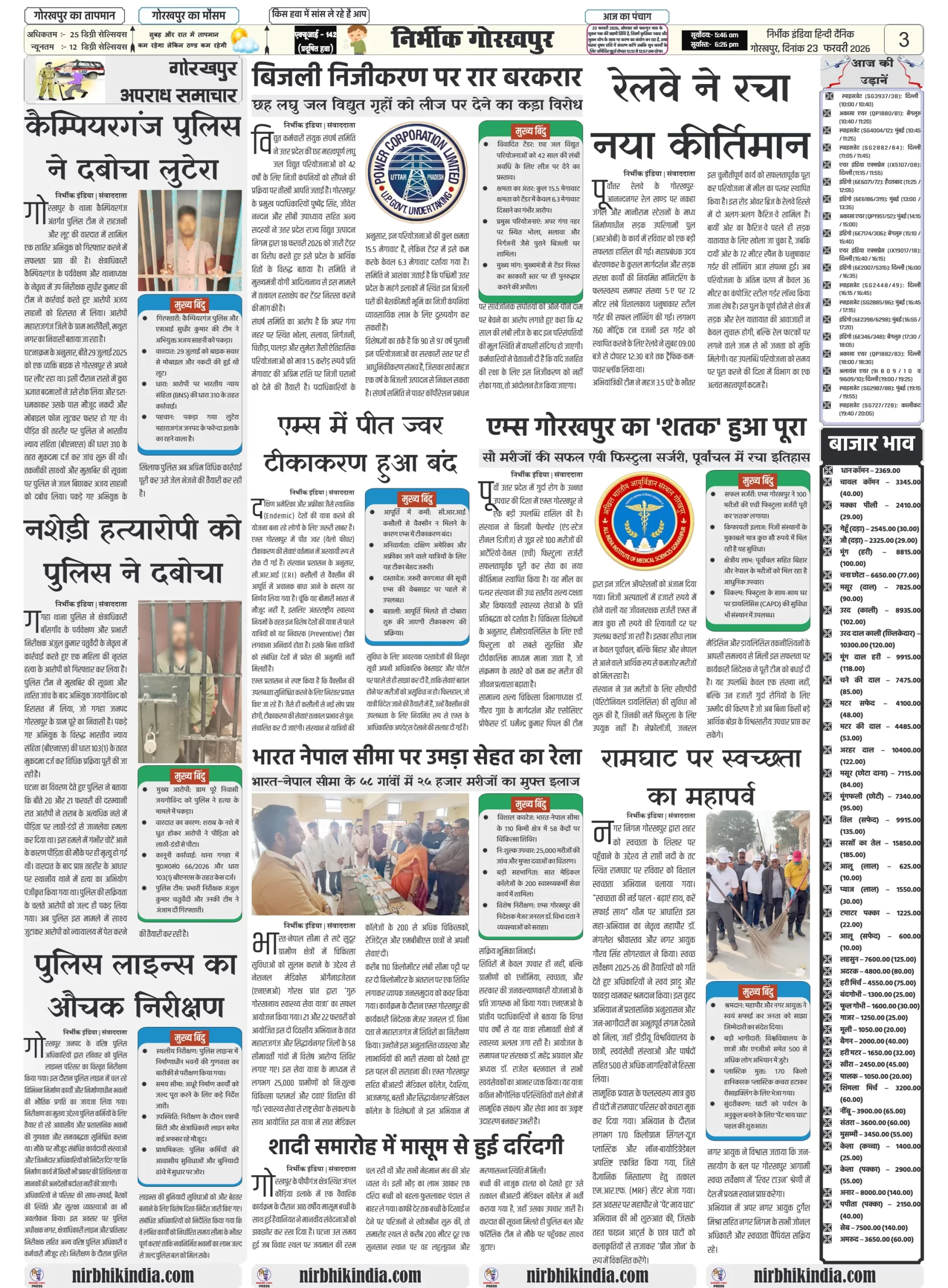 Nirbhik india gorakhpur 23 February 2026