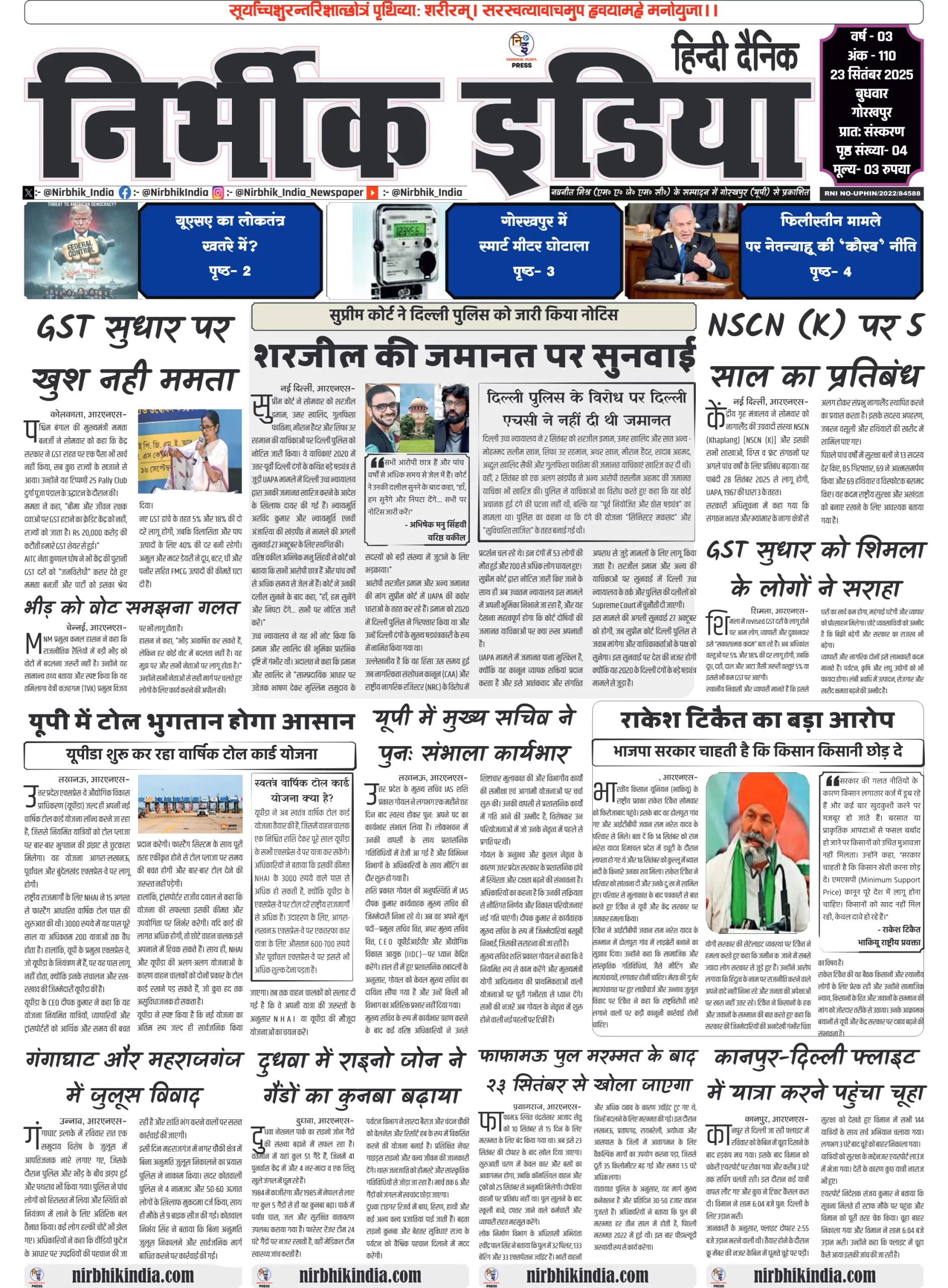 निर्भीक इंडिया गोरखपुर 23 सितम्बर 2025 ई-पेपर